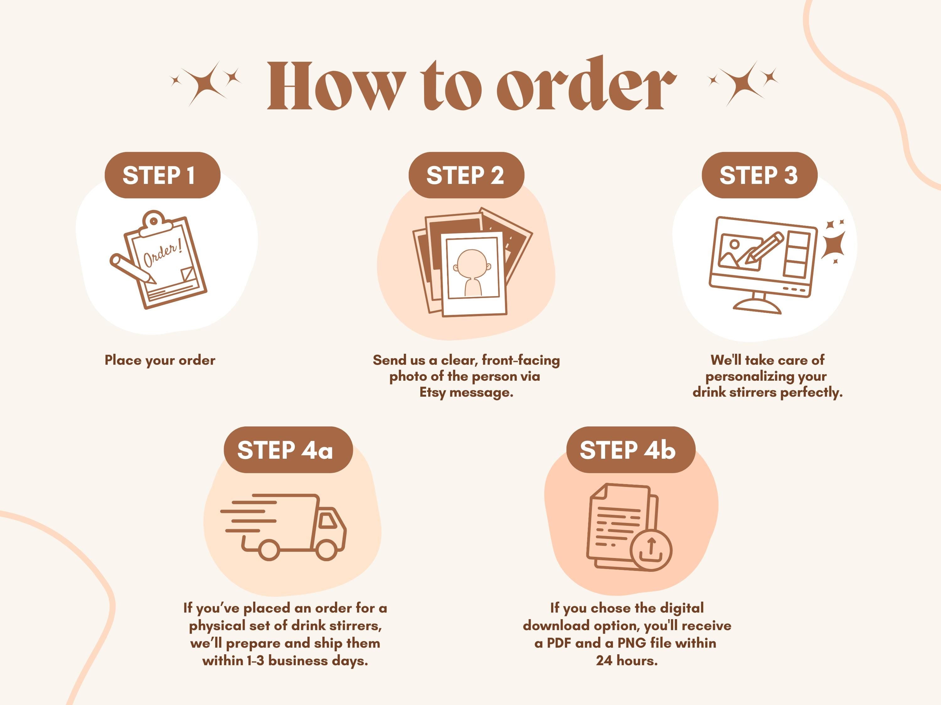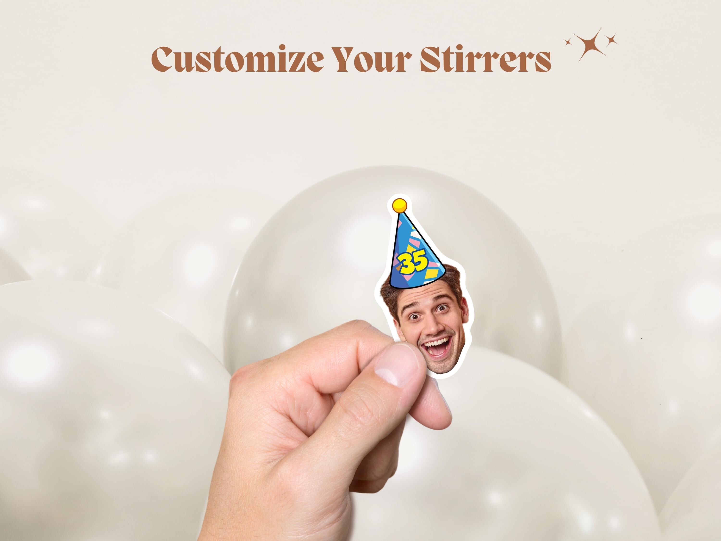 Elevate your party drinks with our Custom Face Drink Stirrers! These personalized cocktail stirrers feature custom face designs, adding a fun and unique touch to your 30th, 40th, 50th or 60th birthday decor or any special celebration. Material: ✅ Material: Cardstock ✅ Size: approx. 2.5-3.25in tall (depending on the design)