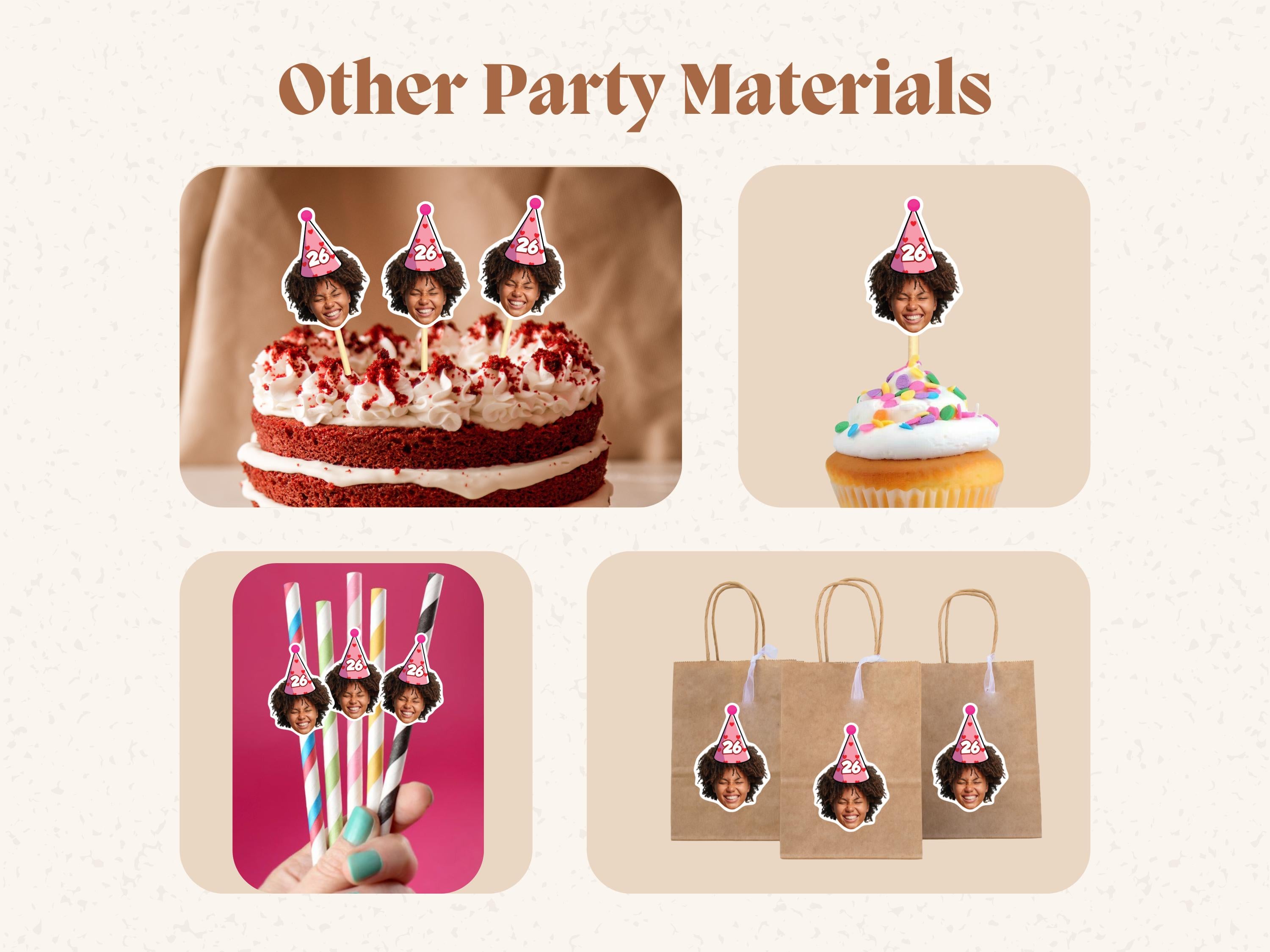 Add a touch of personalized glam to your party with our Customized Face Photo Gold Straws! Perfect for a first milestone birthday or any special celebration, these custom straws feature your chosen face photos topped with festive party hats, creating a unique and fun party decoration.