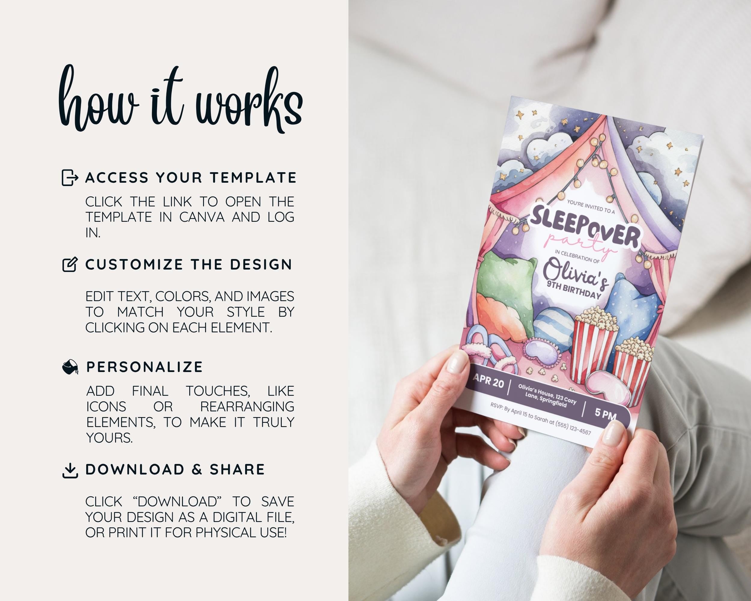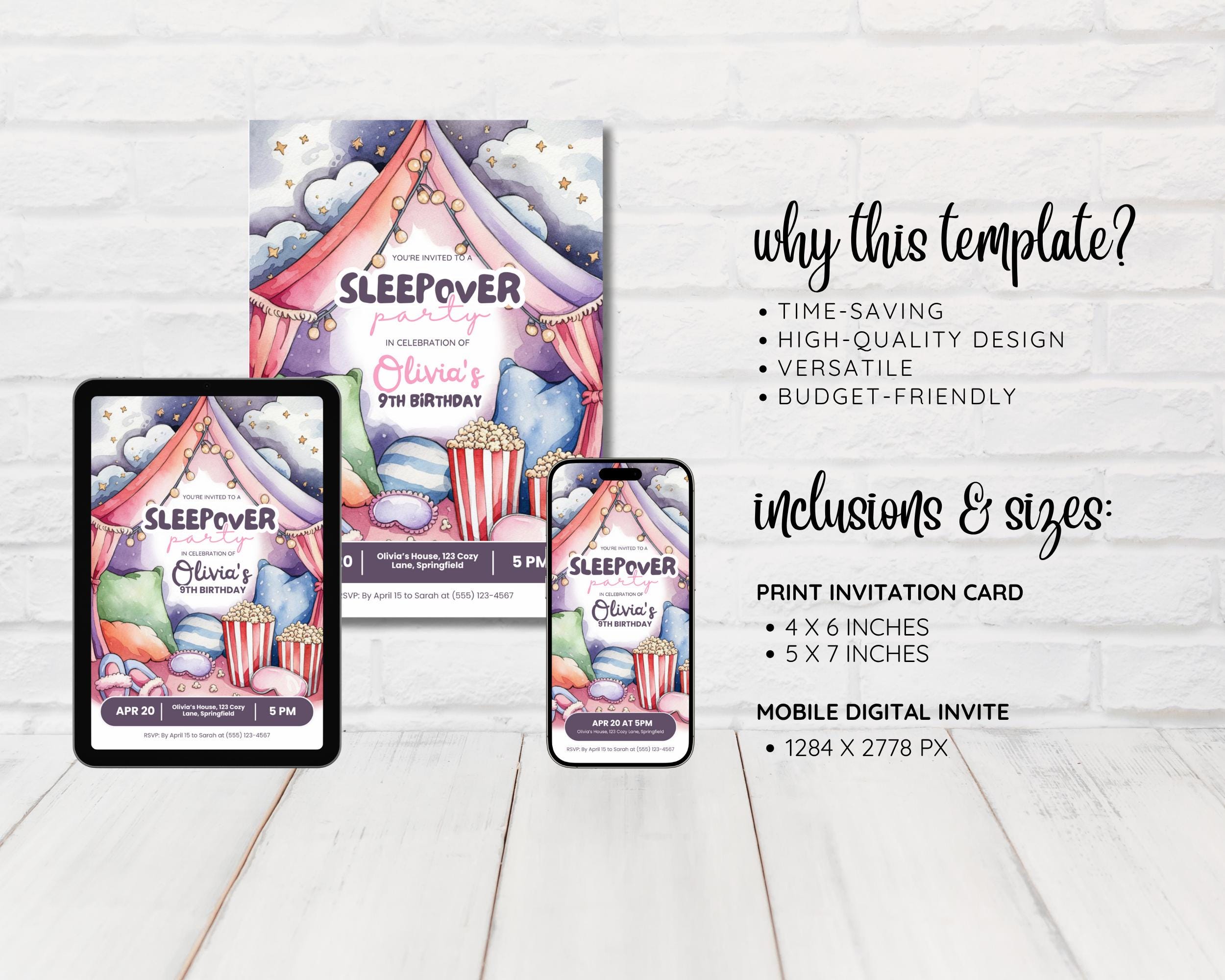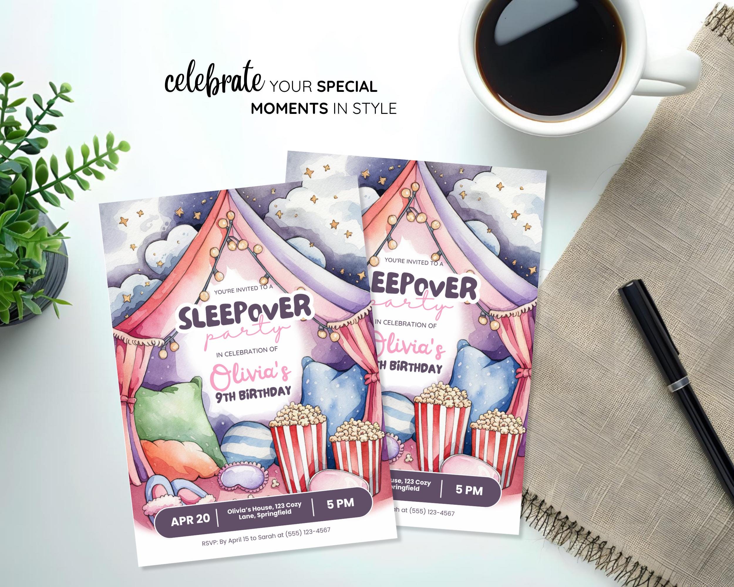 Sleepover Pajama Party Watercolor-Style Birthday Invitation Template Girls Acrylic Lamp