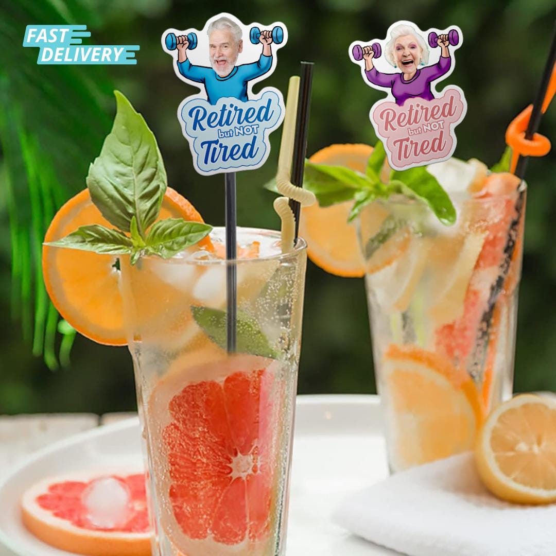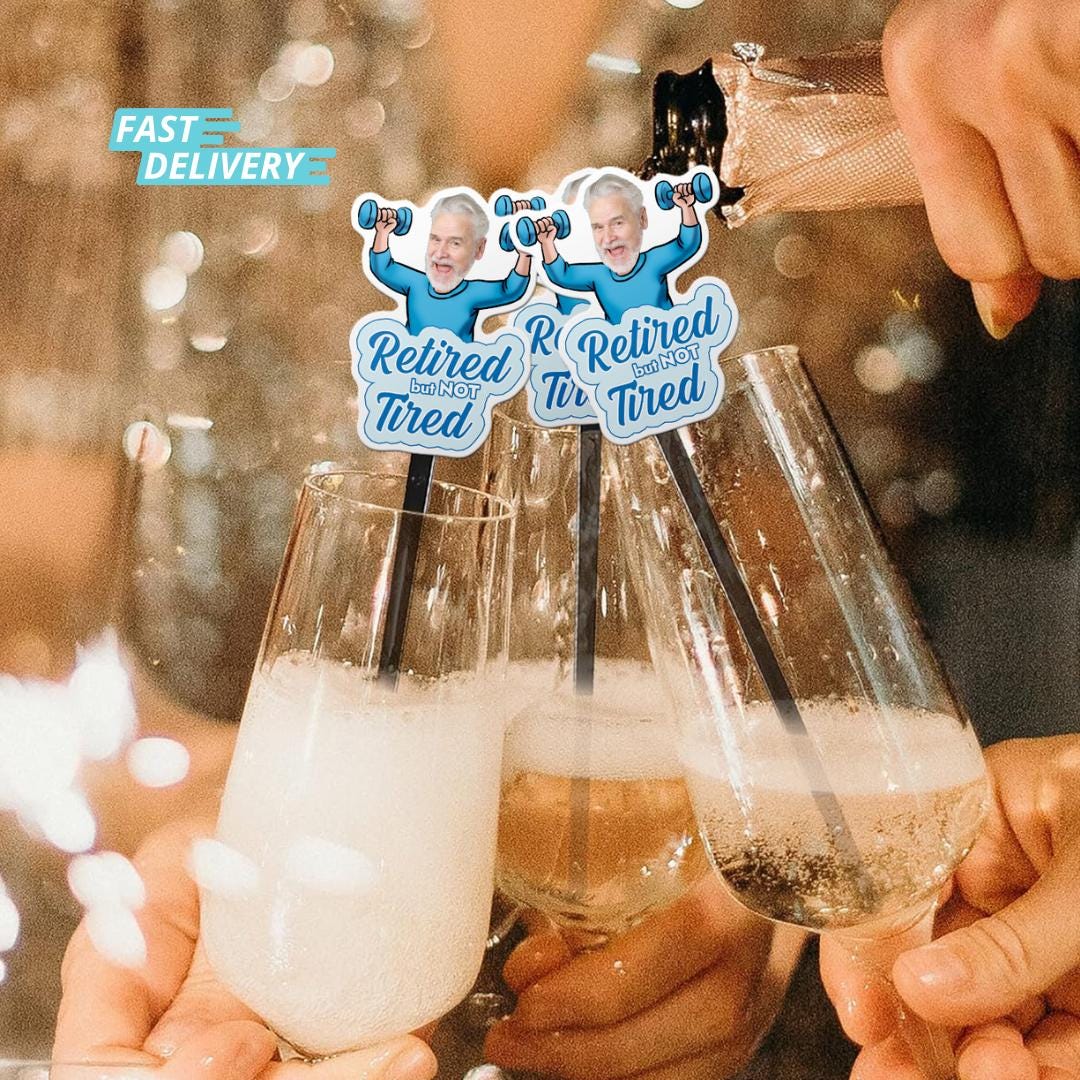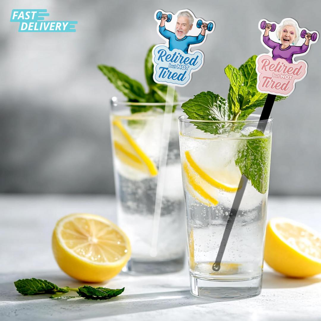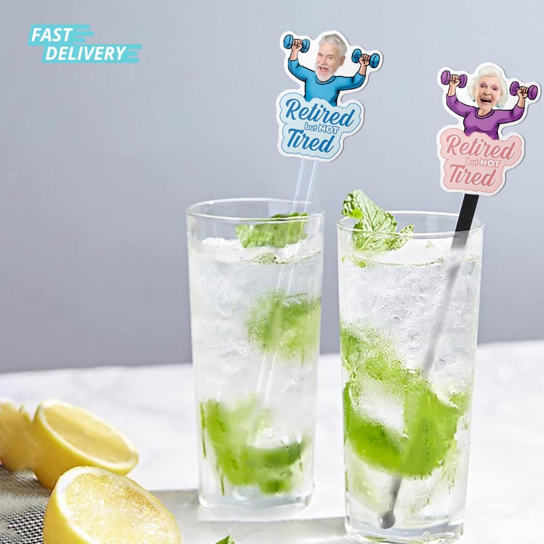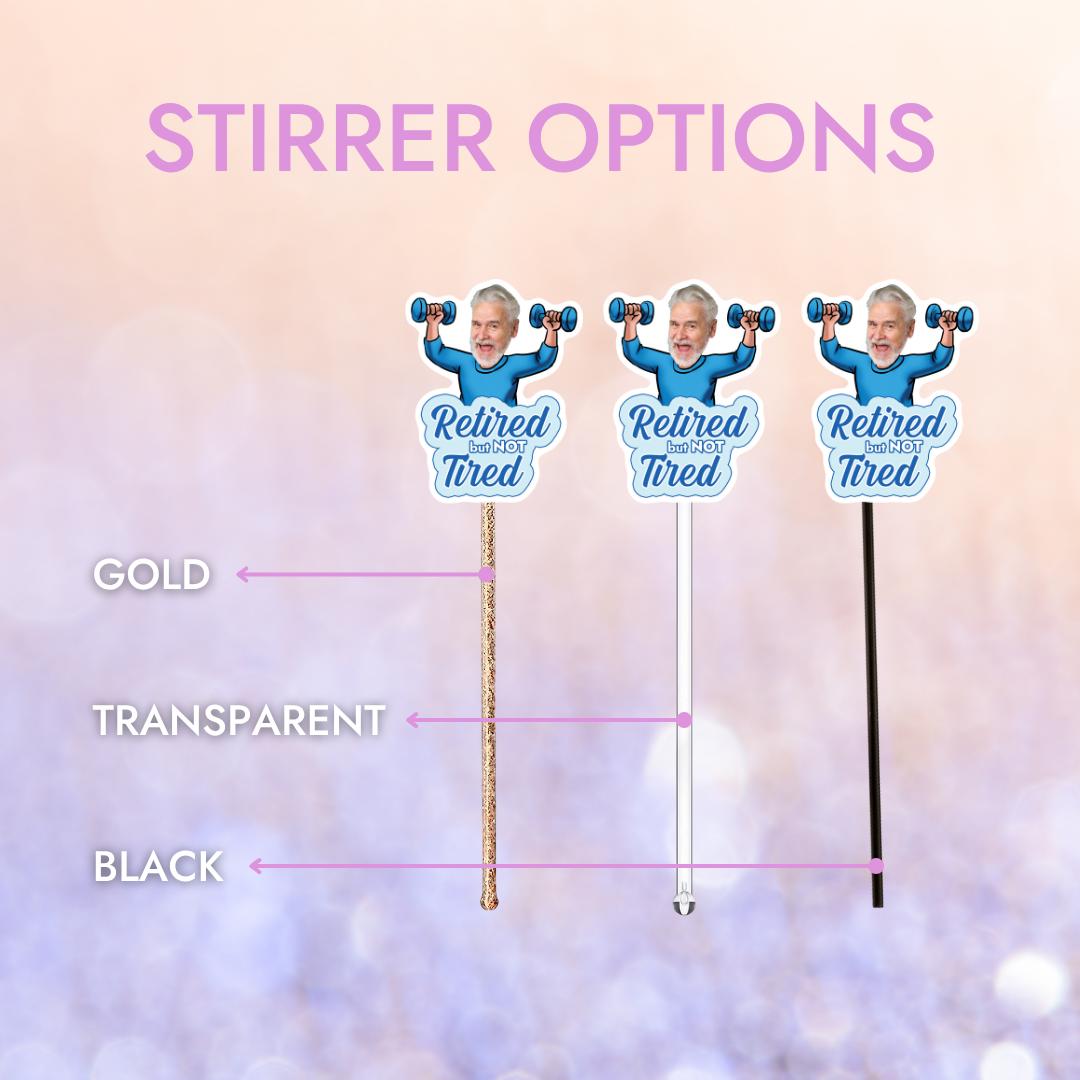 Add a fun twist to any retirement celebration with our "Retired But Not Tired" Custom Drink Stirrers! These personalized cocktail sticks feature the retirees face and are the perfect addition to your retirement party, office send-off, or 60th birthday bash.