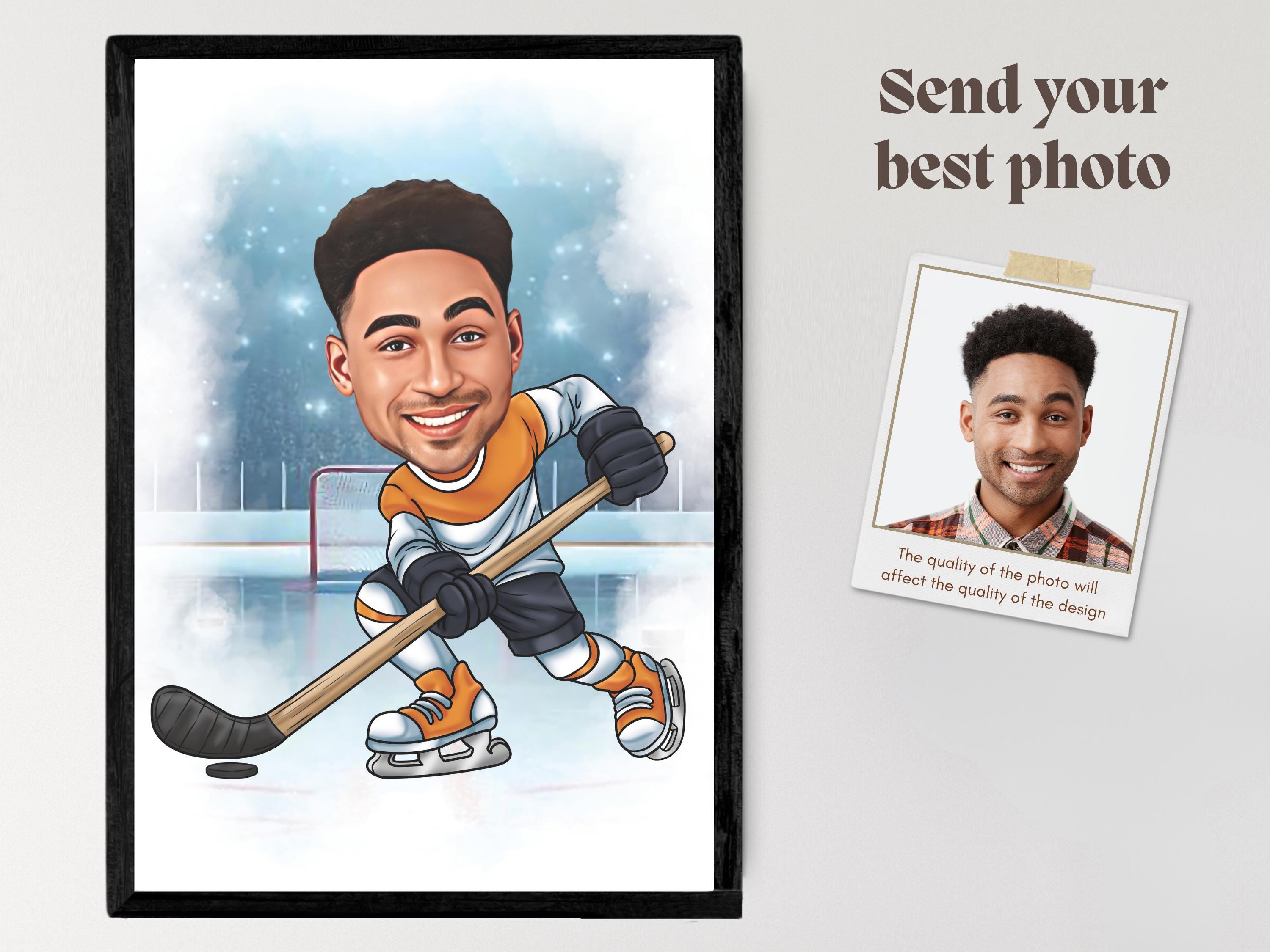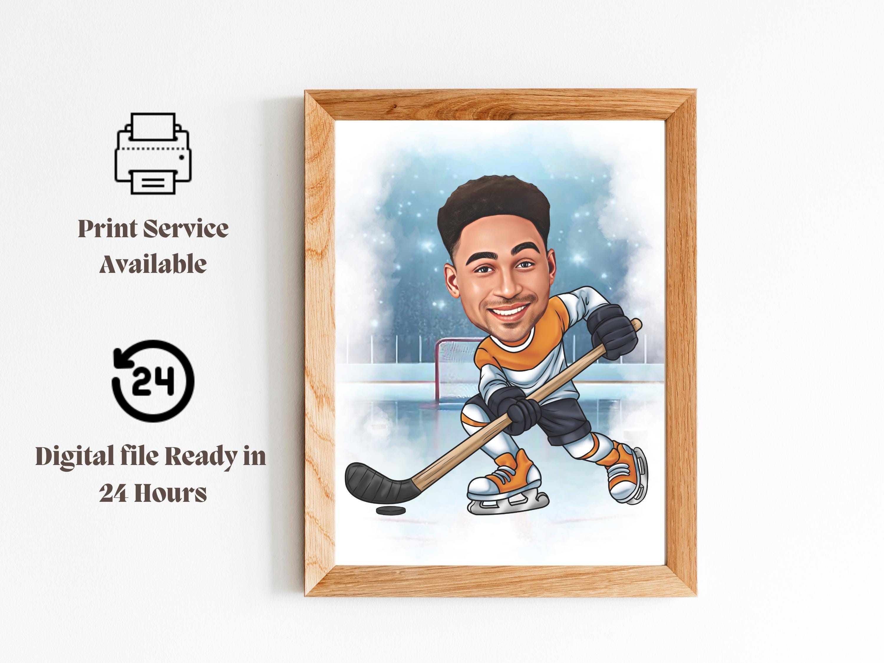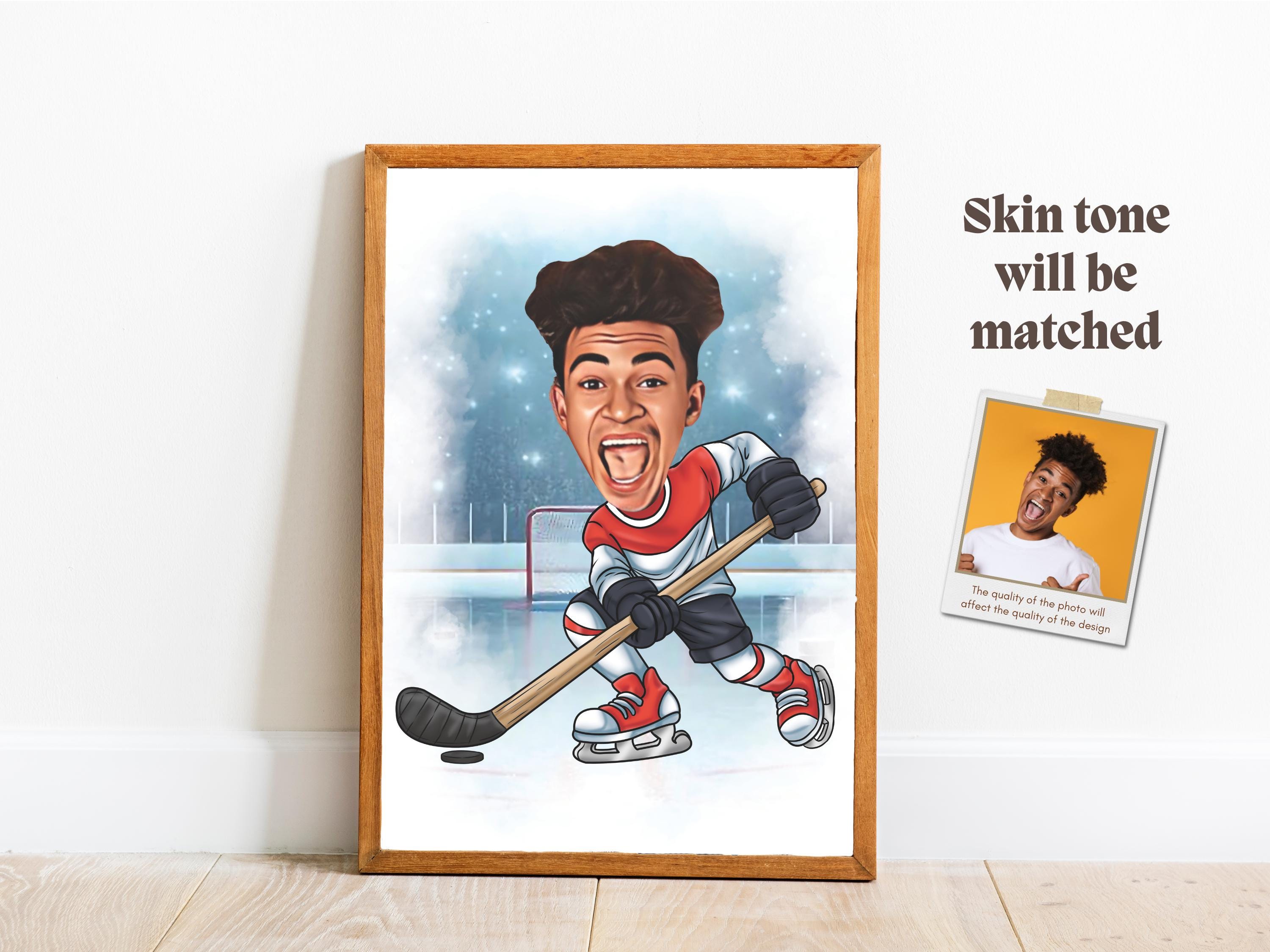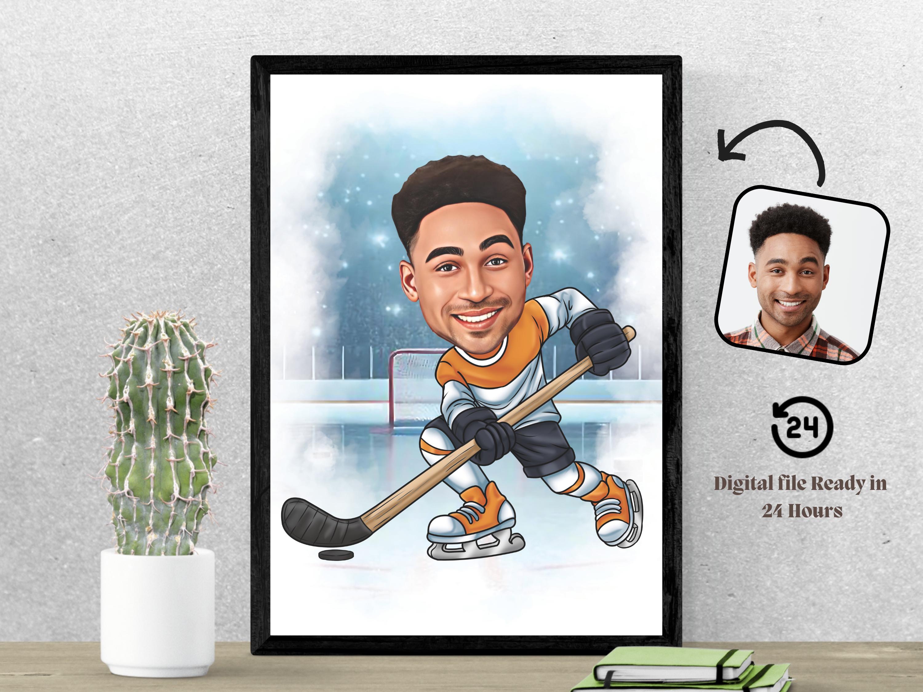 Custom Hockey Portrait Personalized Hockey Player Caricature Drawing