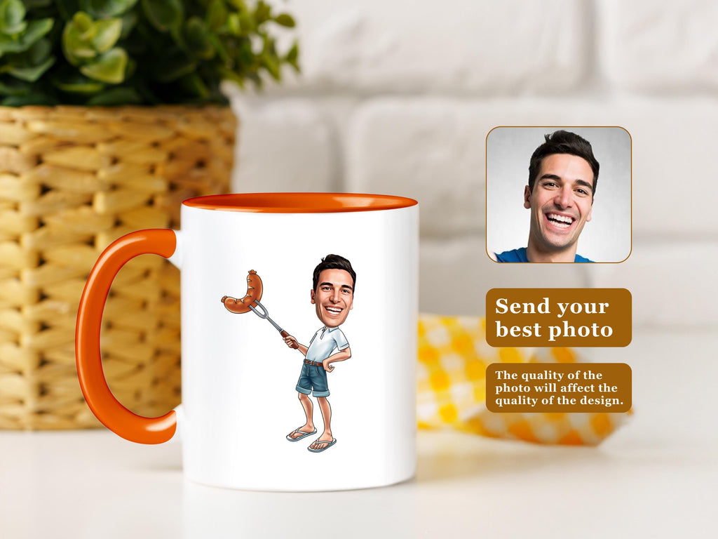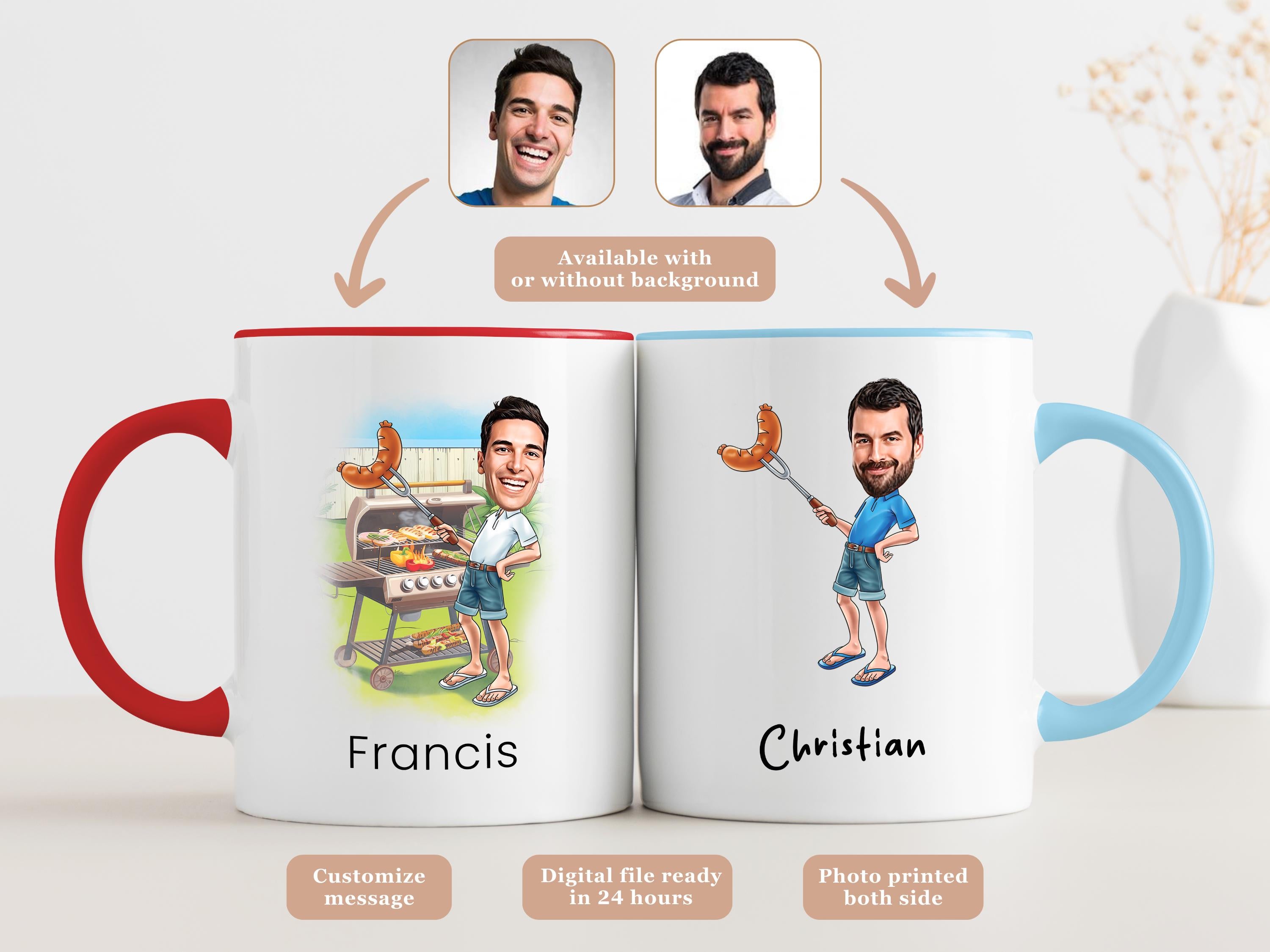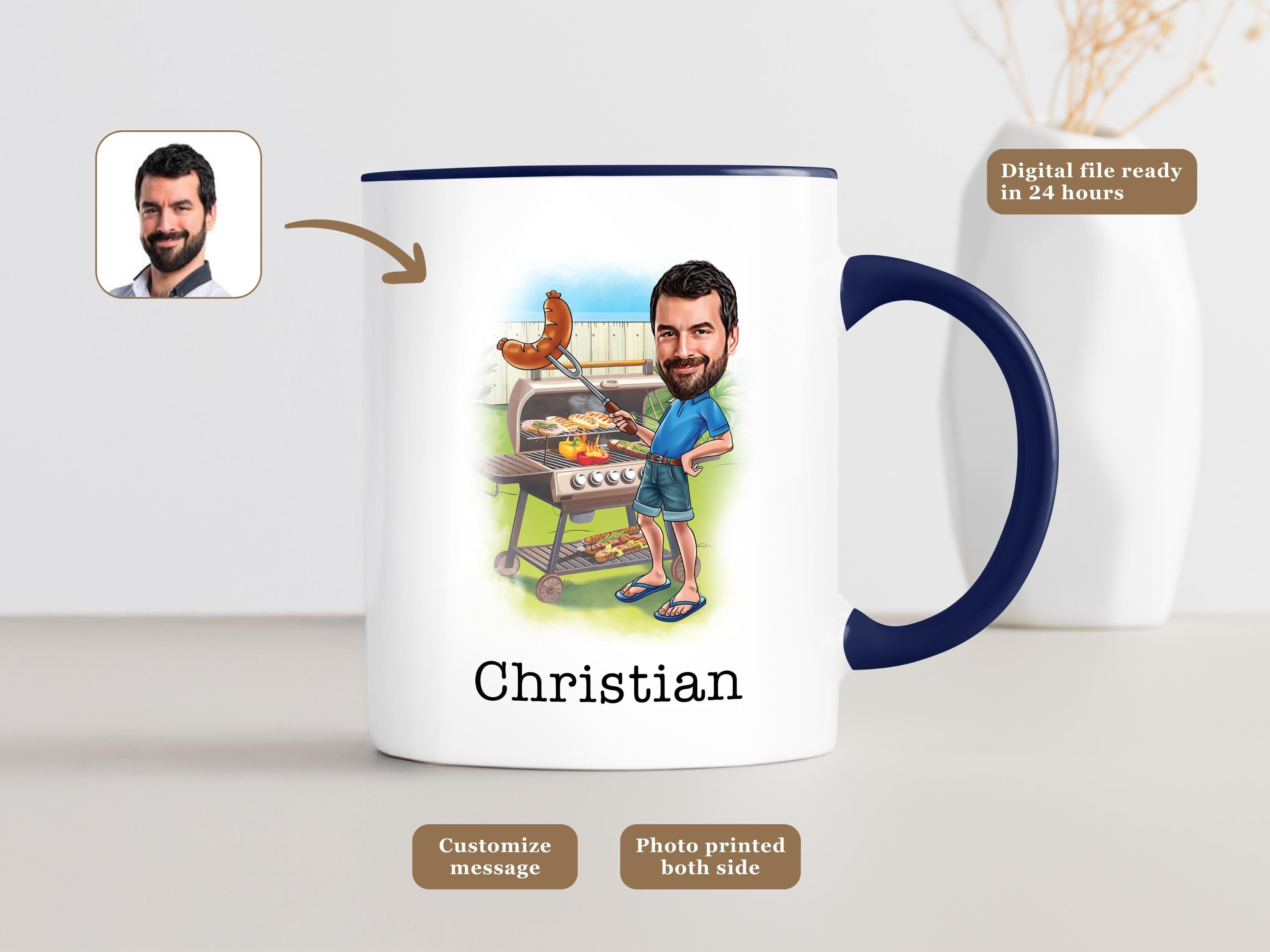 Barbeque Personalized Face Mug Custom BBQ Caricature Mug for Him or Her.