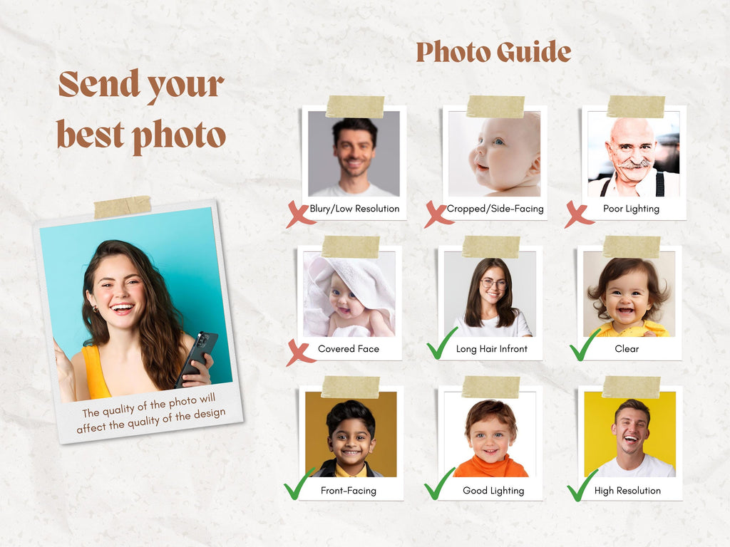 Processing Time: Your orders will be designed, printed, and packaged within 1 –3 business days after we receive your photo(s) and personalization info.