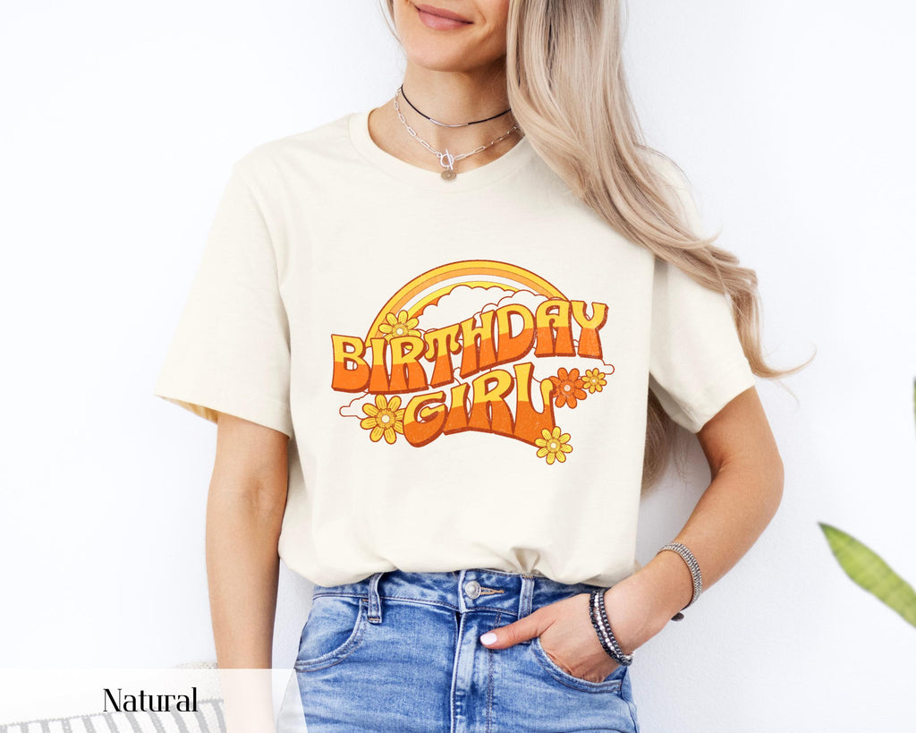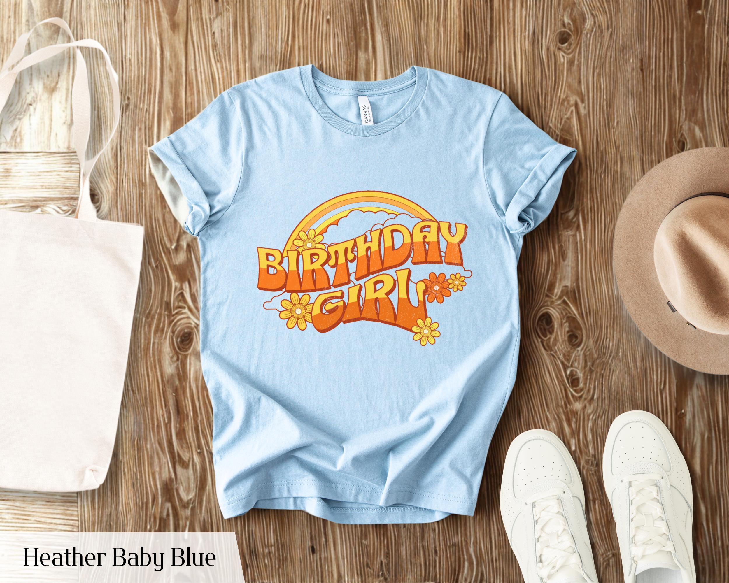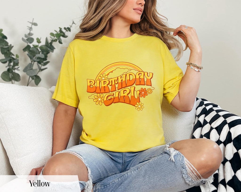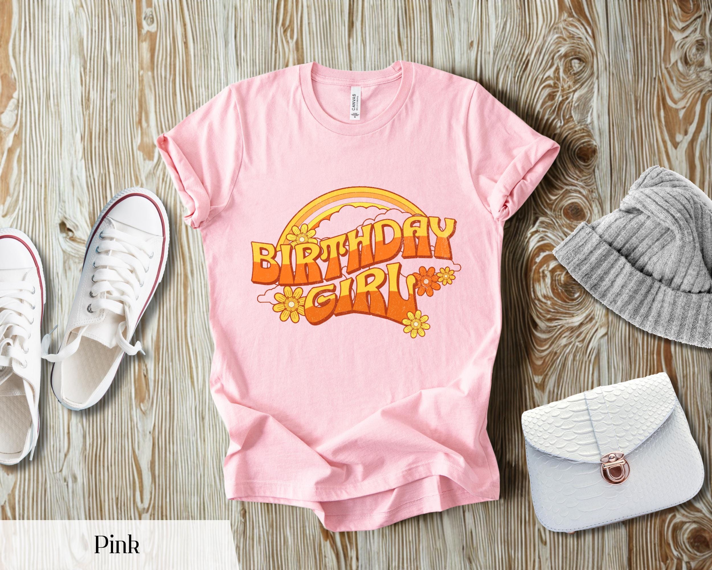 Birthday Girl T-Shirt Retro Rainbow & Flowers Tee