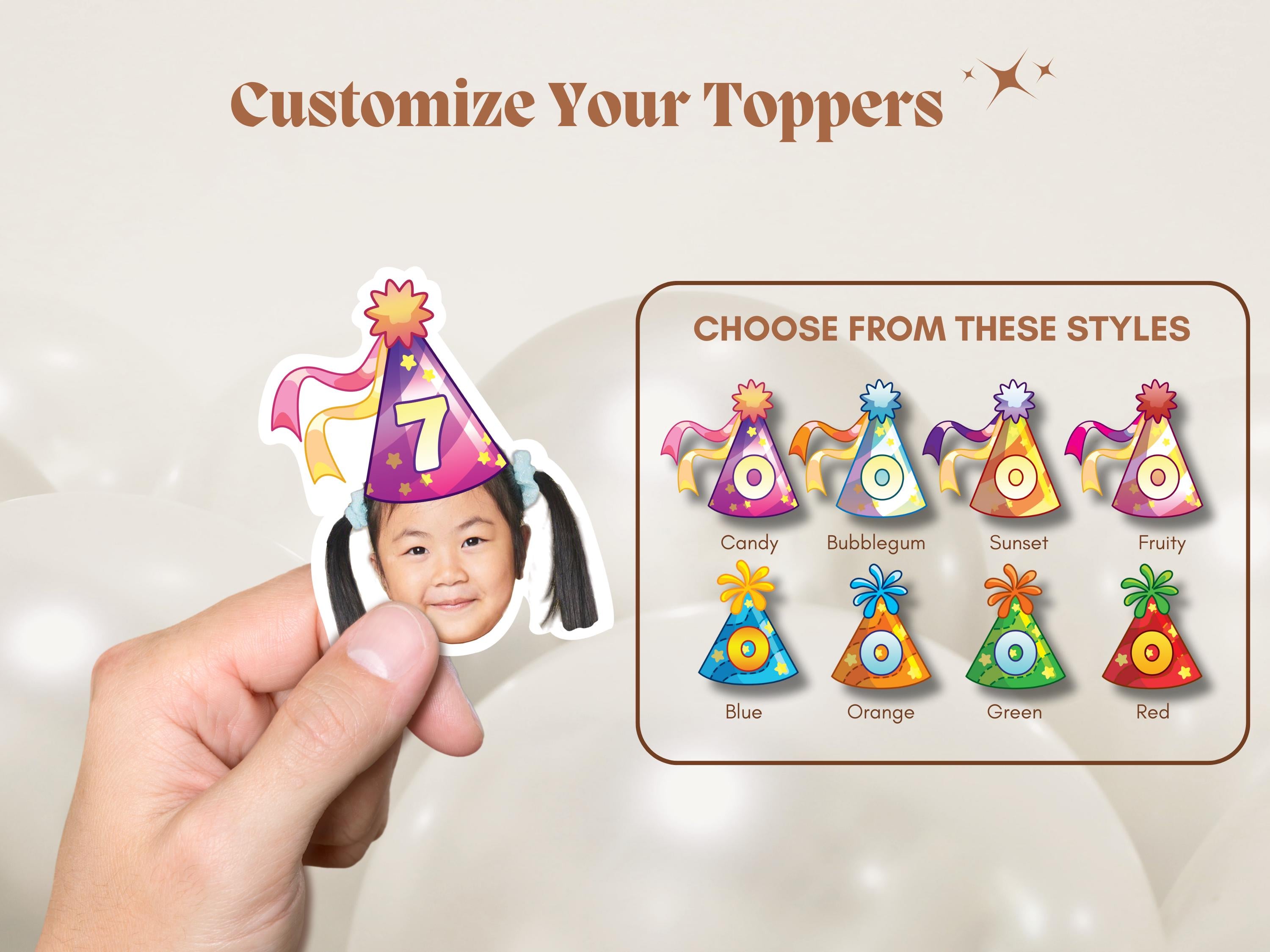 Celebrate in style with personalized birthday hat cupcake toppers or stickers, featuring the birthday VIP's age! Add a unique touch to the festivities with designs that transform cupcakes into festive treats.