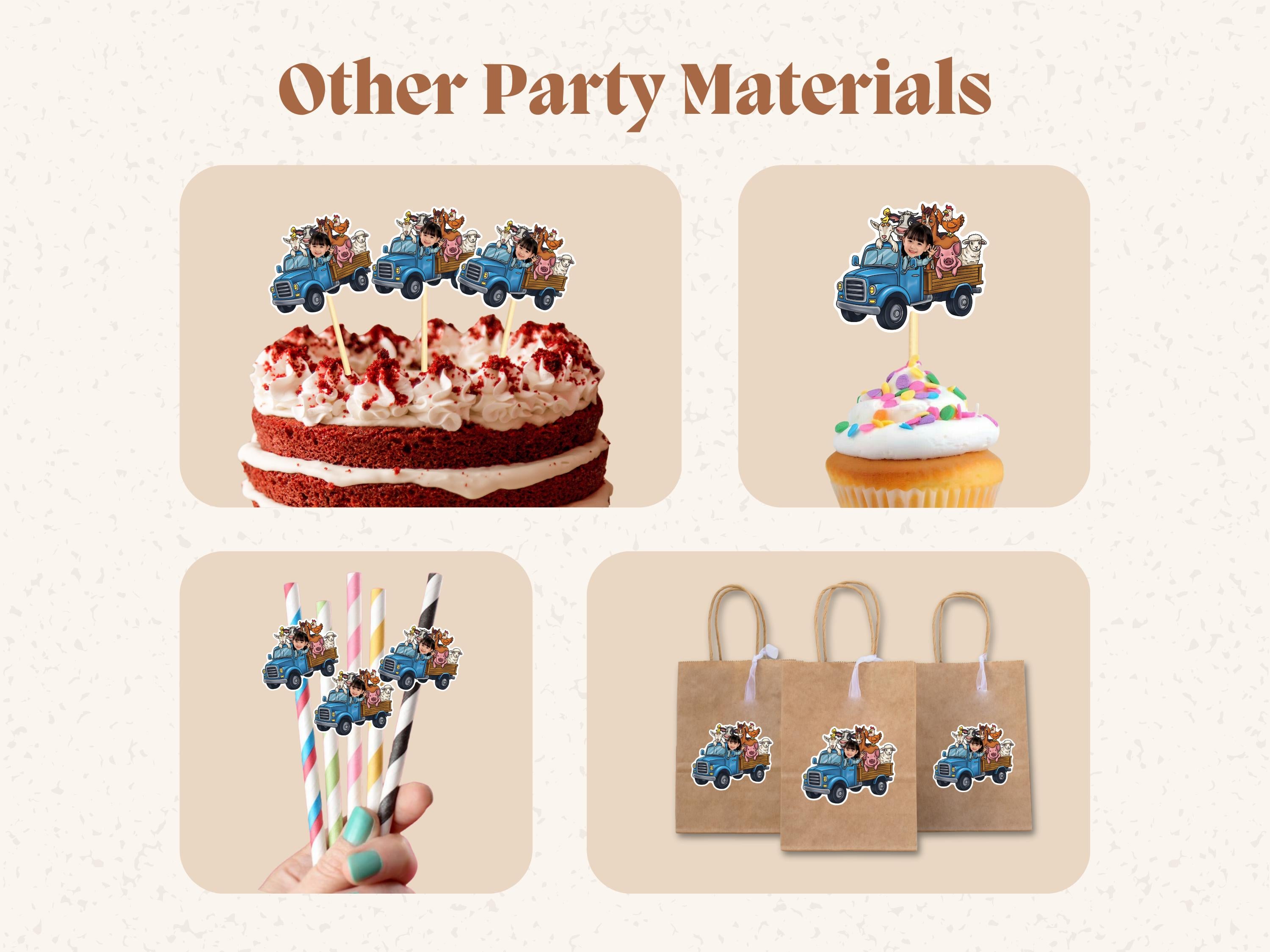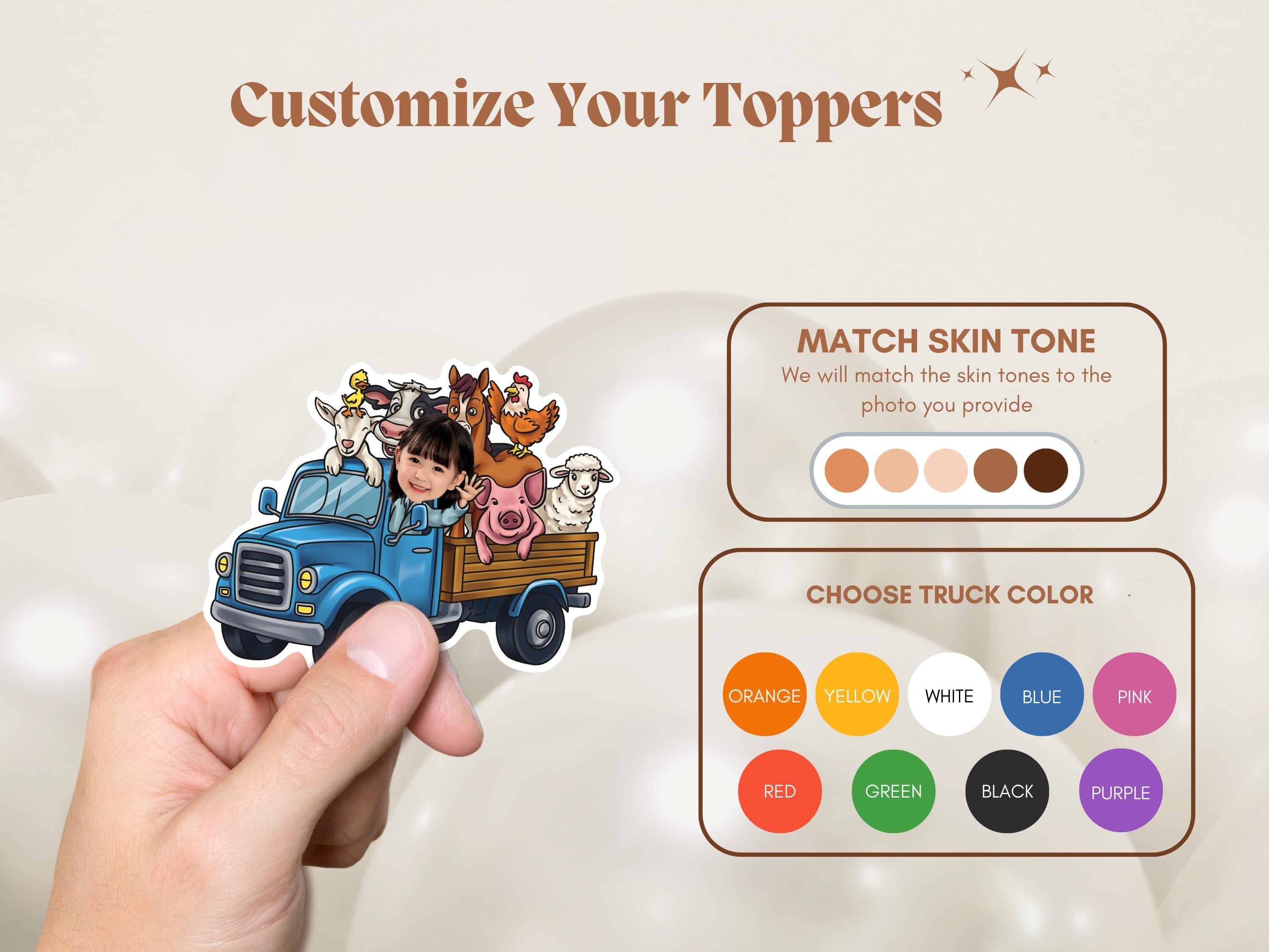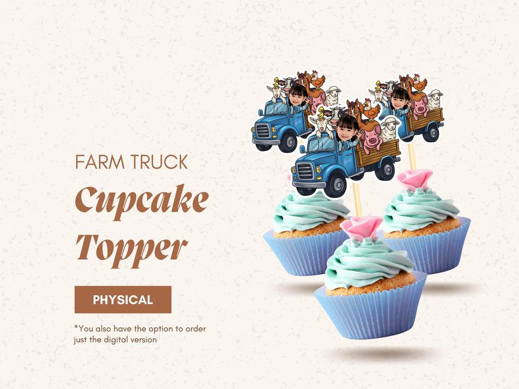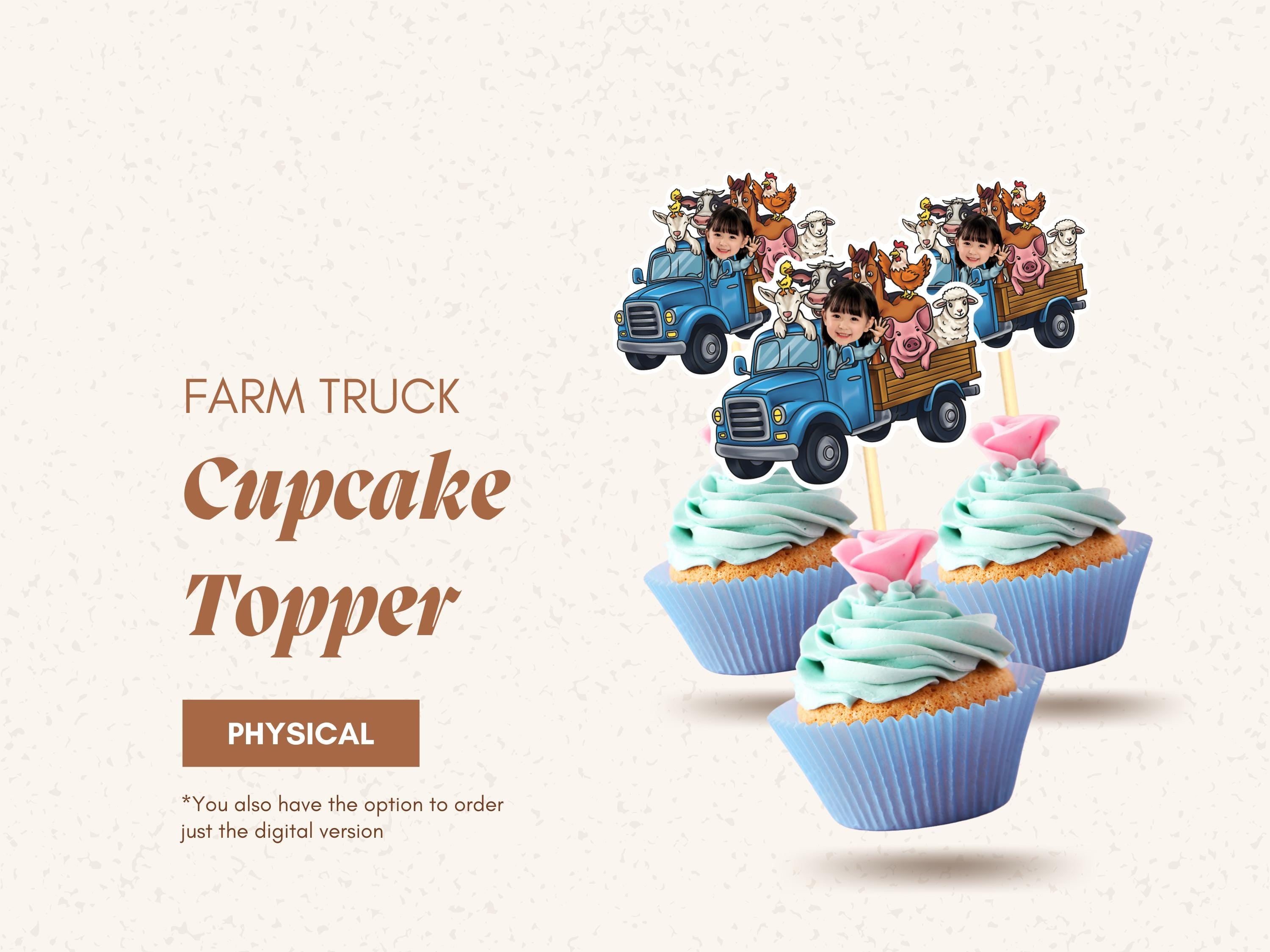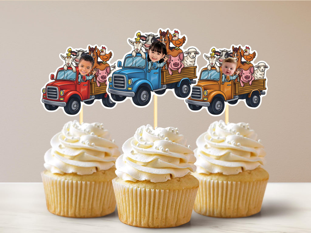 Roll into a fun-filled celebration with personalized farm truck-themed cupcake toppers or stickers! Add a special touch by featuring the celebrant's face in designs that turn cupcakes into charming farm truck treats.