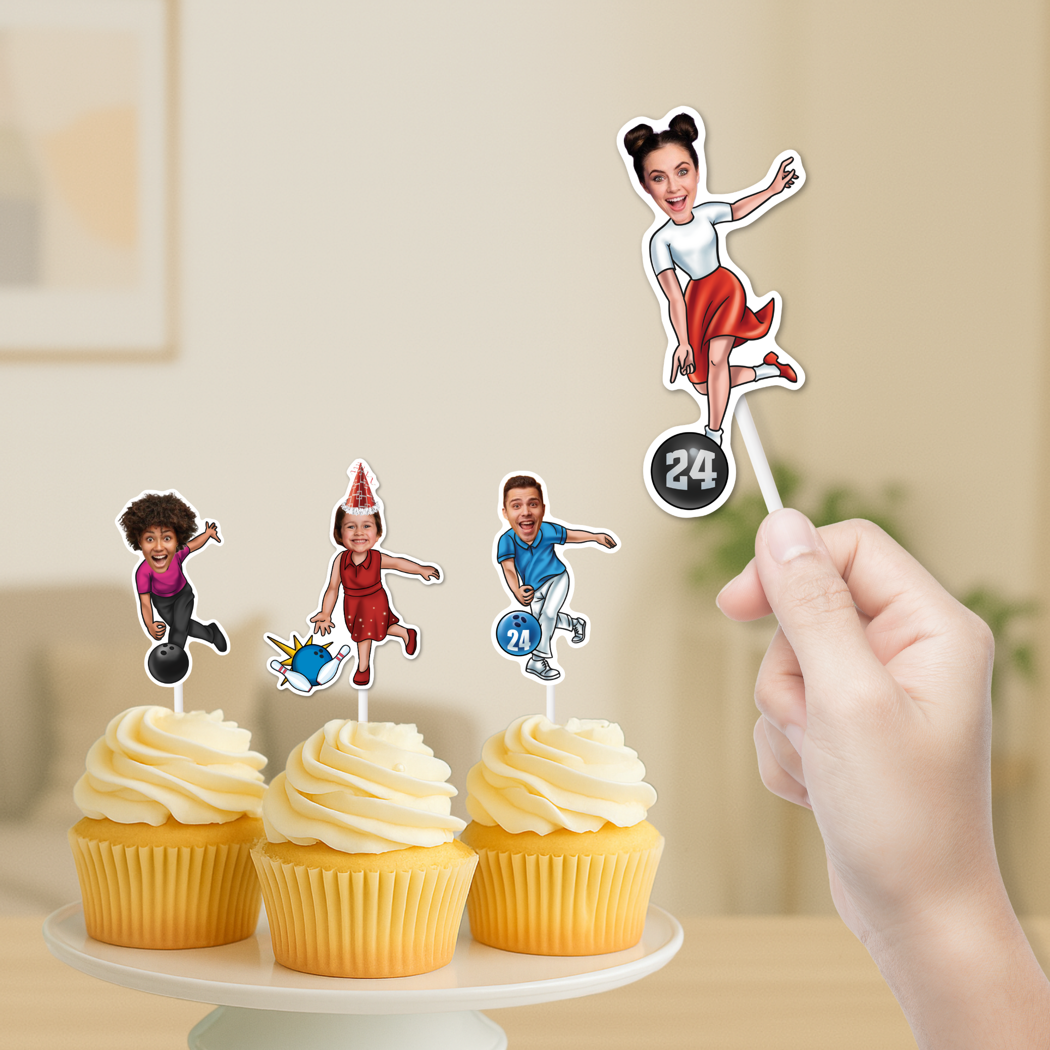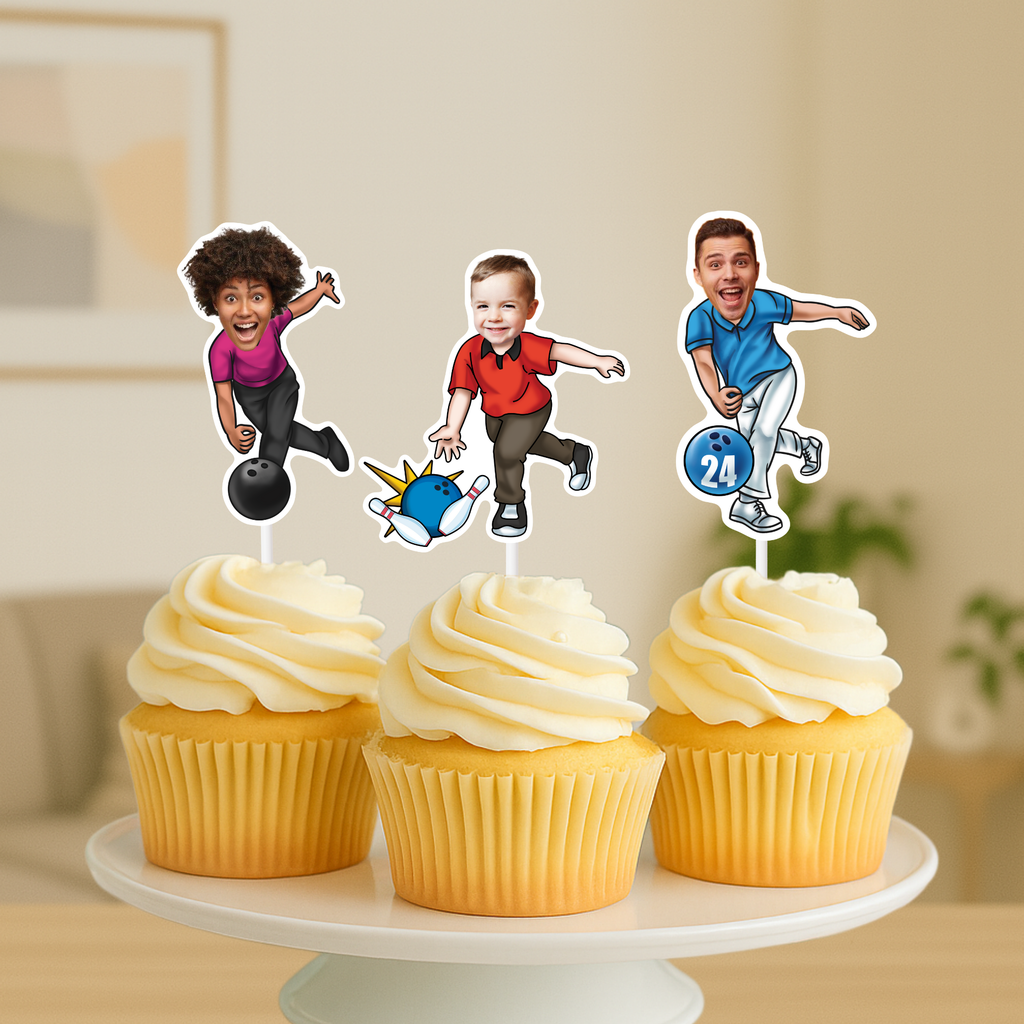 Get ready to bowl over your guests with personalized bowling-themed cupcake toppers or stickers! Roll into the fun with sporty designs that turn cupcakes into winning treats.