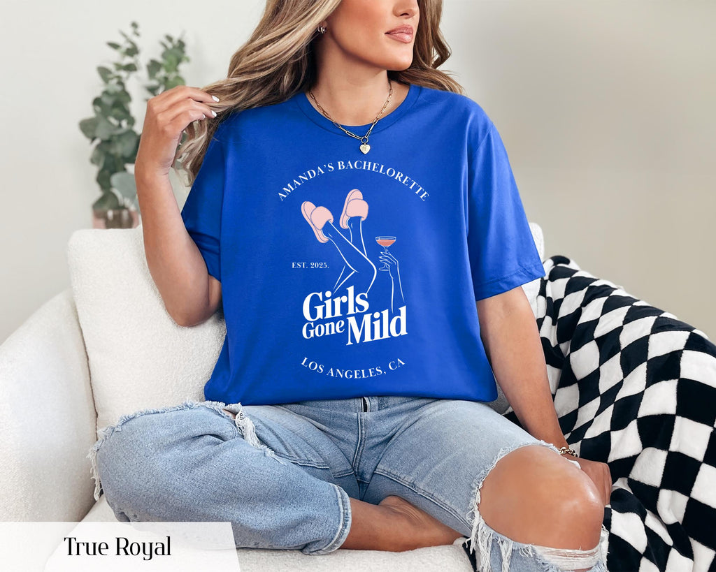 Celebrate in cozy style with our "Girls Gone Mild" bachelorette shirts, the perfect matching outfit for your relaxing spa weekend or classy bridal shower! These custom t-shirts are a must-have for bridesmaids, besties, and the bride herself who prefer bubbly over bar-hopping and facials over fiestas.