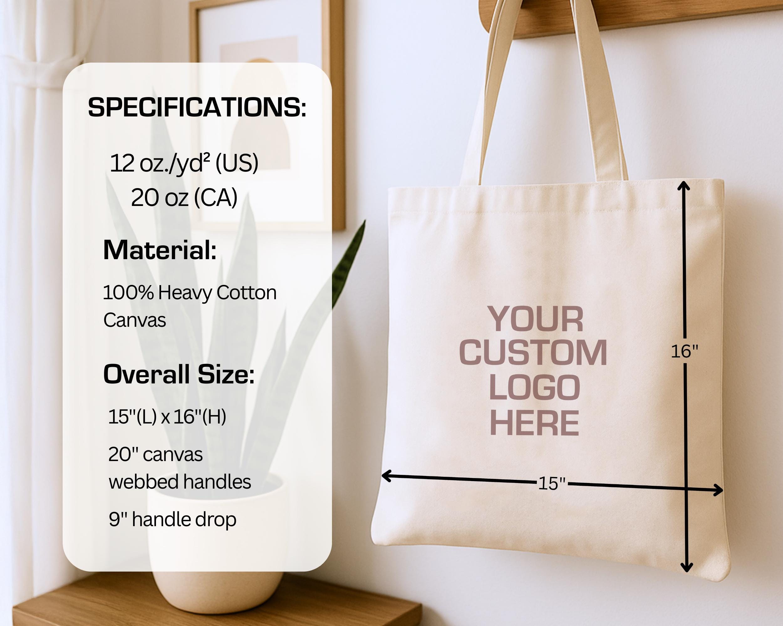 Make your brand stand out with our Bulk Custom Canvas Tote Bags! Perfect for business promotions, company events, giveaways, or party favors! Add your logo, design, or text to create a reusable, eco-friendly bag thats both stylish and practical.