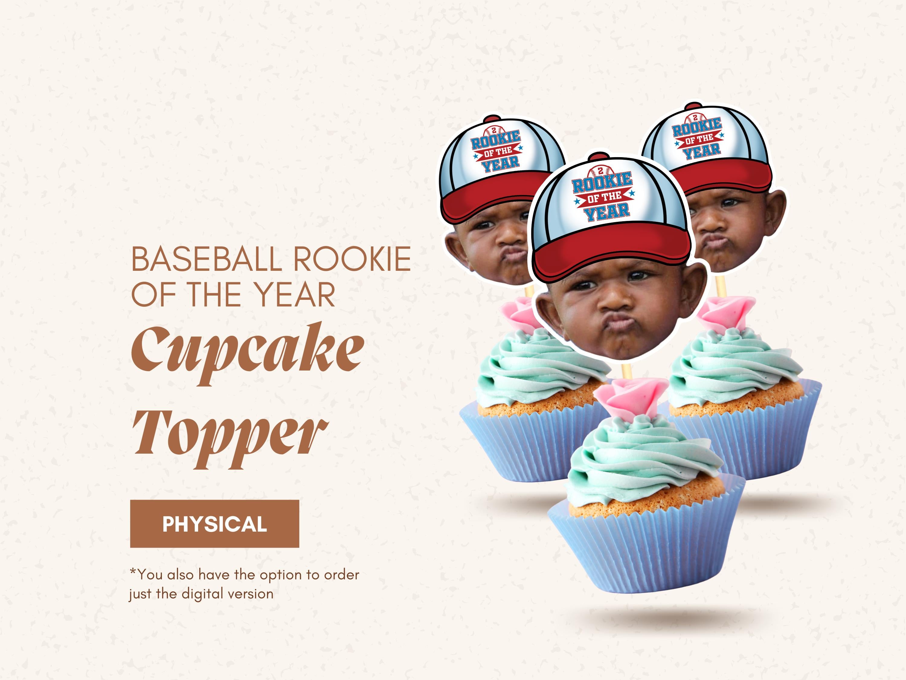 Hit a home run with these Custom Baseball Cupcake Toppers! Perfect for celebrating your little slugger's big day! Whether it's a Rookie of the Year 1st birthday or a baseball-themed party, these personalized toppers add the perfect sporty touch to your treats.