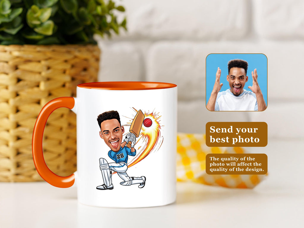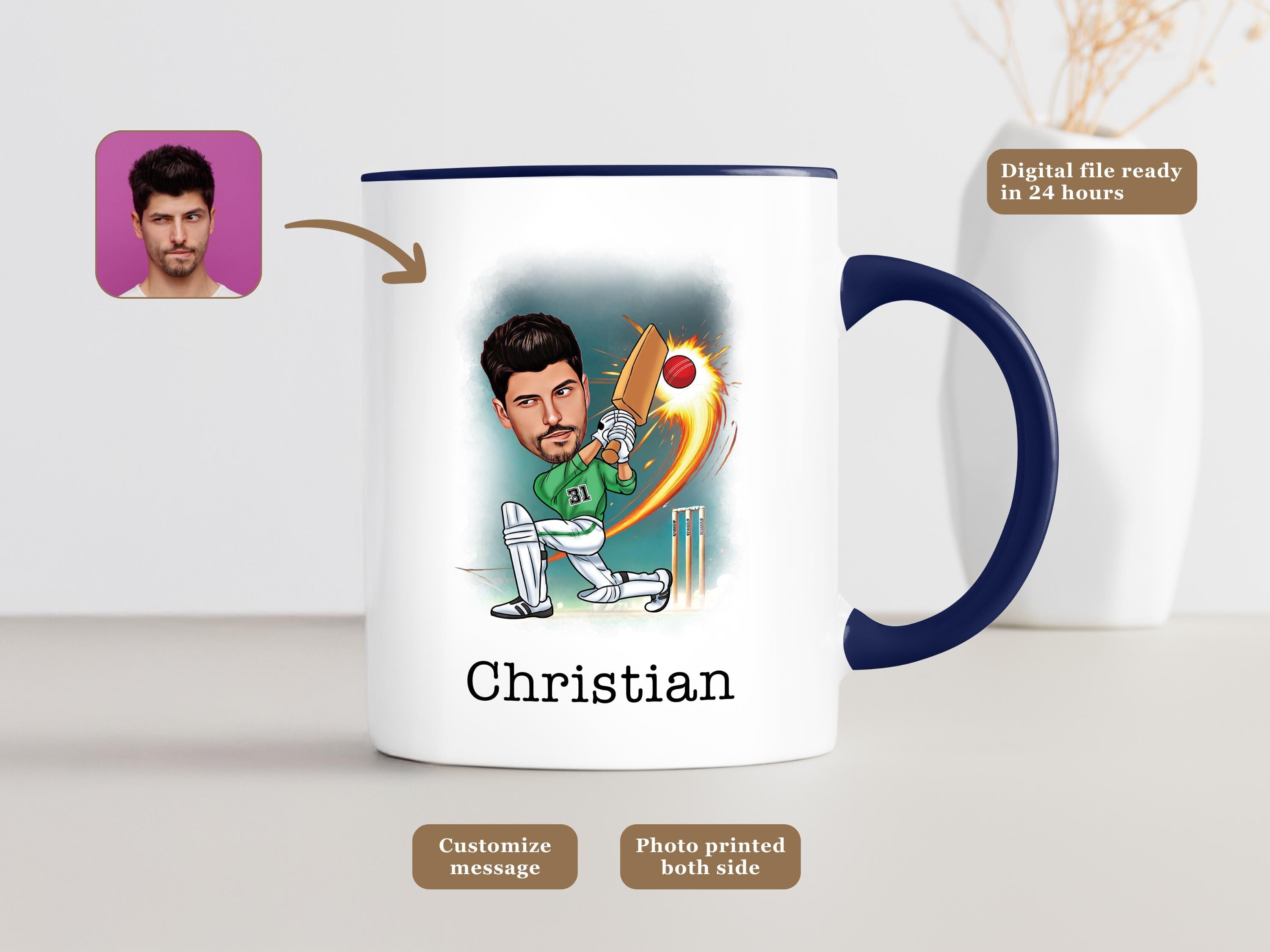Custom Cricket Mug Unique Caricature Coffee Cup for