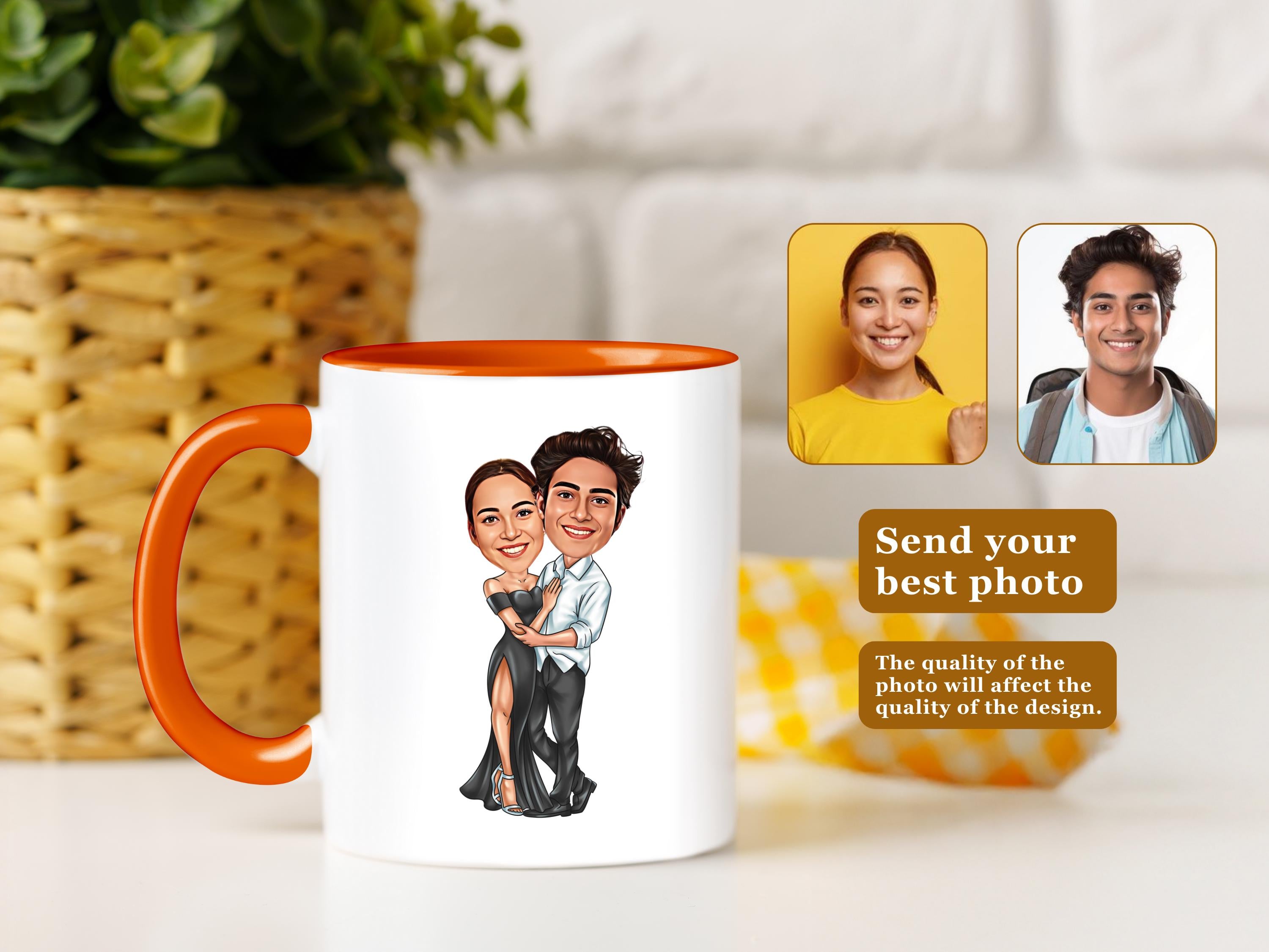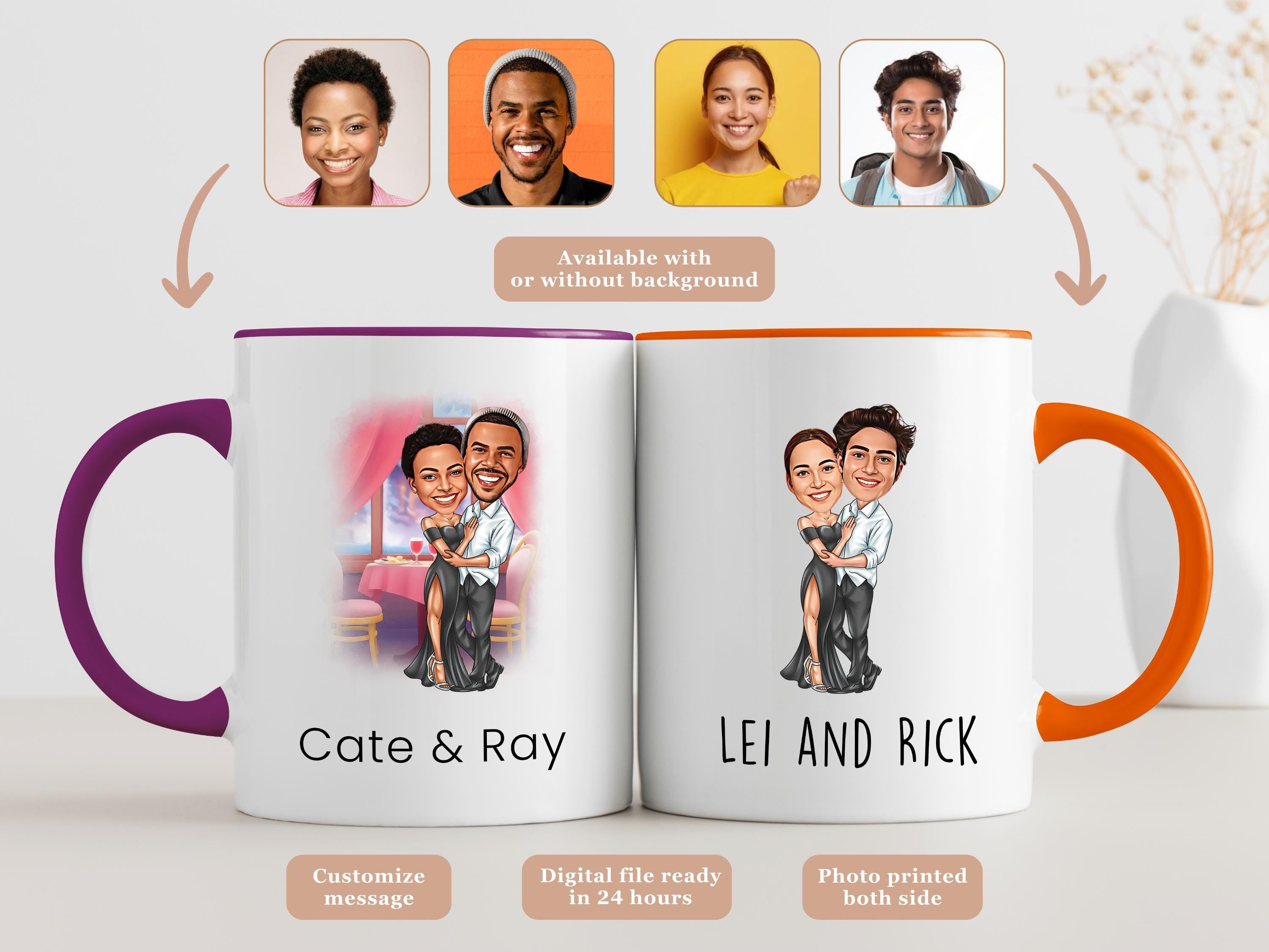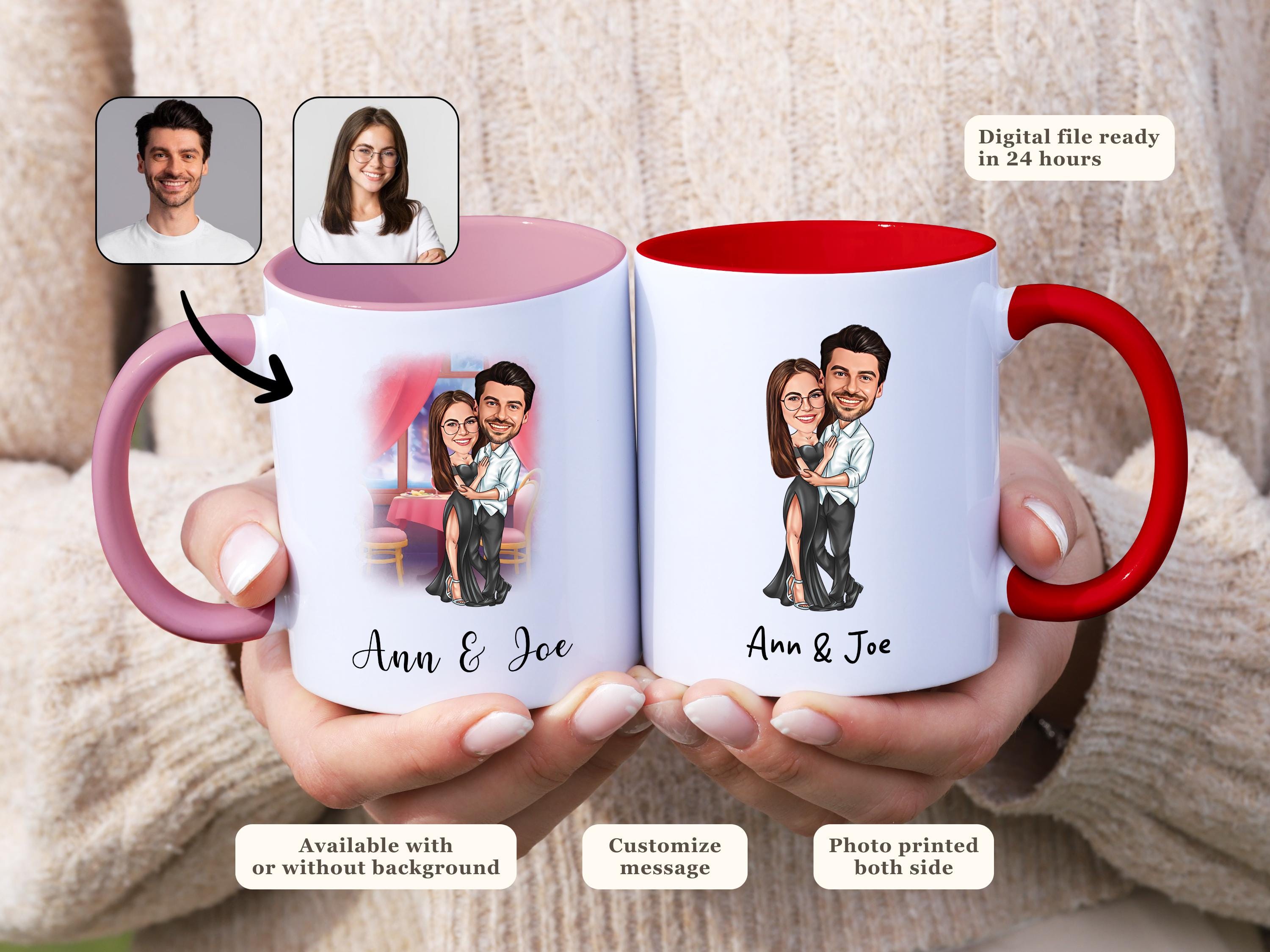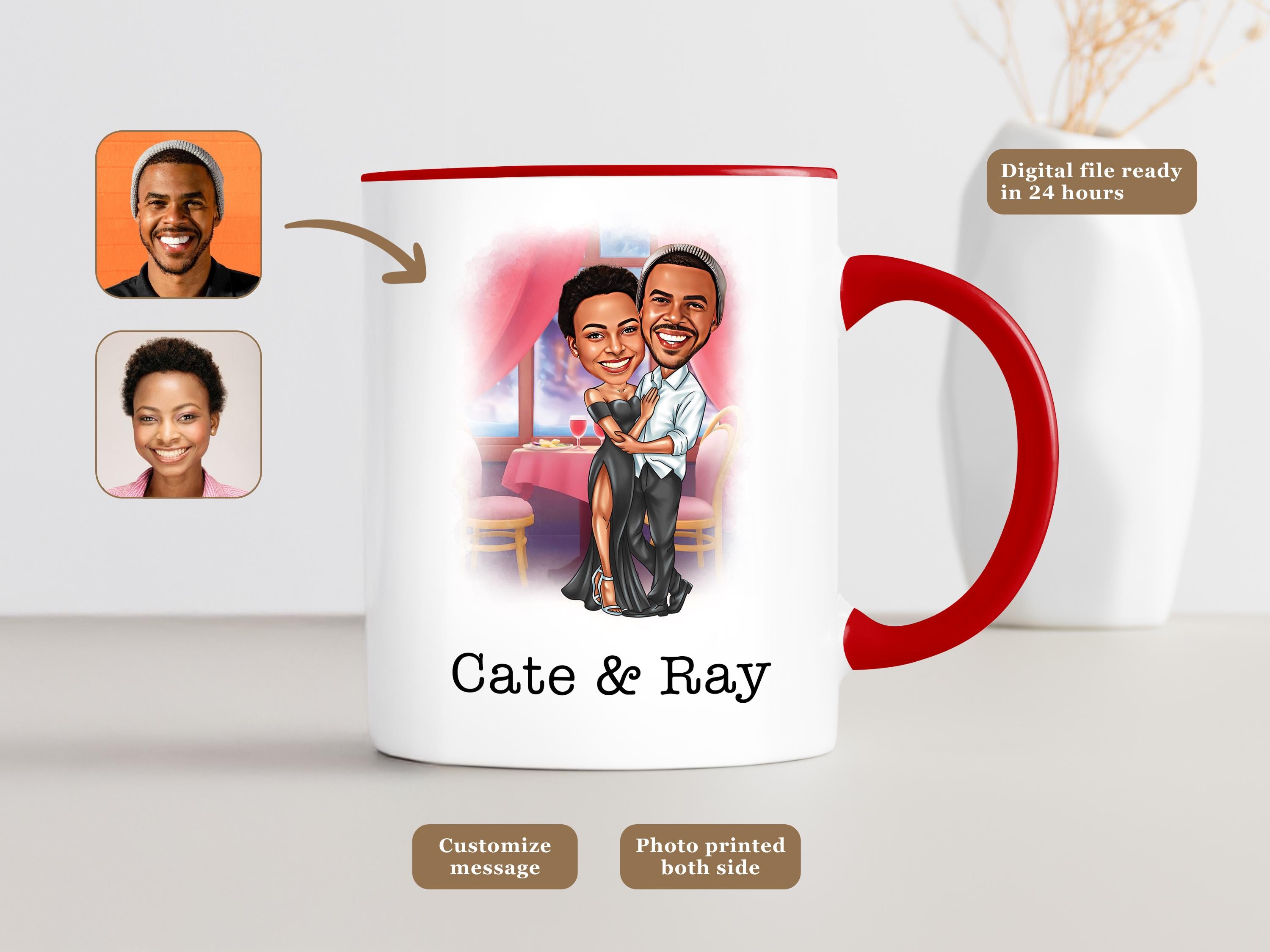 Custom Elegant Couple Caricature Mug Personalized Cartoon Coffee