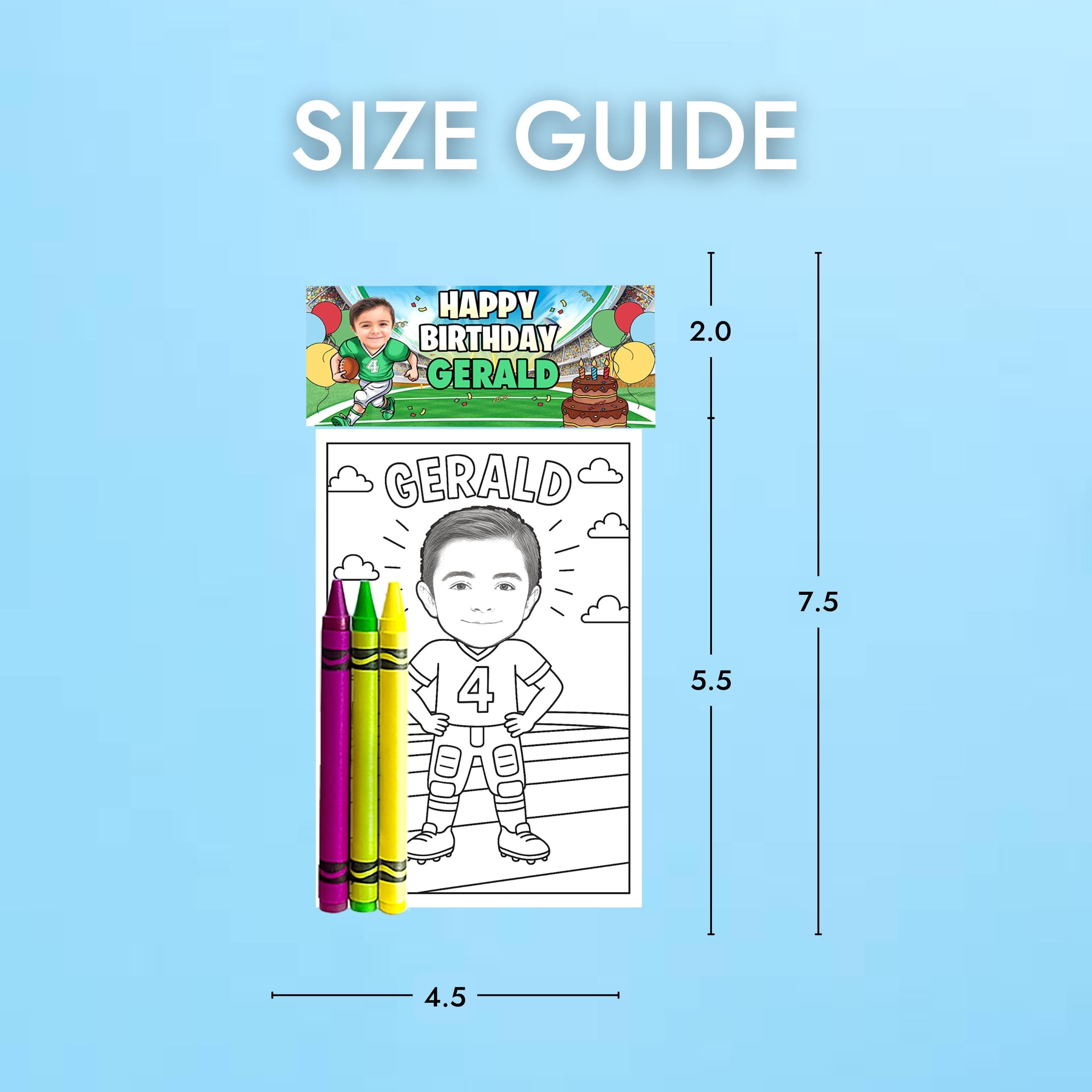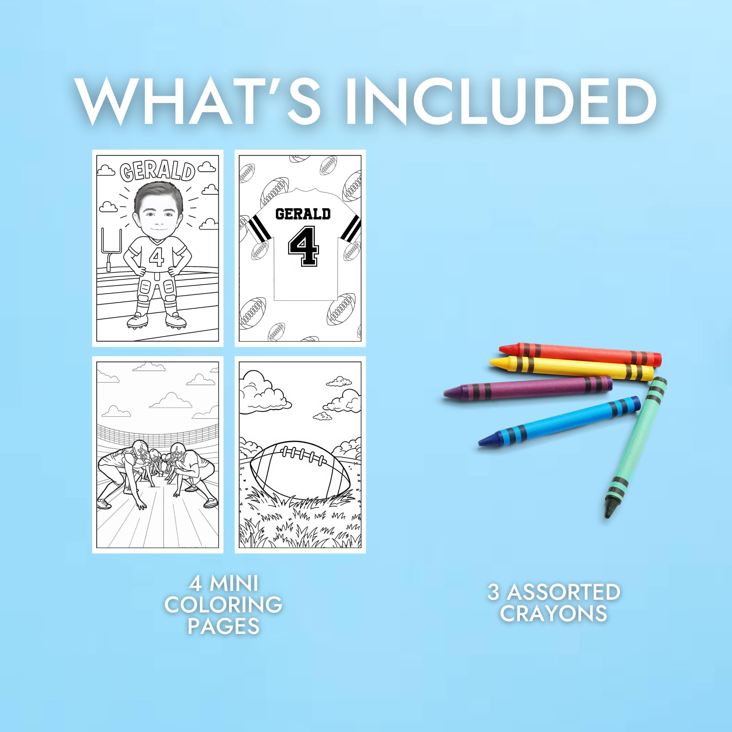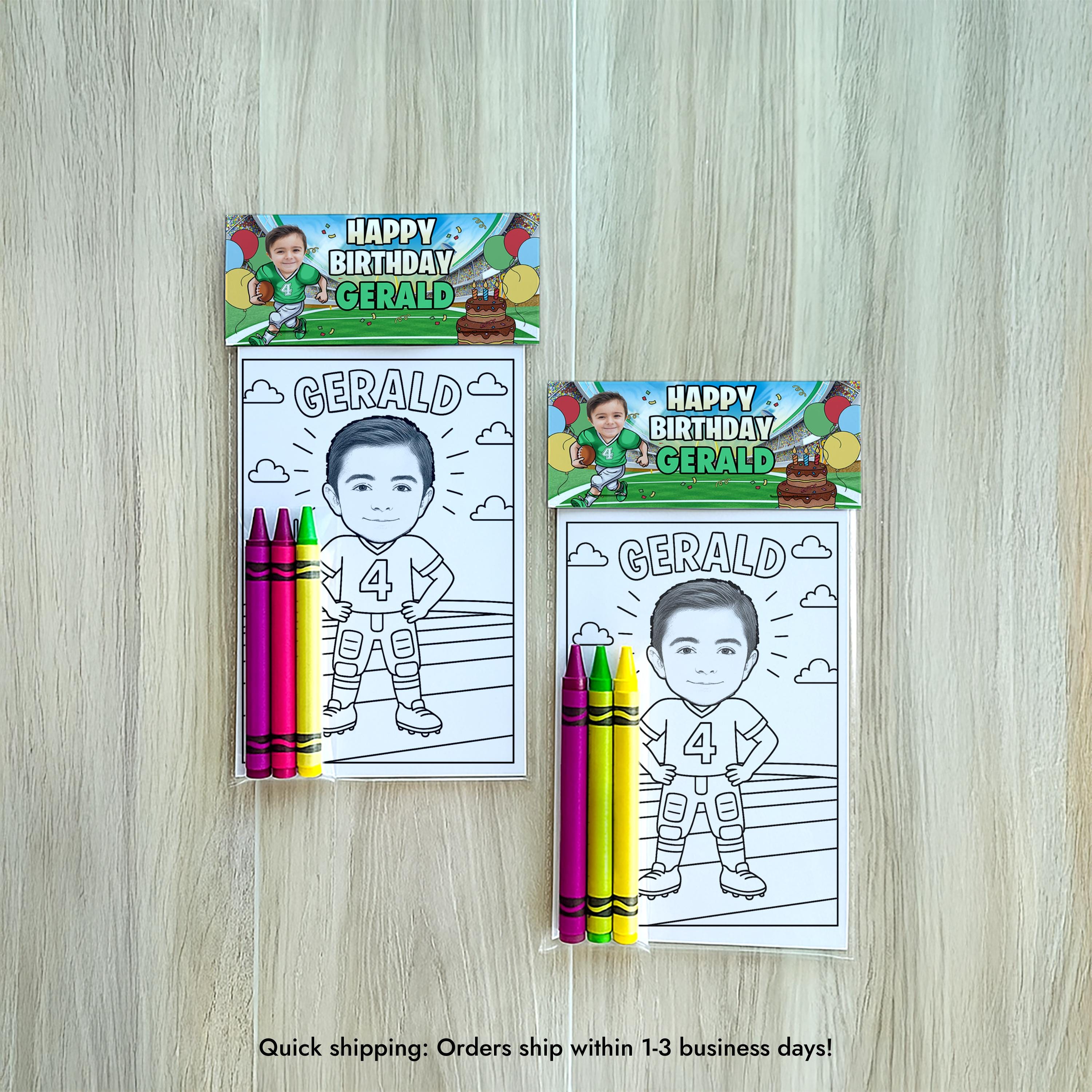 Score big at your next party with these Custom Football Coloring Pages! Perfect for kids' birthdays, sports-themed celebrations, or classroom activities, each sheet is personalized with your childs face for a fun and unique touch.