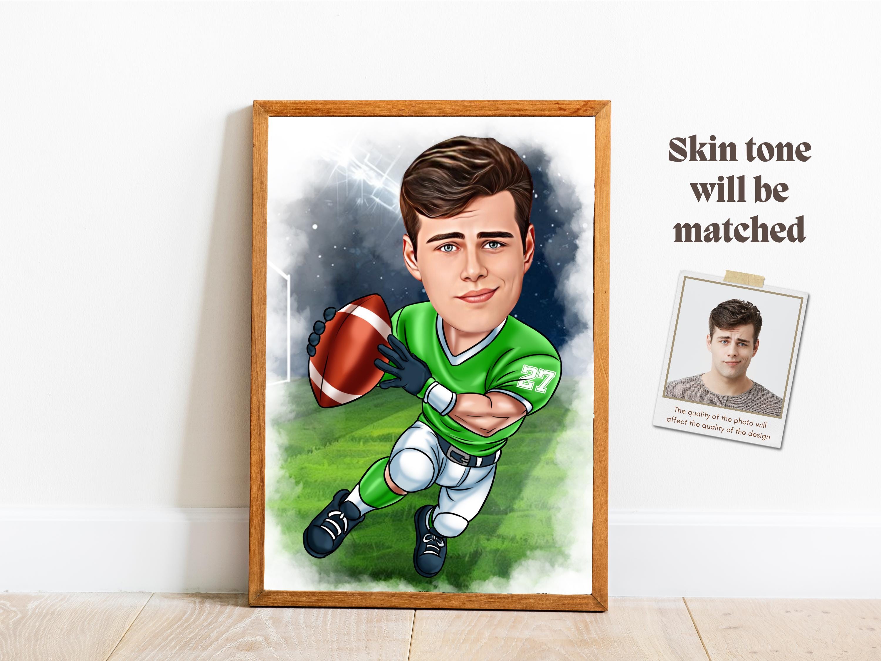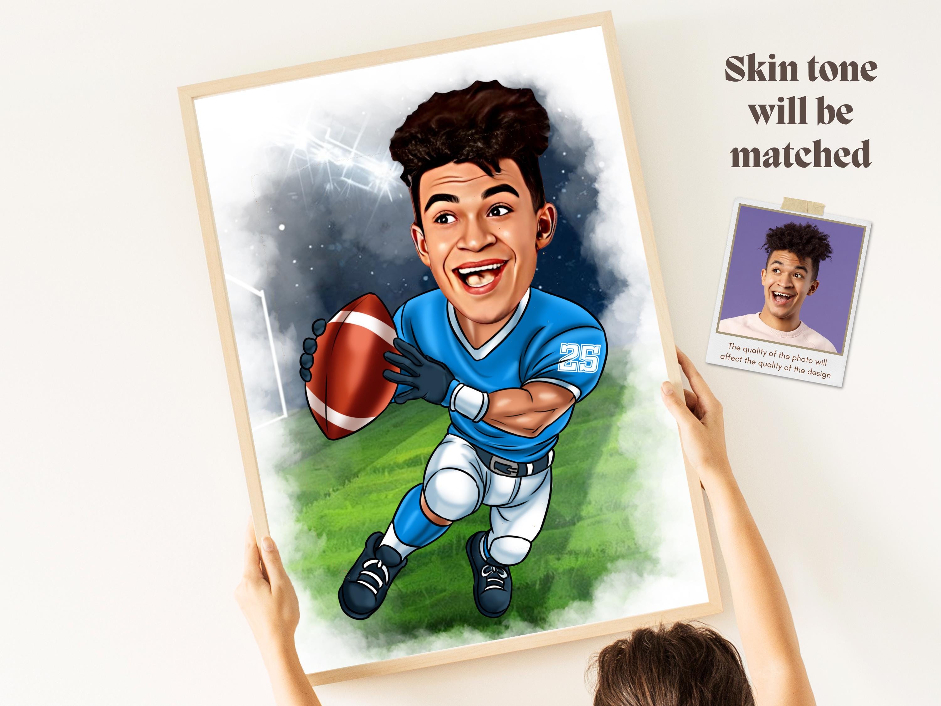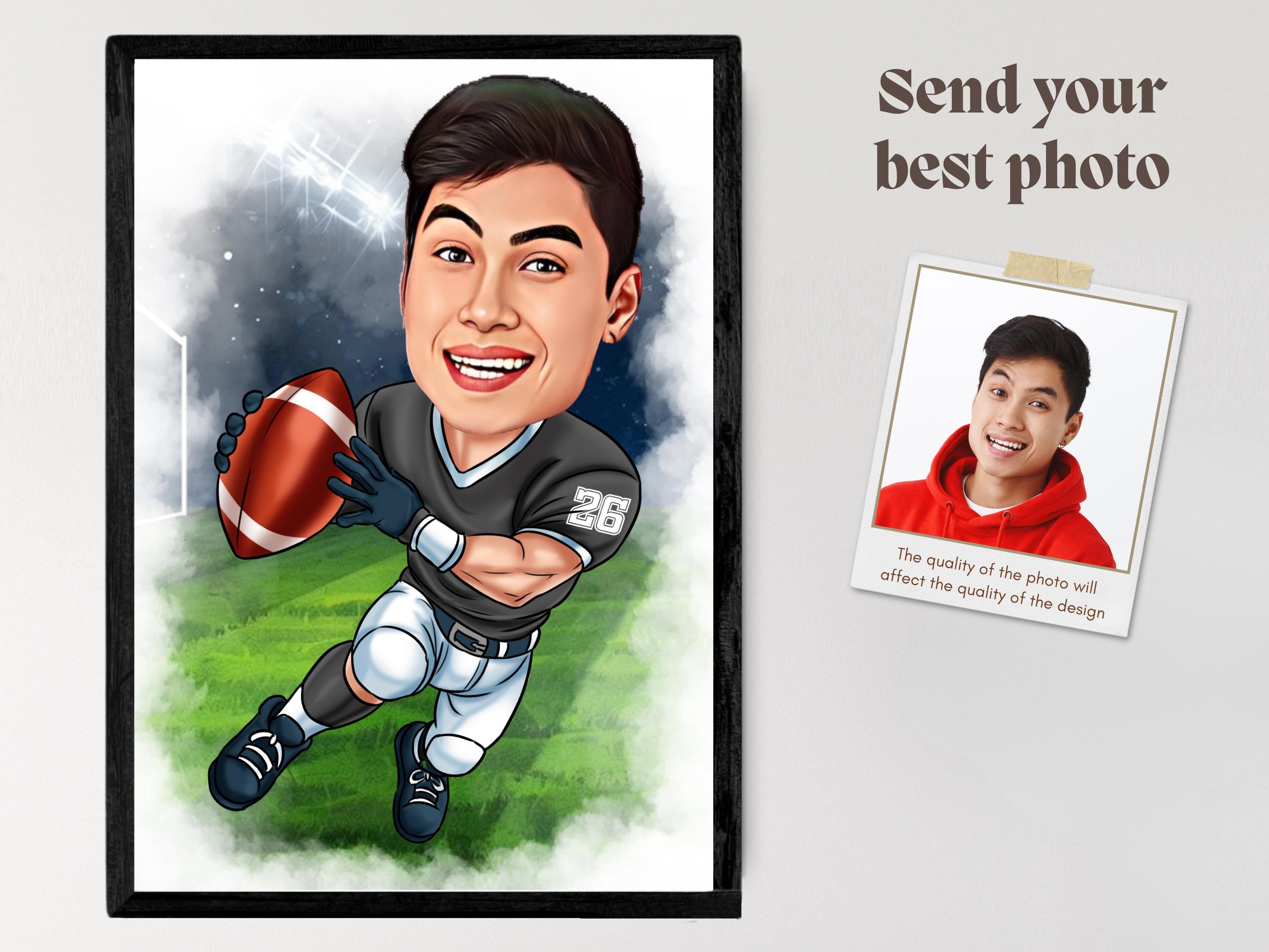 Custom Football Player Caricature Drawing from Photo Personalized