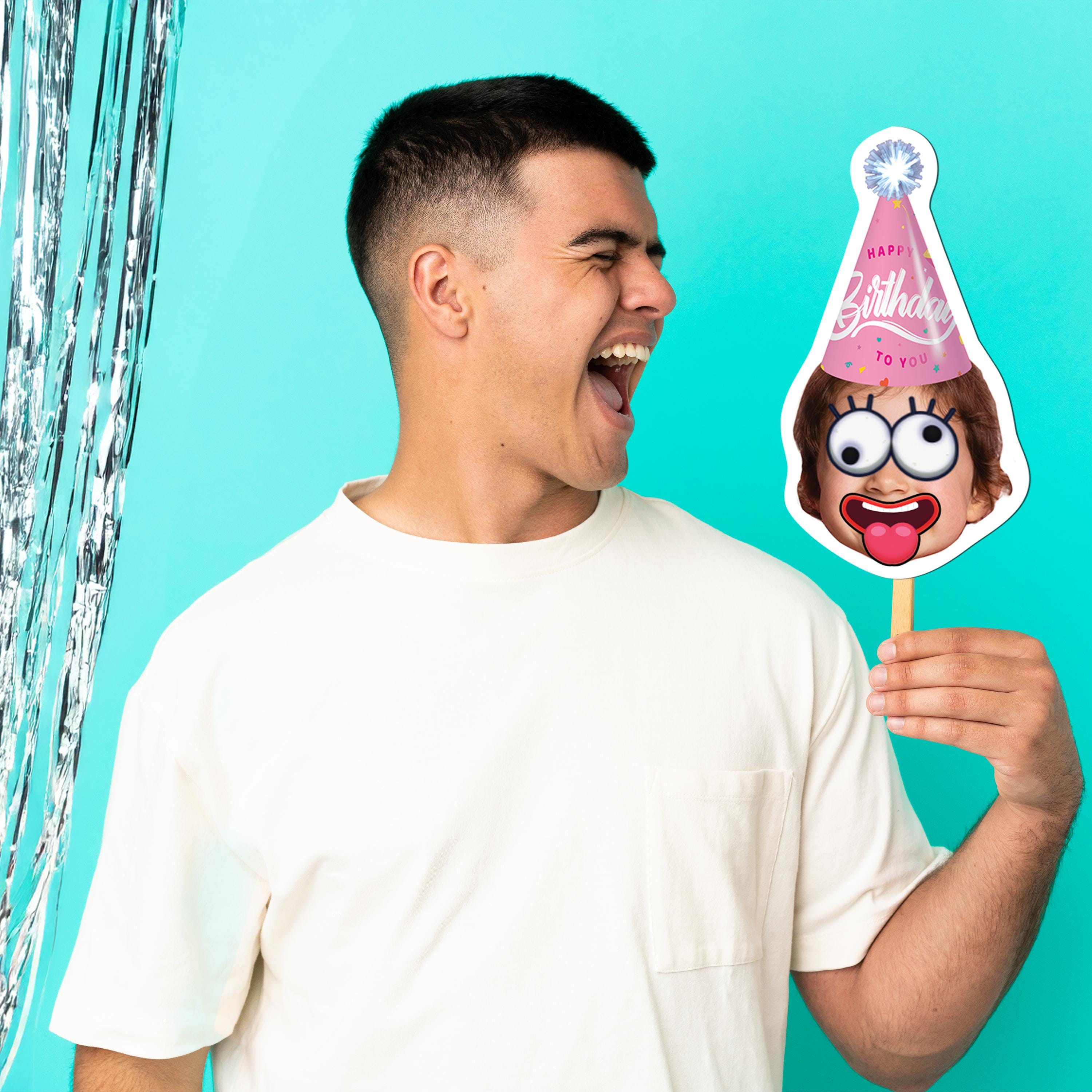Surprise your birthday star with a custom party setup that puts their smiling face front and center! Just imagine the look on their face as they walk into a room filled with decorations featuring their photo, complete with a party hat.