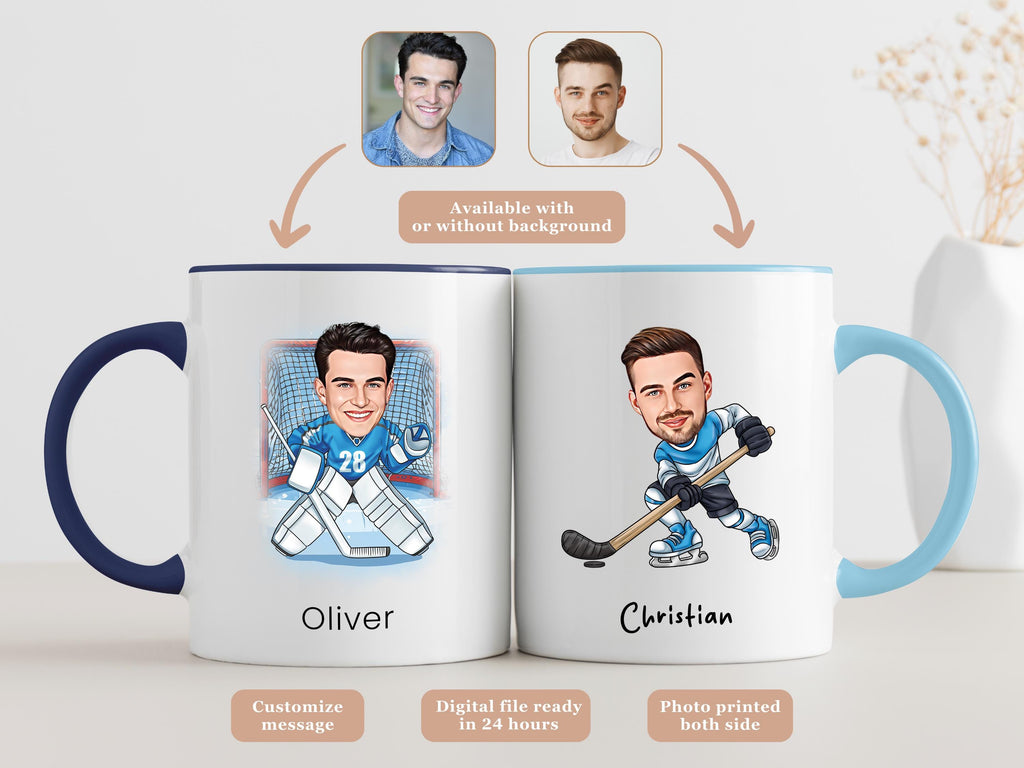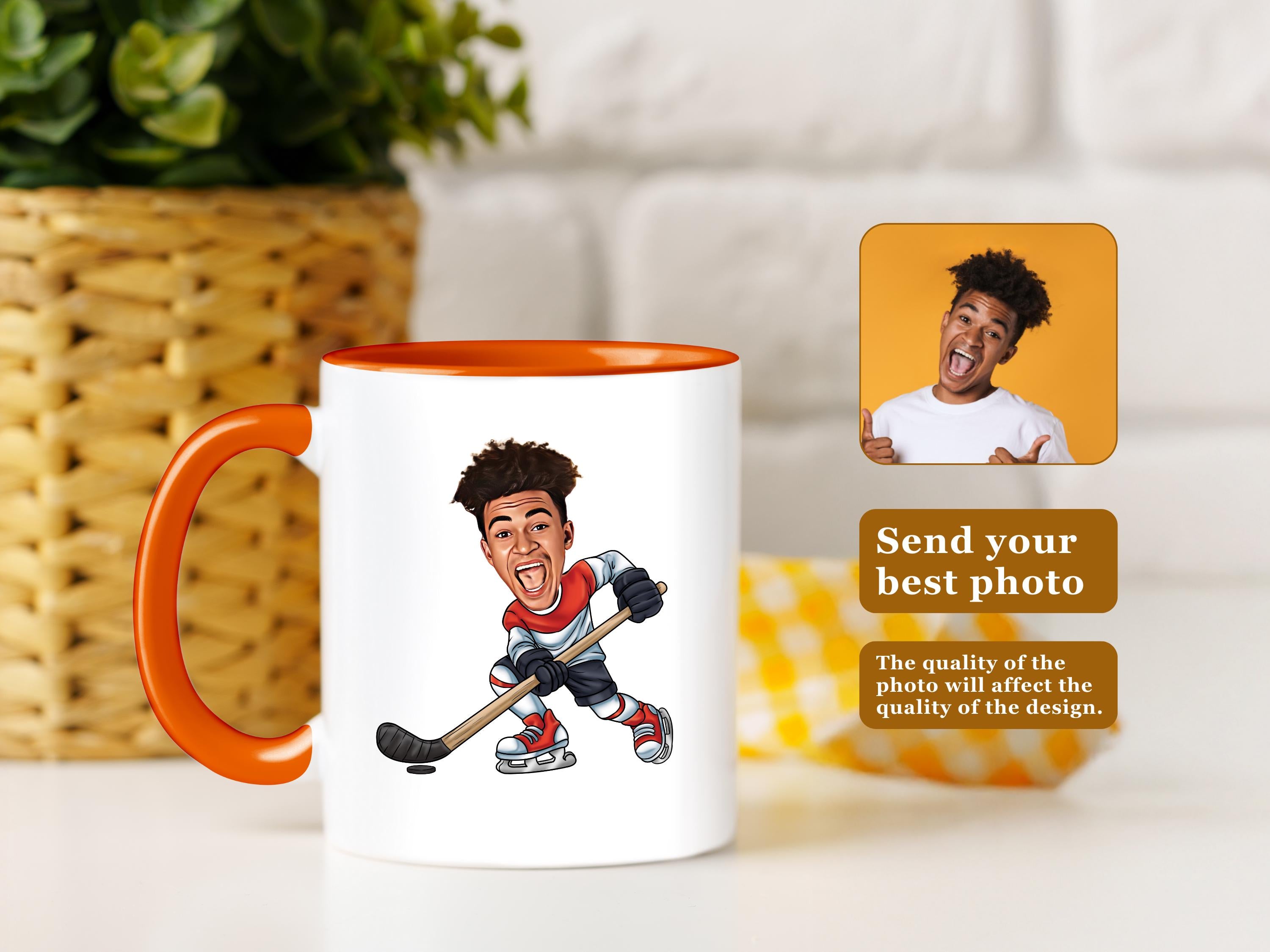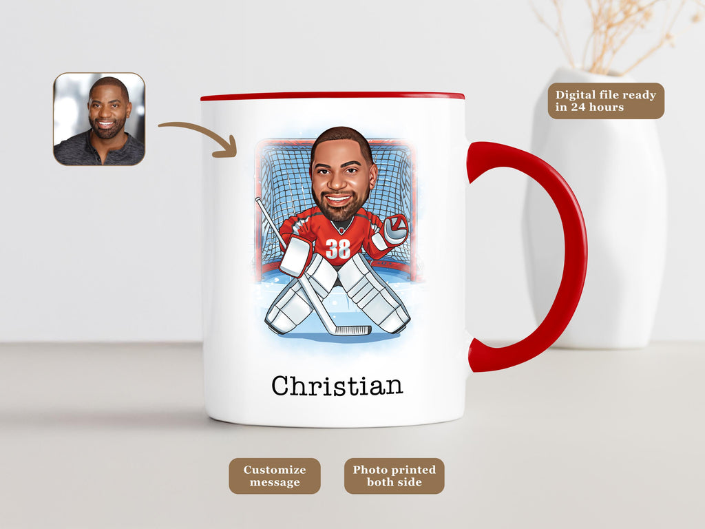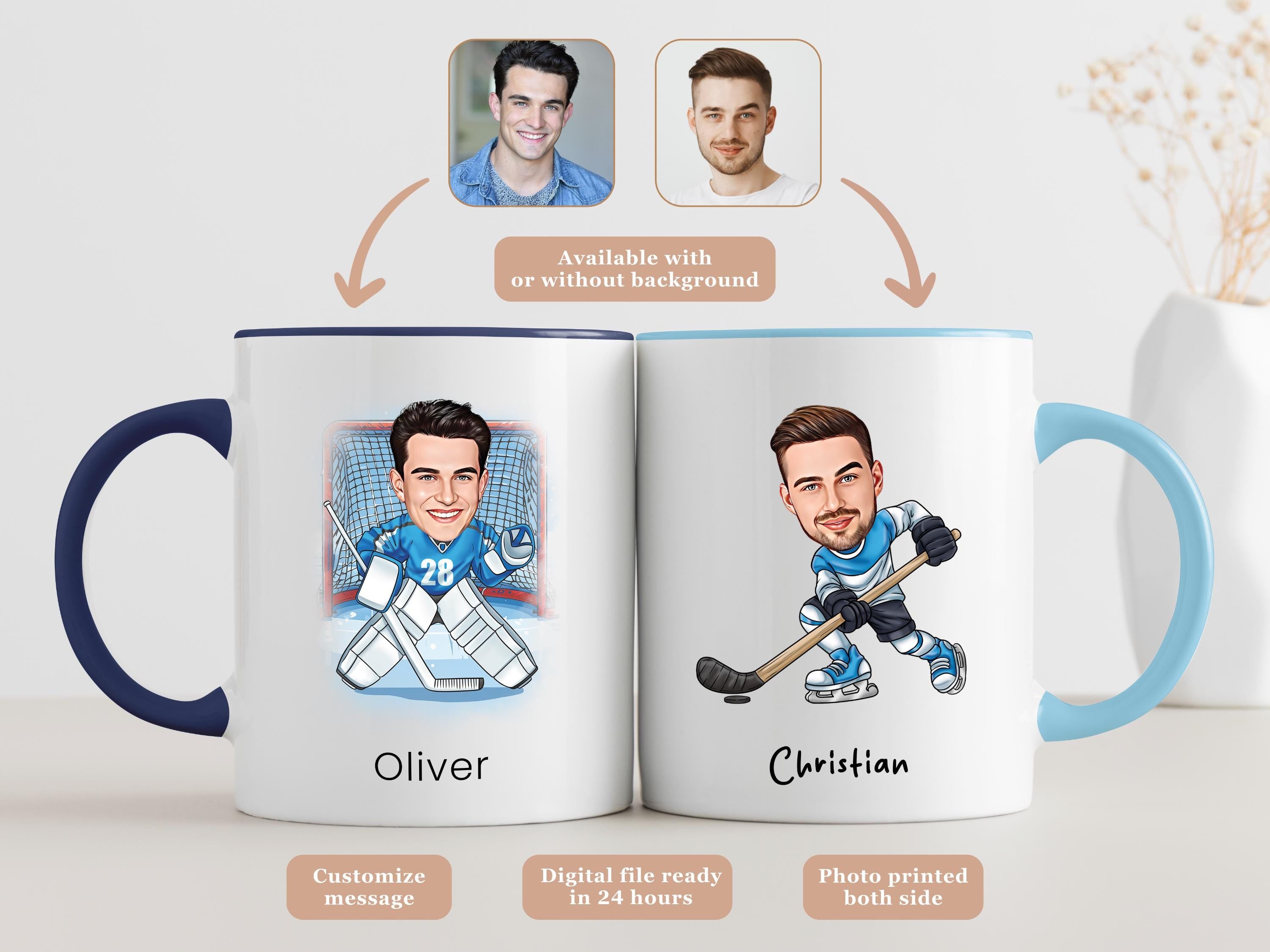 Custom Hockey Player Mug Personalized Cartoon Portrait Gift