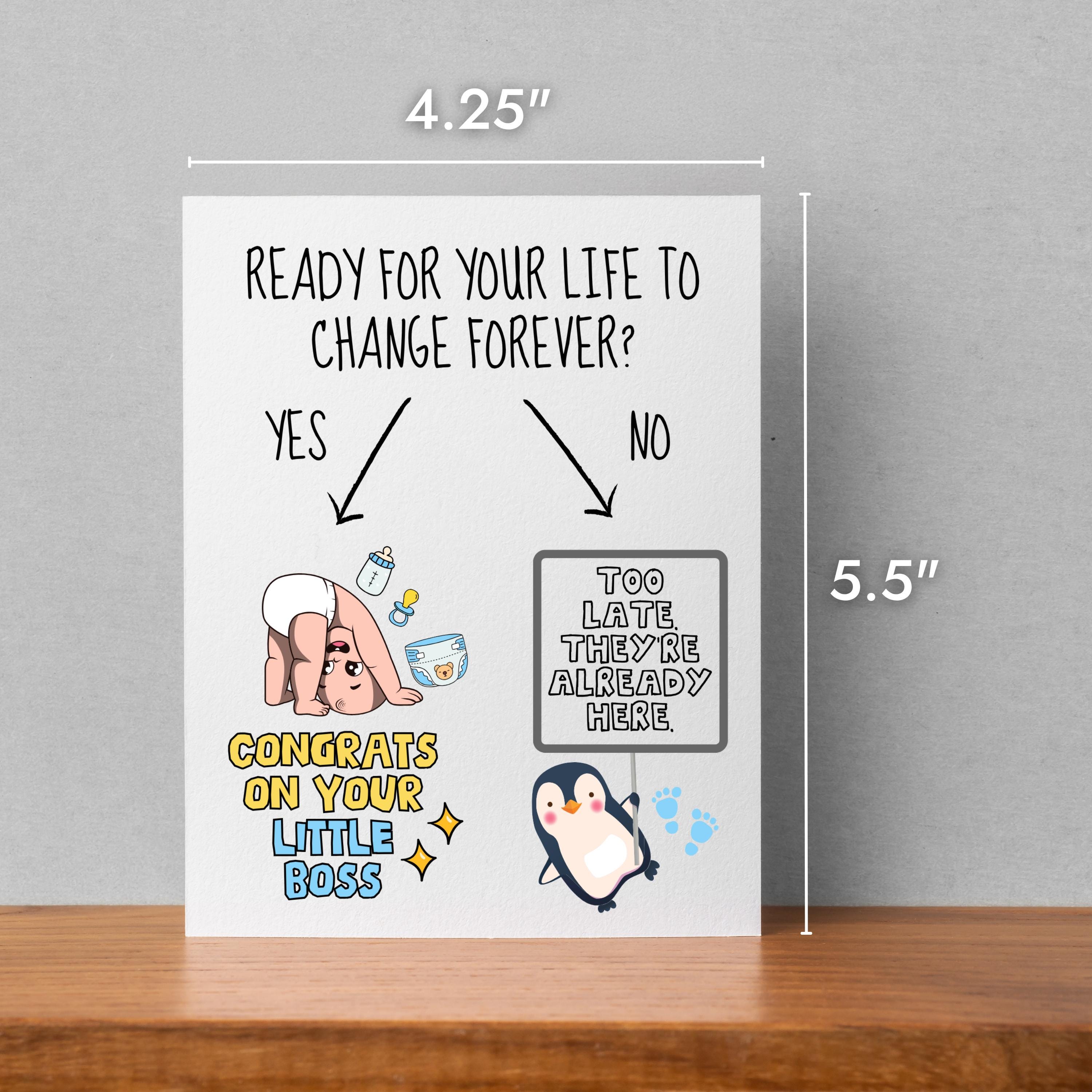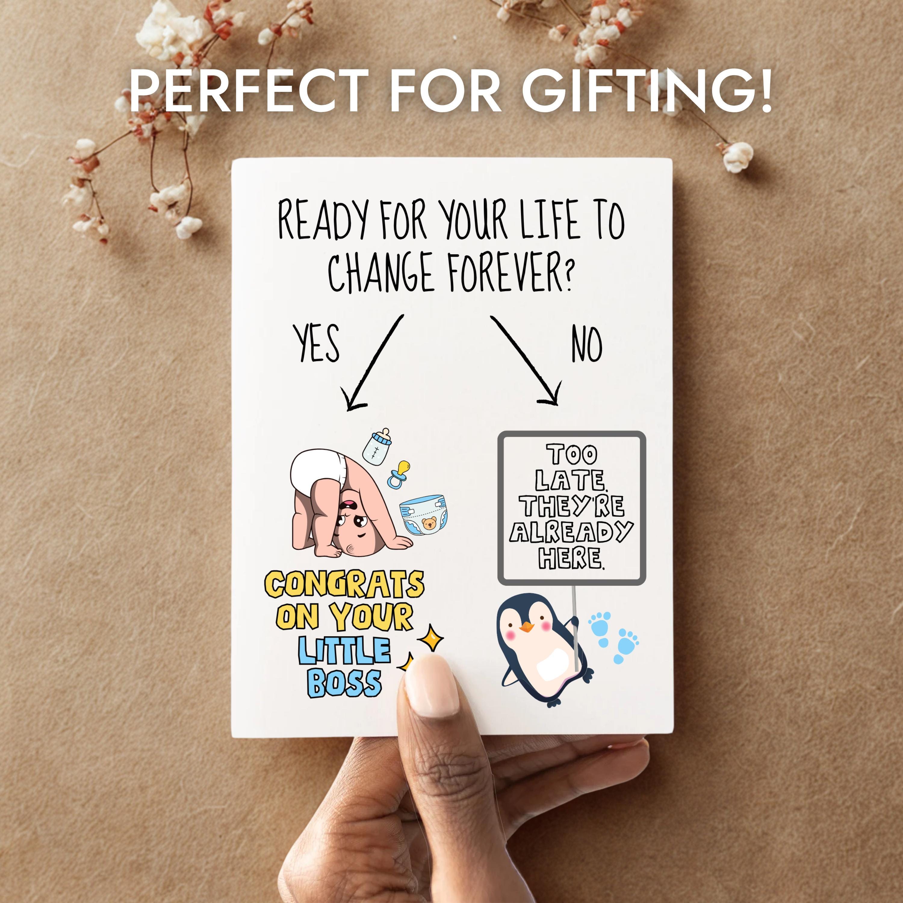 Celebrate the beautiful chaos of becoming new parents with a card that brings laughter along with love! Whether its for a baby shower, pregnancy reveal, or just a sweet surprise for the new mom or dad, this custom greeting card is the perfect mix of humor and heart.