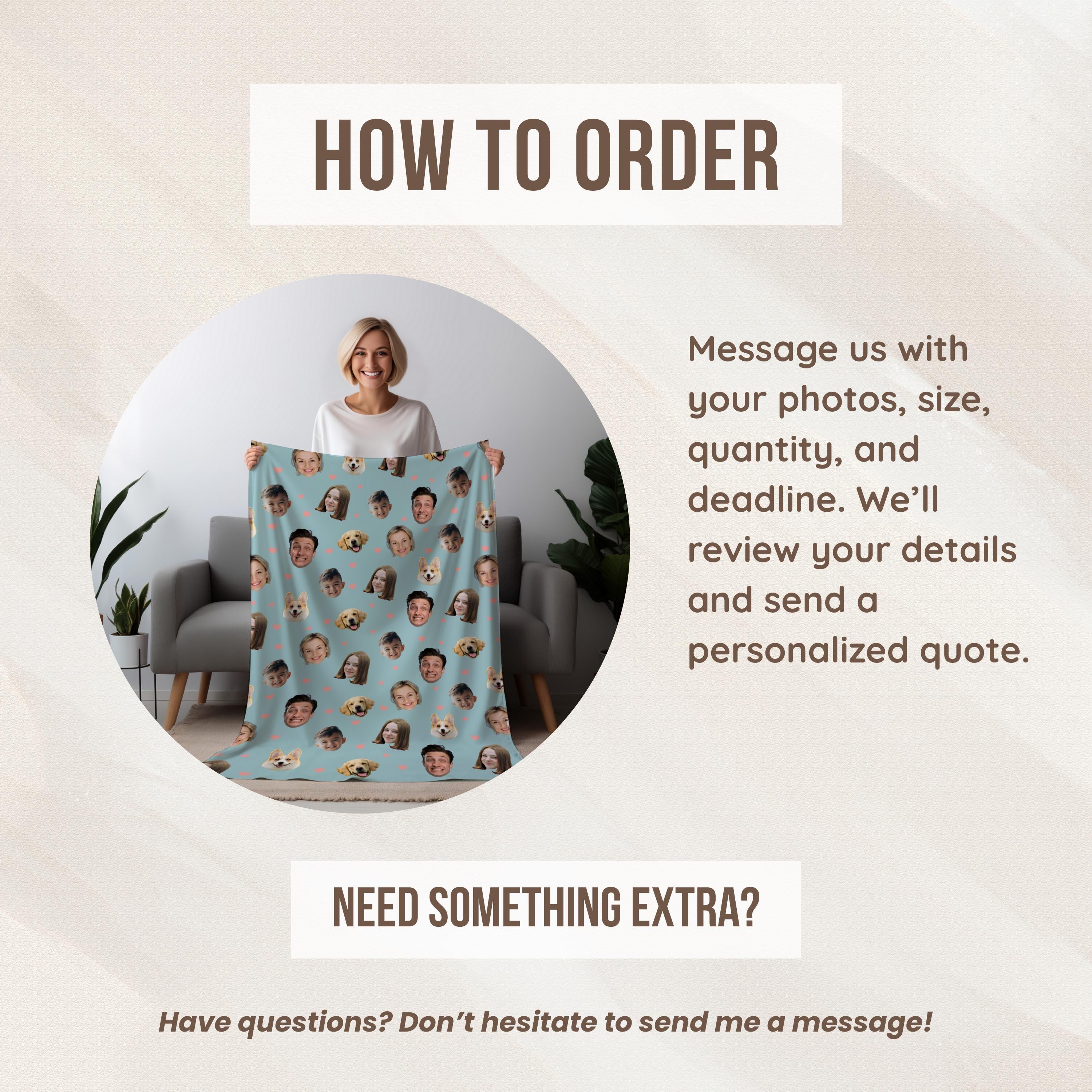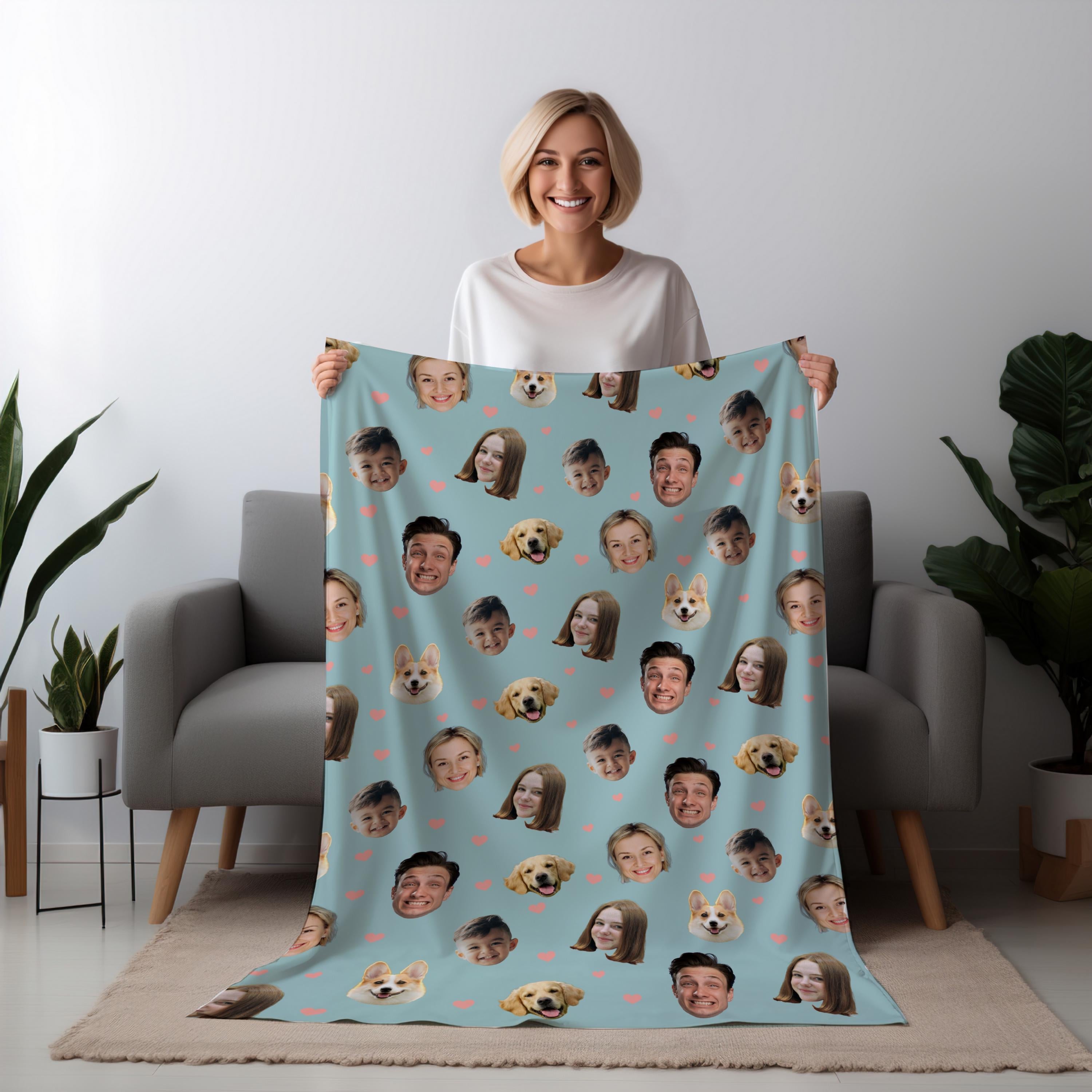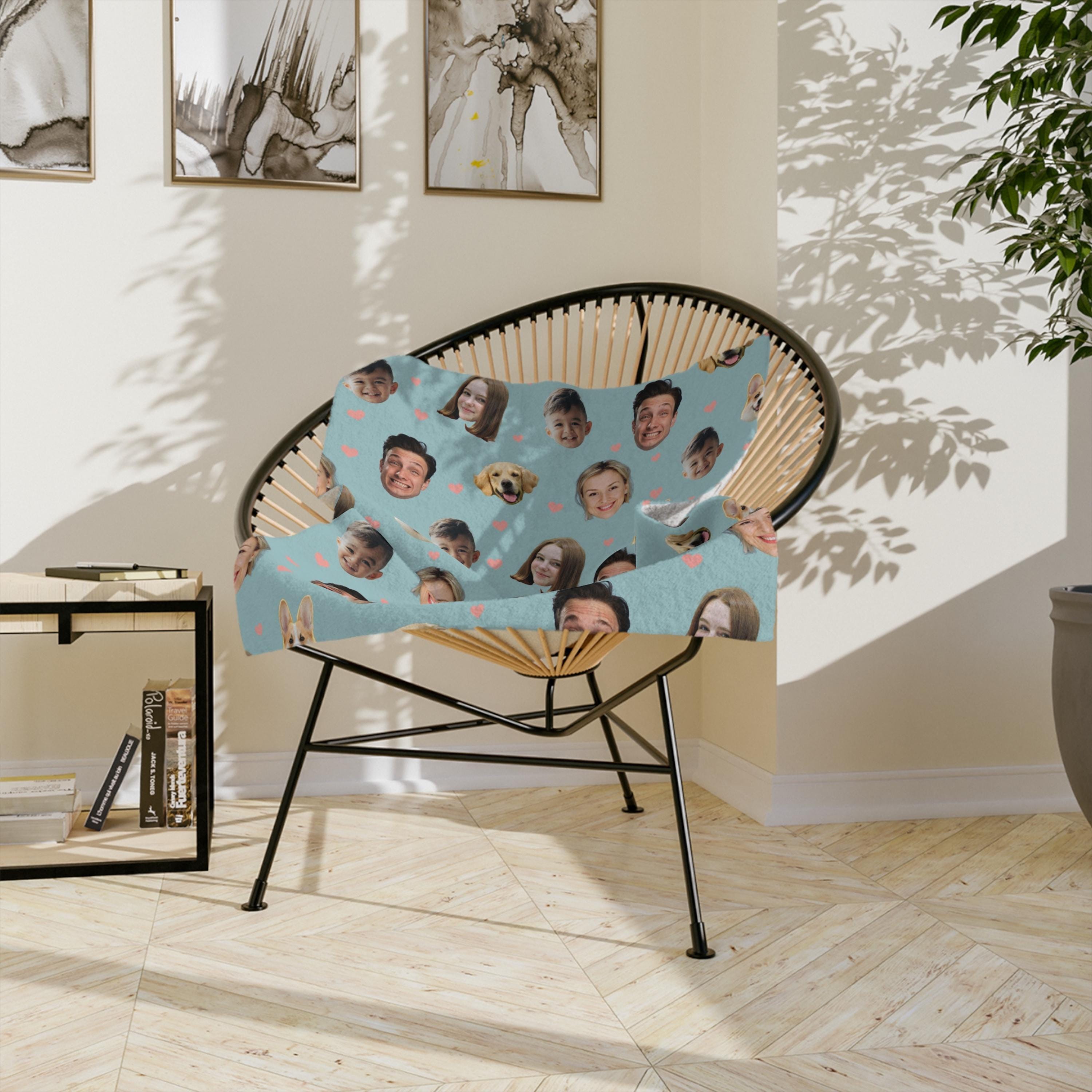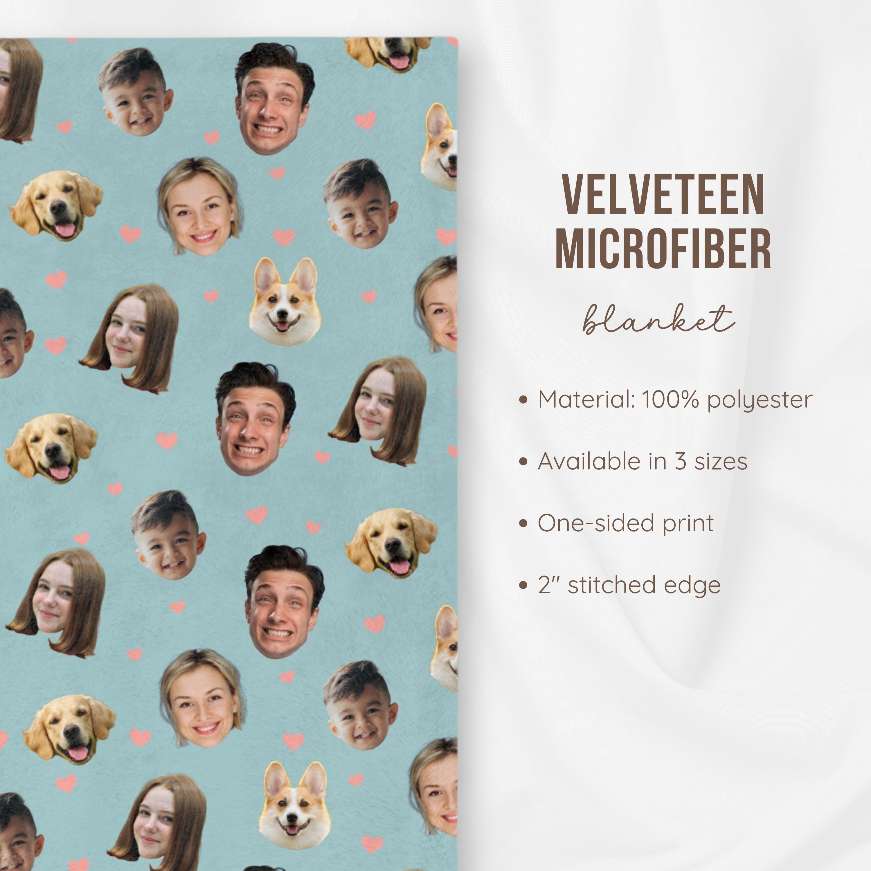 Wrap yourself (or someone special) in memories with our Custom Photo Face Blanket! This cozy, one-of-a-kind blanket features your favorite faces, whether its your partner, pet, family, or friends, printed all over in high-quality detail.