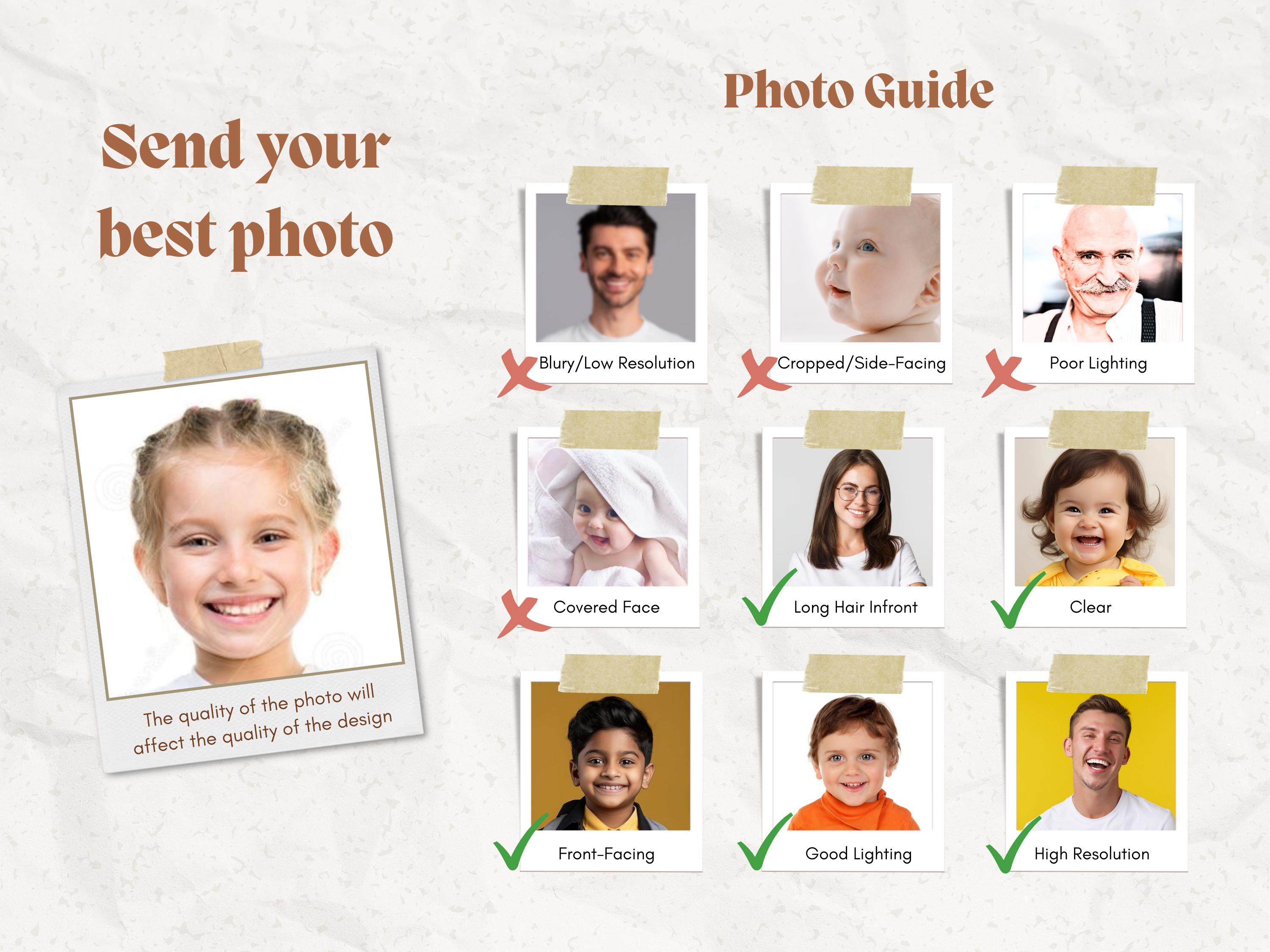 ⚠️ Photo quality directly impacts the final design. For best results, use clear, straight-facing, well-lit images.