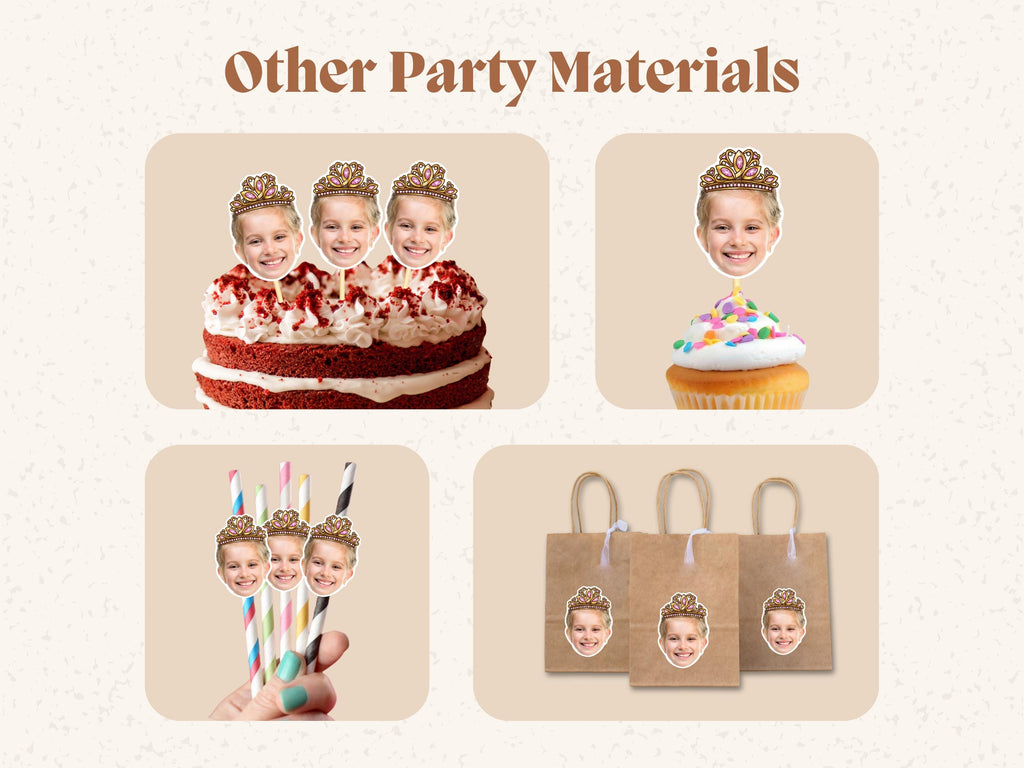 Add a royal touch to your celebration with our Custom Photo Princess Cupcake Toppers! These personalized toppers feature your child's face, creating a magical and unique addition to any princess-themed party.