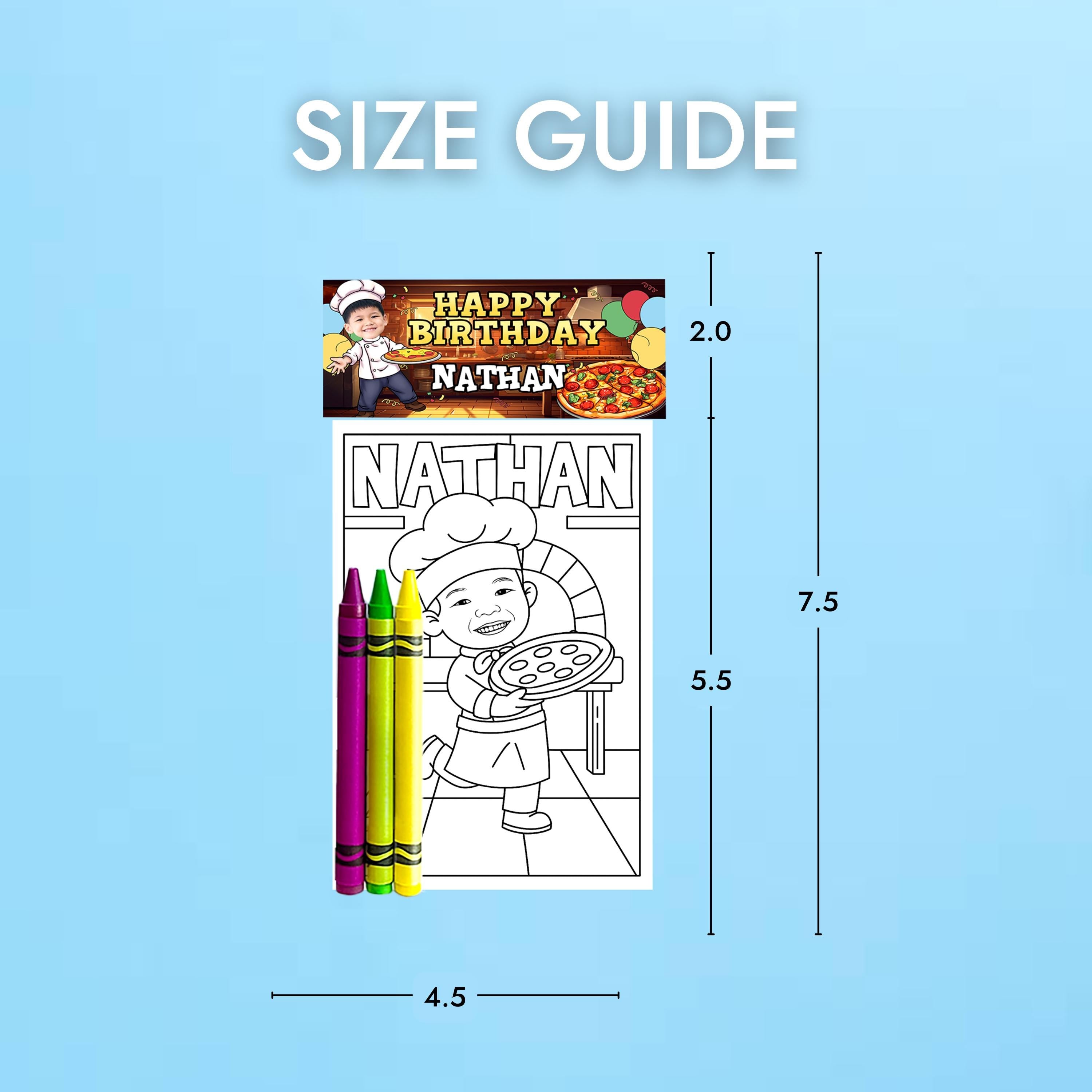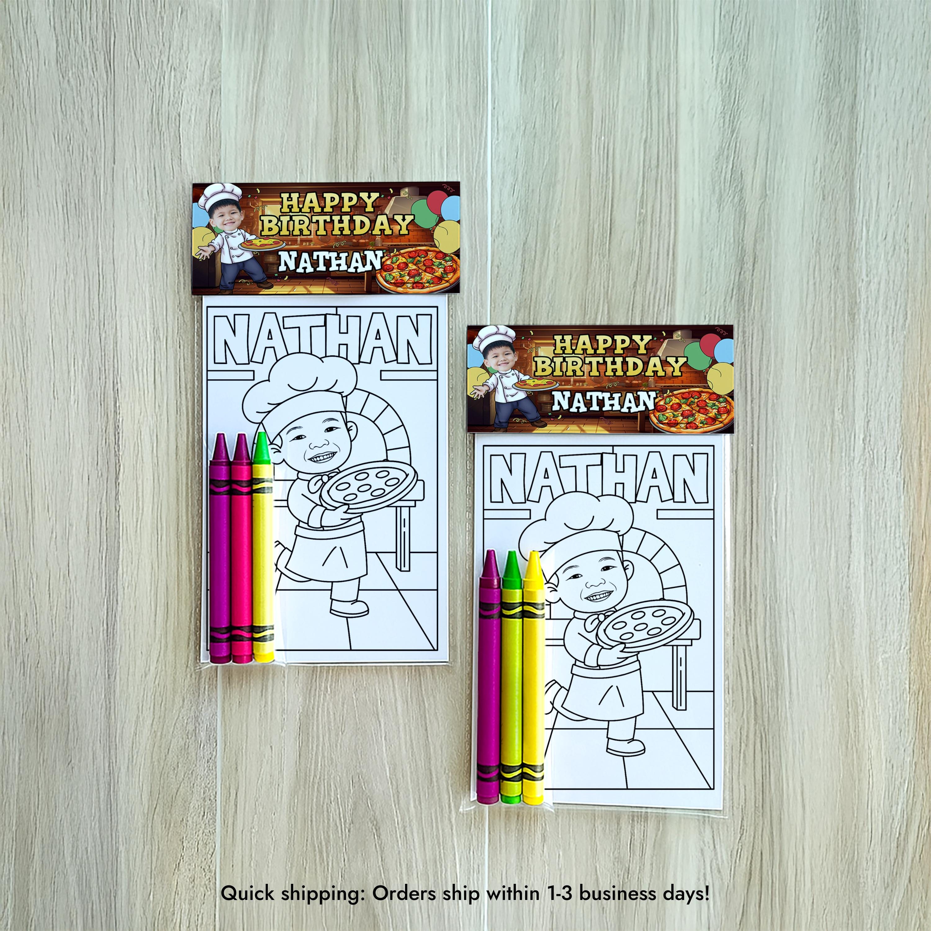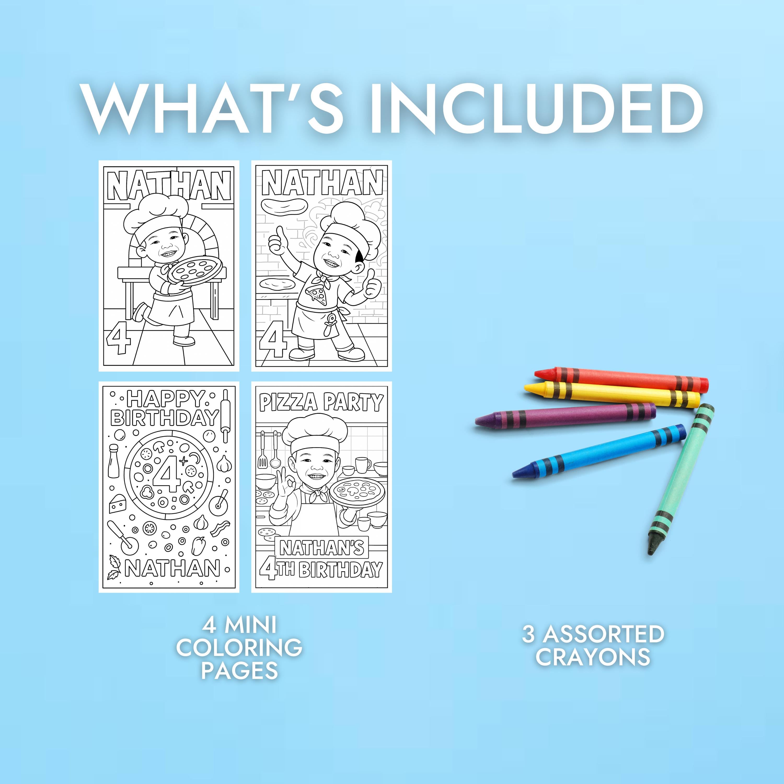 Turn your pizza party into a creative adventure with these Custom Pizza Coloring Pages! Perfect for birthdays, cooking-themed parties, or classroom fun, each sheet is personalized for your little chef and makes an exciting party activity or favor. Material: ✅ Size: 4.25" x 5.5" EACH BAG INCLUDES - 4 mini coloring pages (printed on cardstock paper). - 3 Assorted crayons