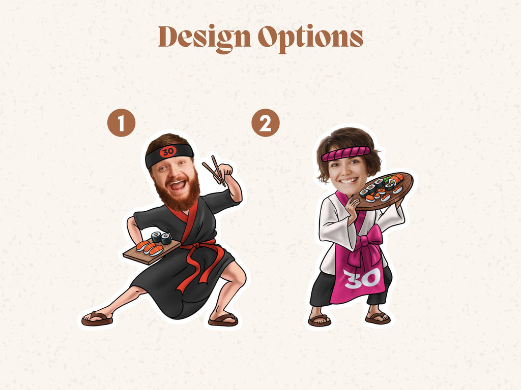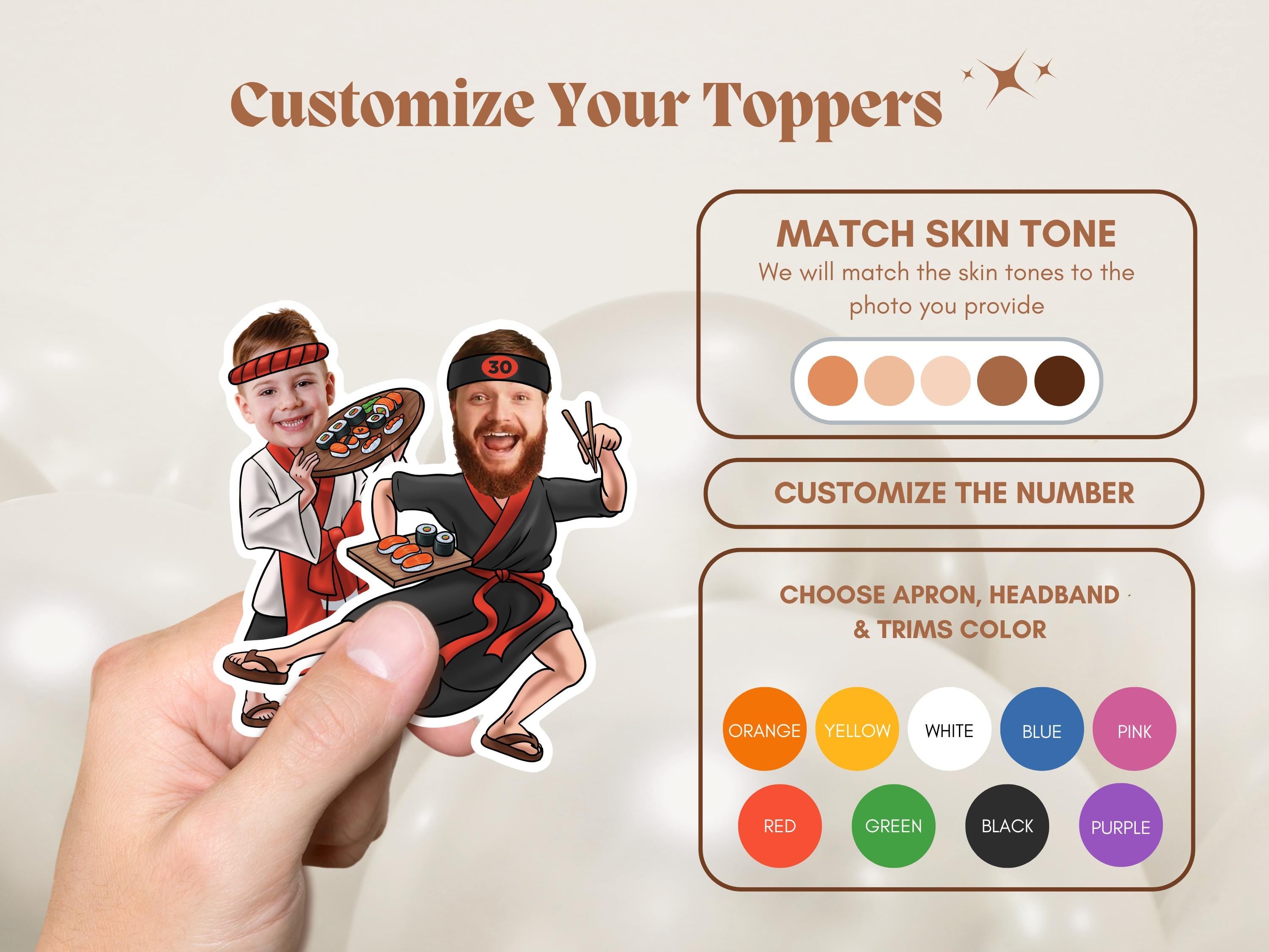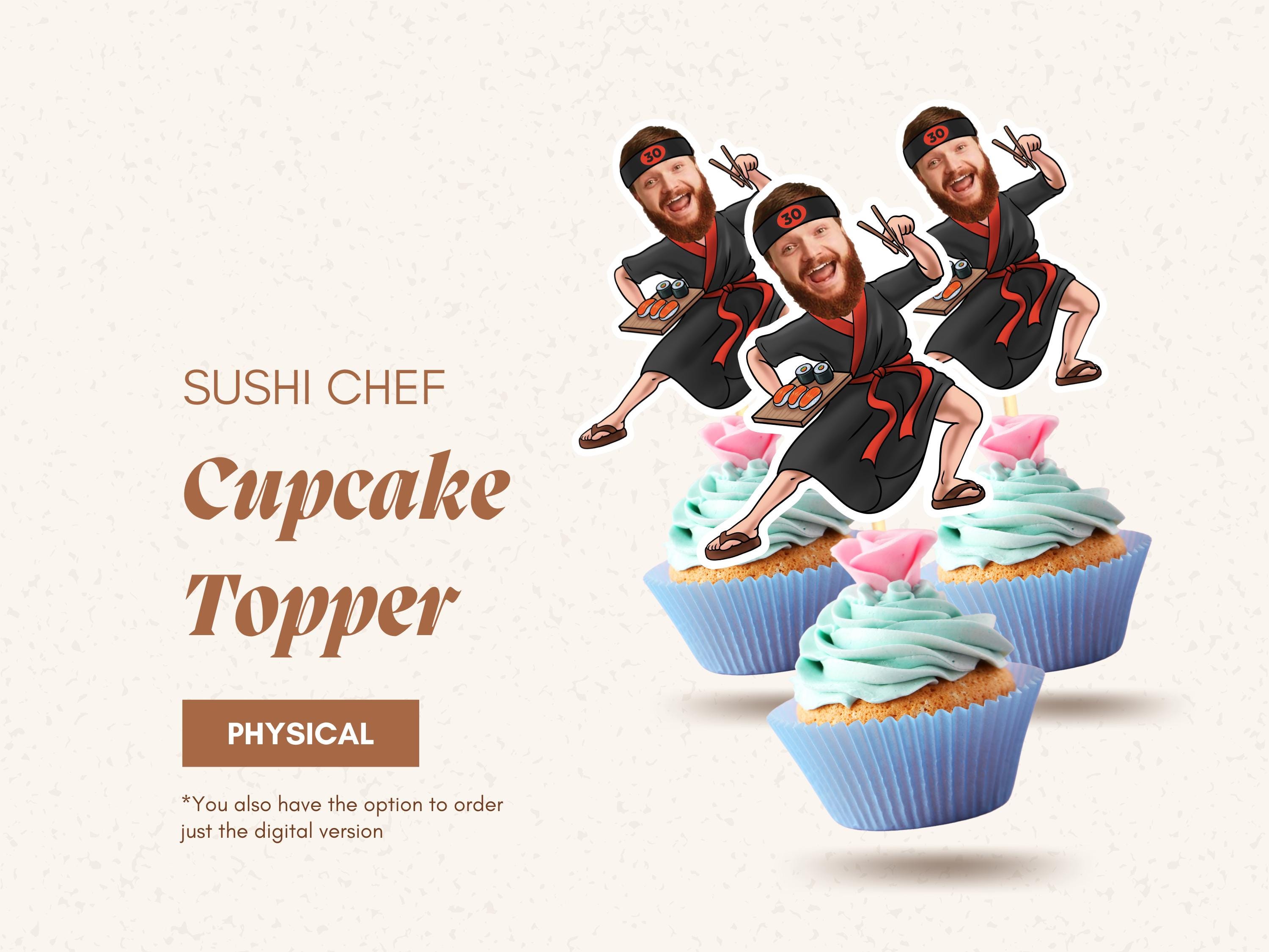 Custom Sushi Chef Cupcake Toppers