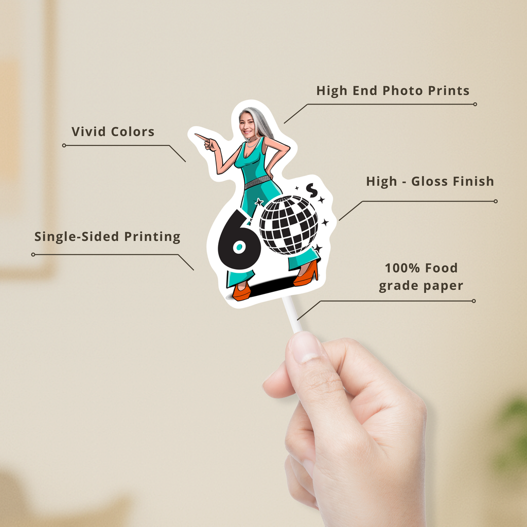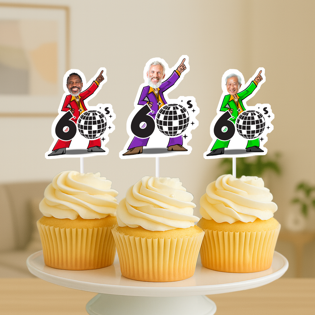 Get ready to boogie with these fabulous Disco Diva and Disco Male Cupcake Toppers the perfect touch for a 60th birthday, jazz dance party, or any retro-themed celebration! These toppers are fully personalized and designed to bring a fun, funky vibe to your cupcakes and dessert table.