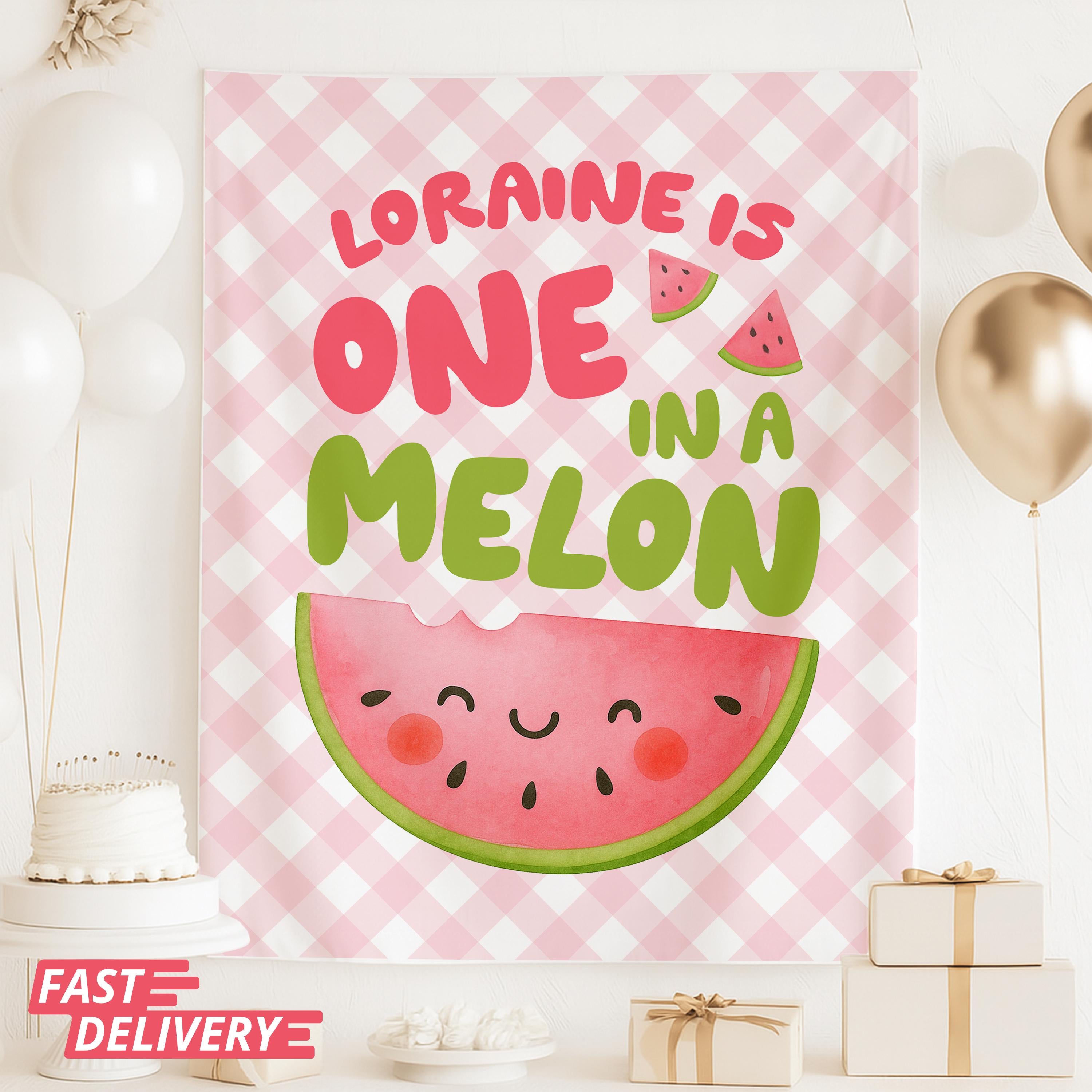 Make your little ones first birthday extra sweet with this One in a Melon watermelon-themed tapestry backdrop! Perfect for cake smash photos, party decorations, and unforgettable memories, this custom backdrop adds a bright, cheerful touch to your celebration.