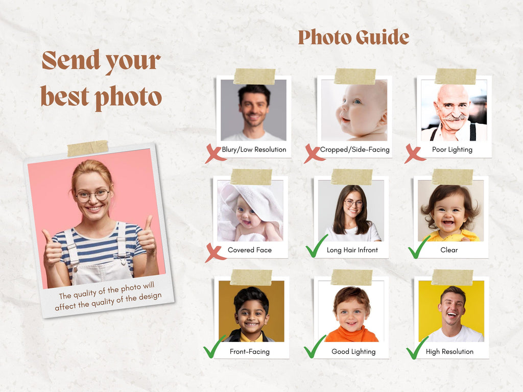 ⚠️ Photo quality directly impacts the final design. For best results, use clear, straight-facing, well-lit images.