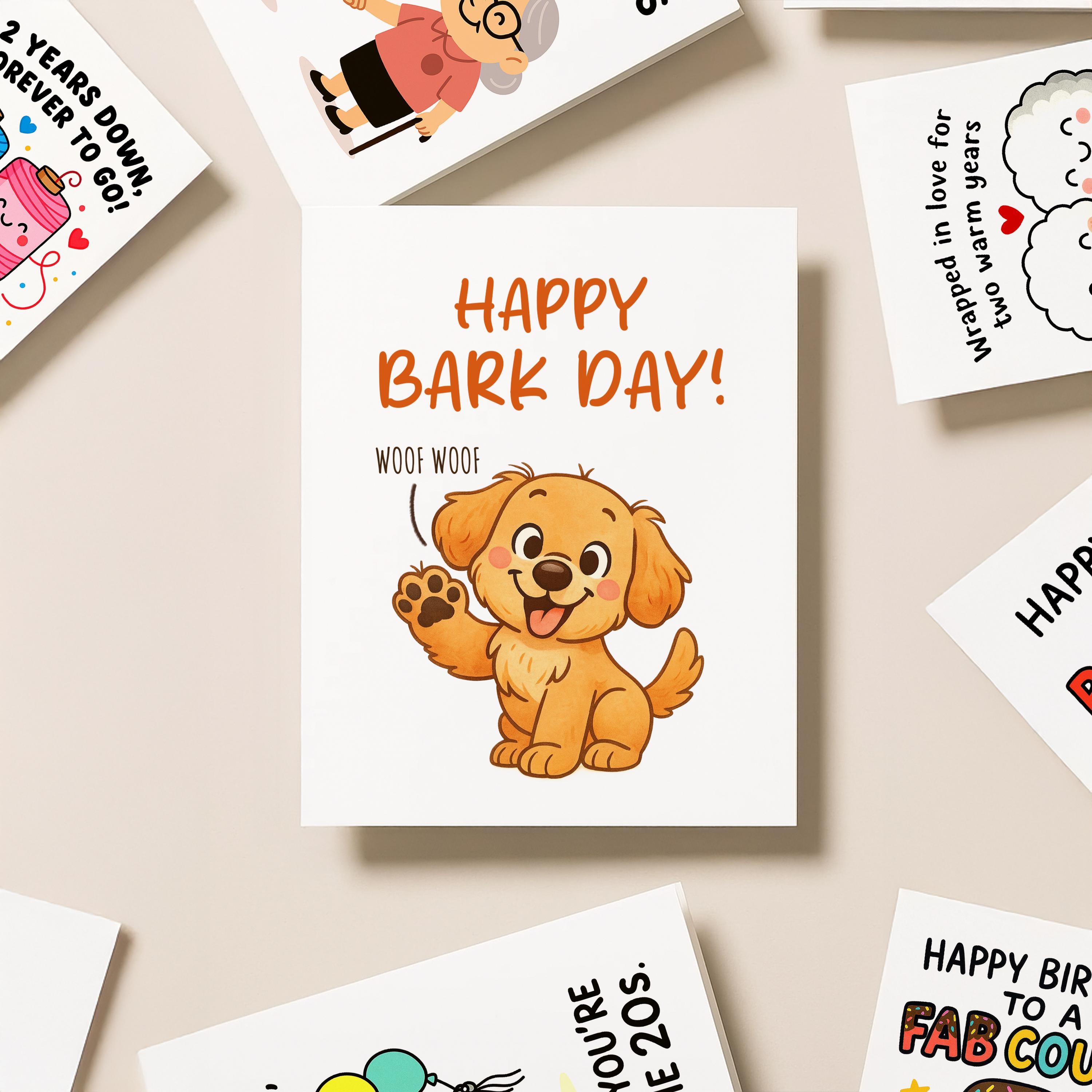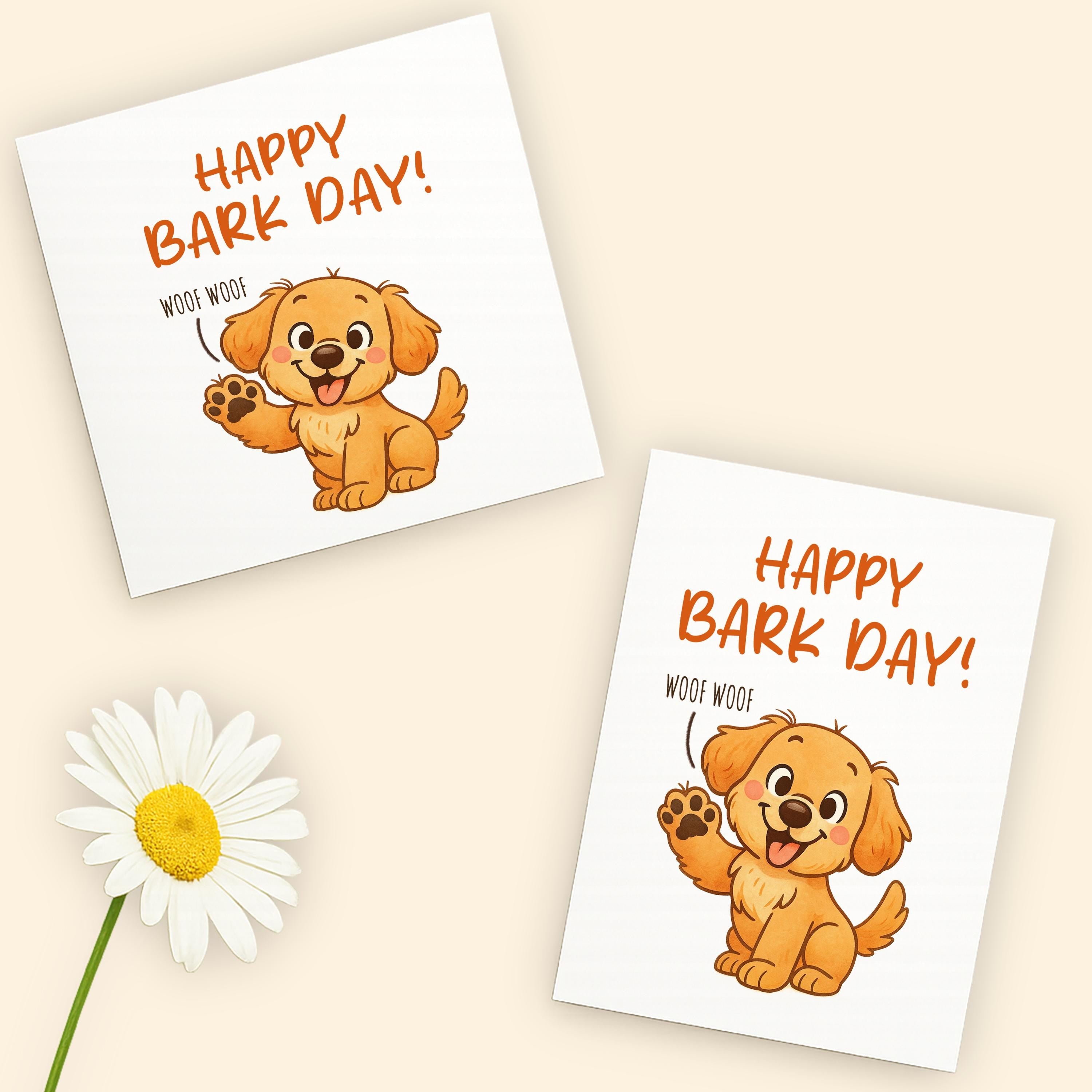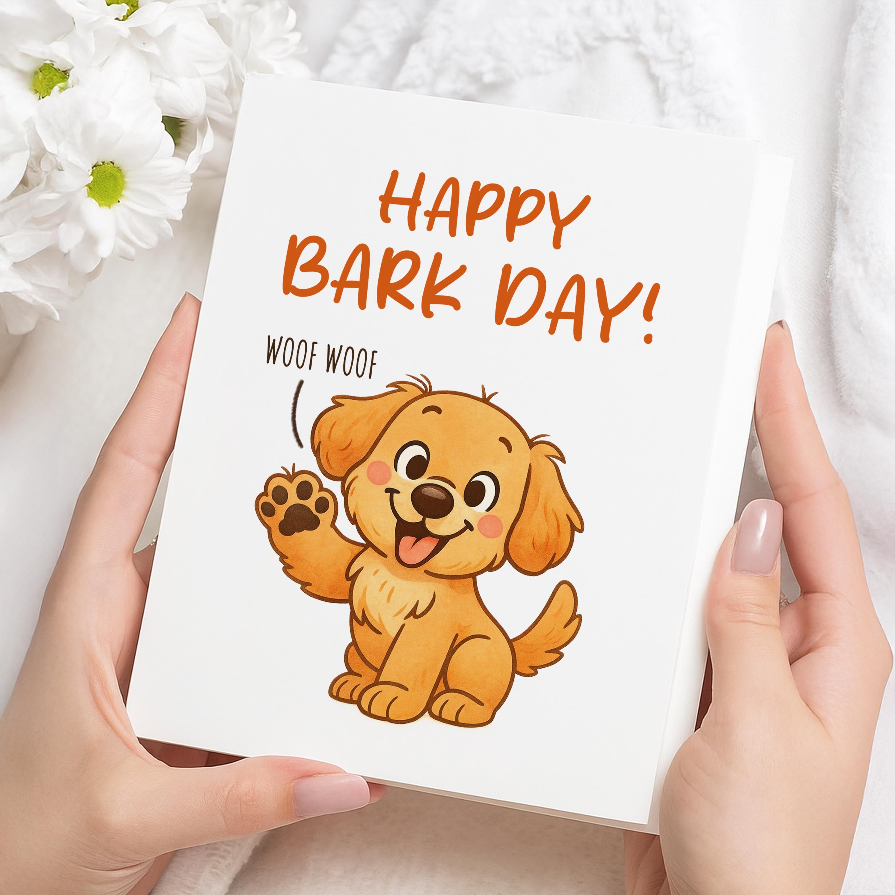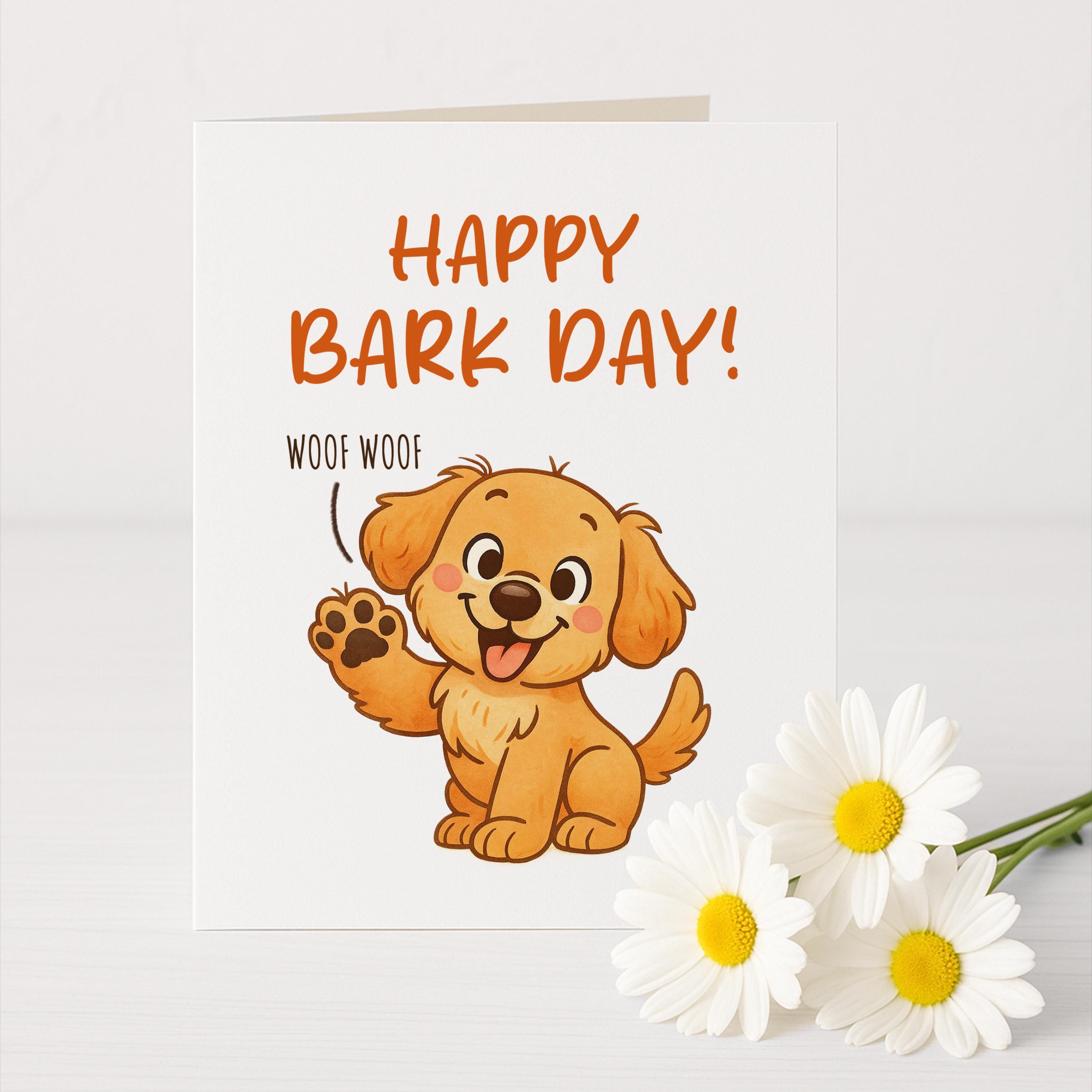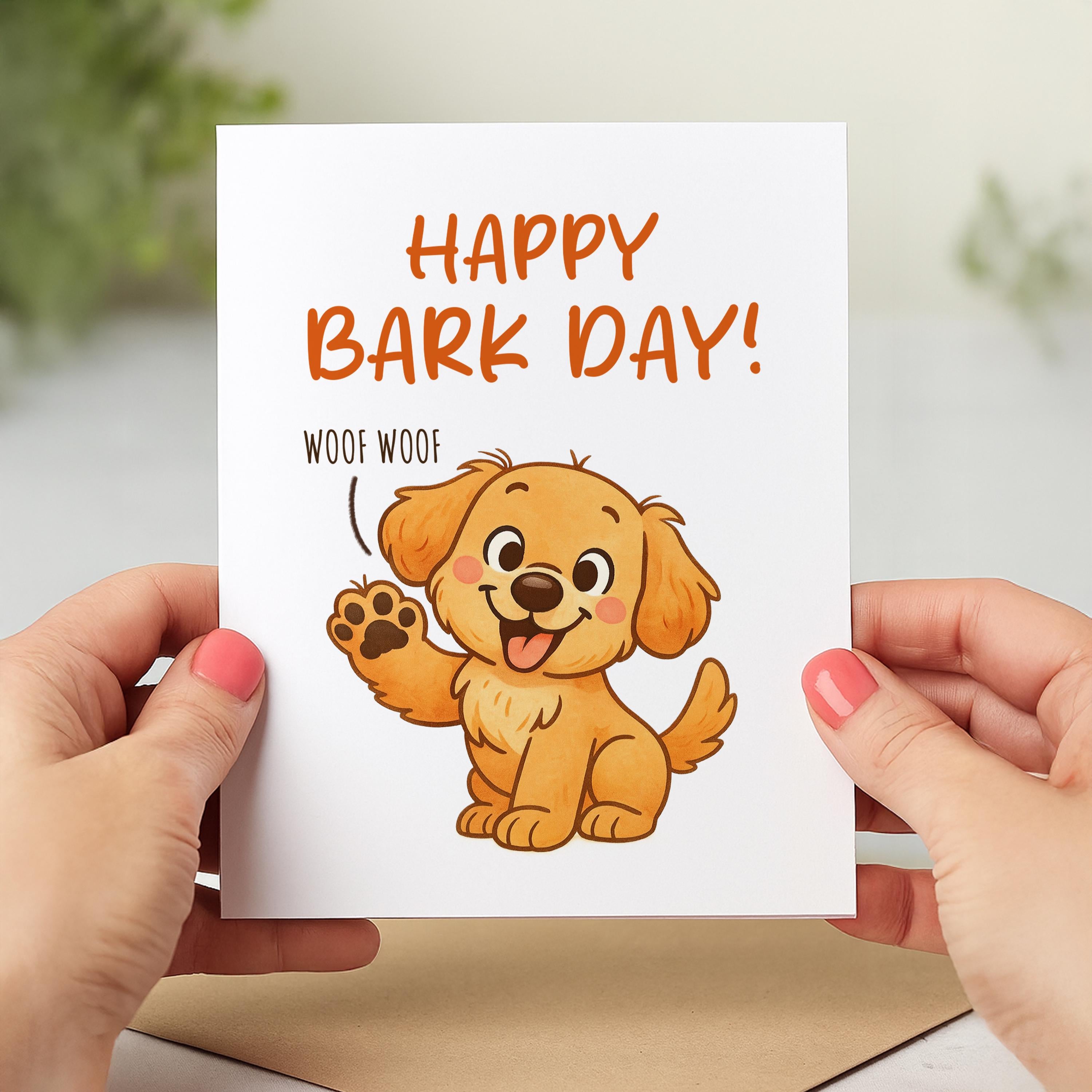 Celebrate a special birthday with this funny dog greeting card! Featuring a cute puppy and Happy Bark Day design, its great for pet lovers, dog moms, dog dads, and pet parents. Material: A2 self-seal envelopes Heavyweight Folded Cardstock 100% acid-free Size: 4.25" x 5.5"