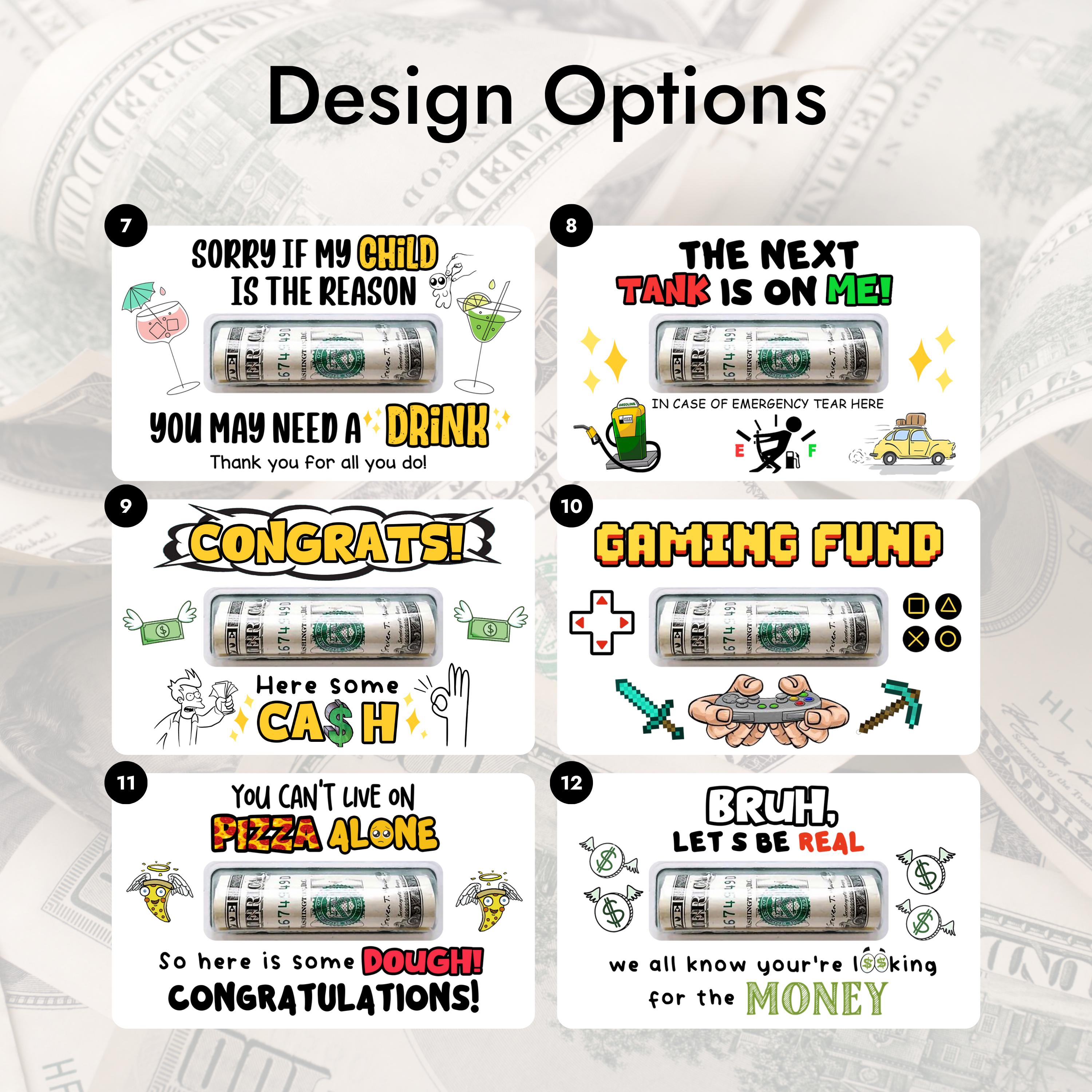 Make gift-giving fun with our Funny Money Holder, the perfect way to give cash or gift cards for any occasion! Whether its for a teens birthday, a holiday surprise, or a graduation celebration, this quirky card will get laughs before they even open it. Material: ✅ Printed on thick, premium cardstock ✅ Includes one 3.2" x 5.3" one-sided card (blank white back for your message) ✅ Comes with one self-adhesive plastic pouch sized to hold folded cash (lip balm-style shape)