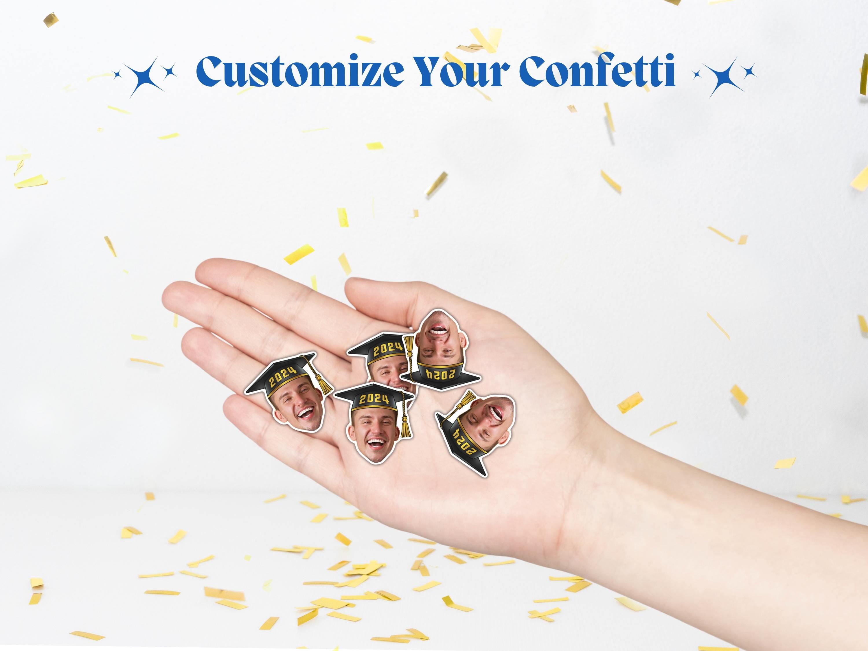 Celebrate the graduate in style with Personalized Graduation Face Confetti! Perfect for graduation parties, this custom confetti features the graduates face, adding a unique and fun element to your decor.