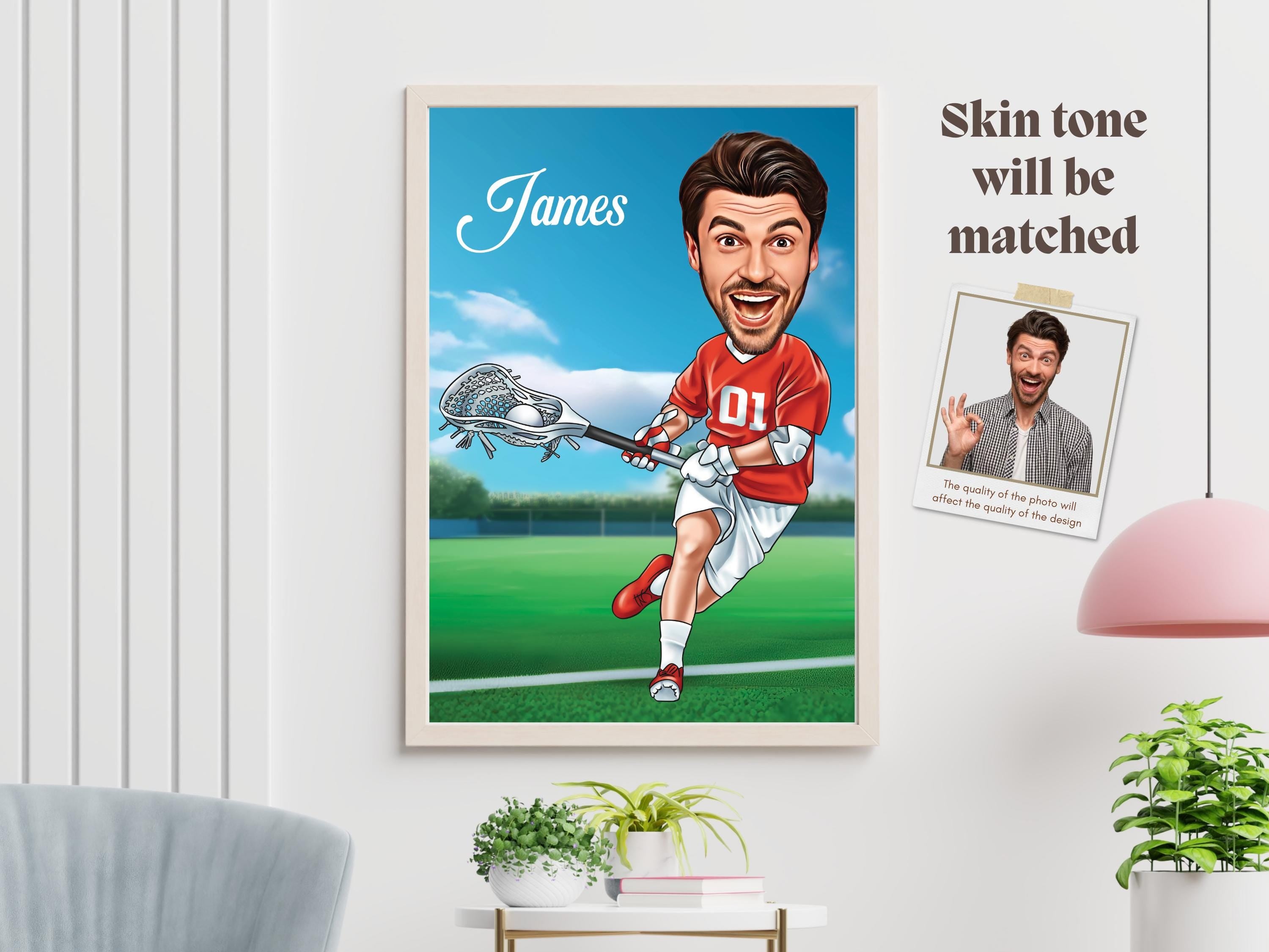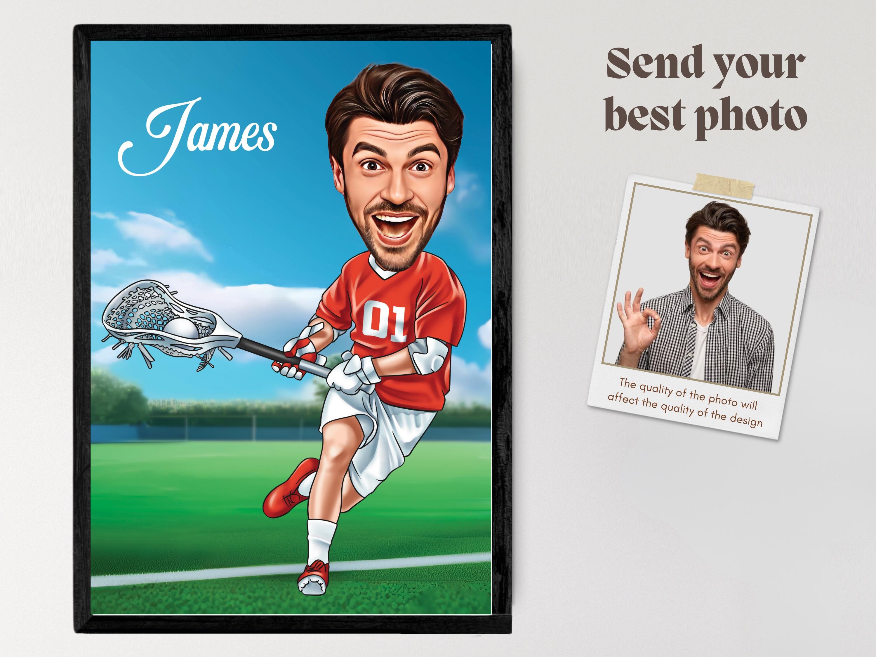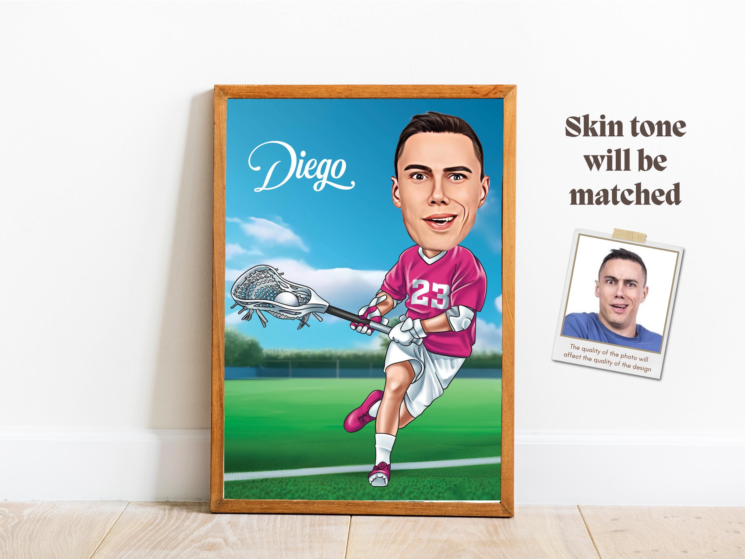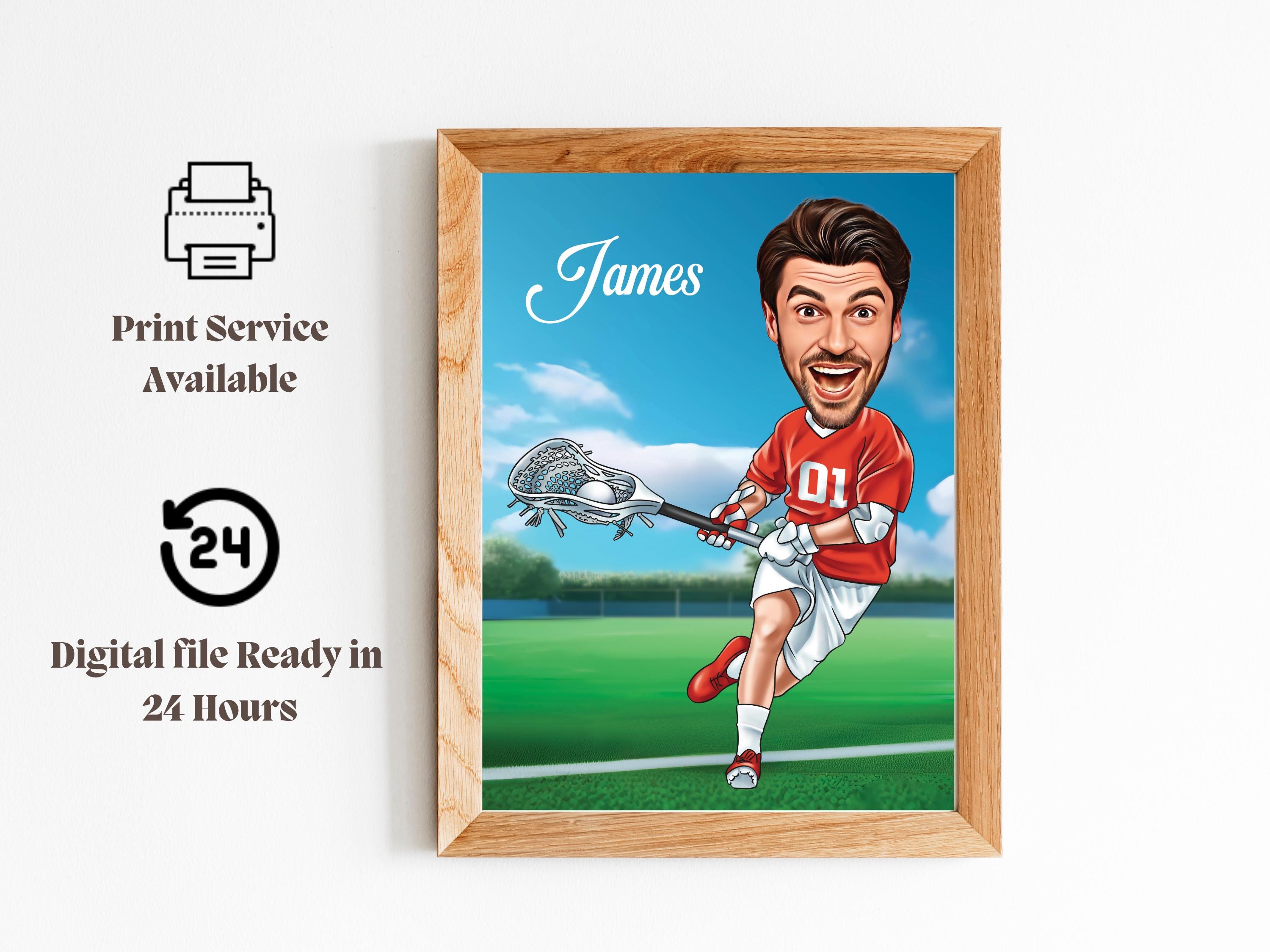 Celebrate the passion for lacrosse with a custom caricature! This personalized cartoon portrait is the perfect gift for lacrosse players, fans, and enthusiasts. Material: ✅ Poster: Professionally printed on 170 gsm matte paper. ✅ Poster Sizes: 5x7", 8x10", 11x14", 12x16", 18x24", and 24x36" ✅ Framed Poster: Professionally printed on 170 gsm uncoated classic matte paper. ✅ Frame Material: Durable pine wood. ✅ Frame Colors: Black, white (smooth), natural/wood, or dark brown wood (visible grain). ✅ Frame Sizes: 12x16" and 18x24"