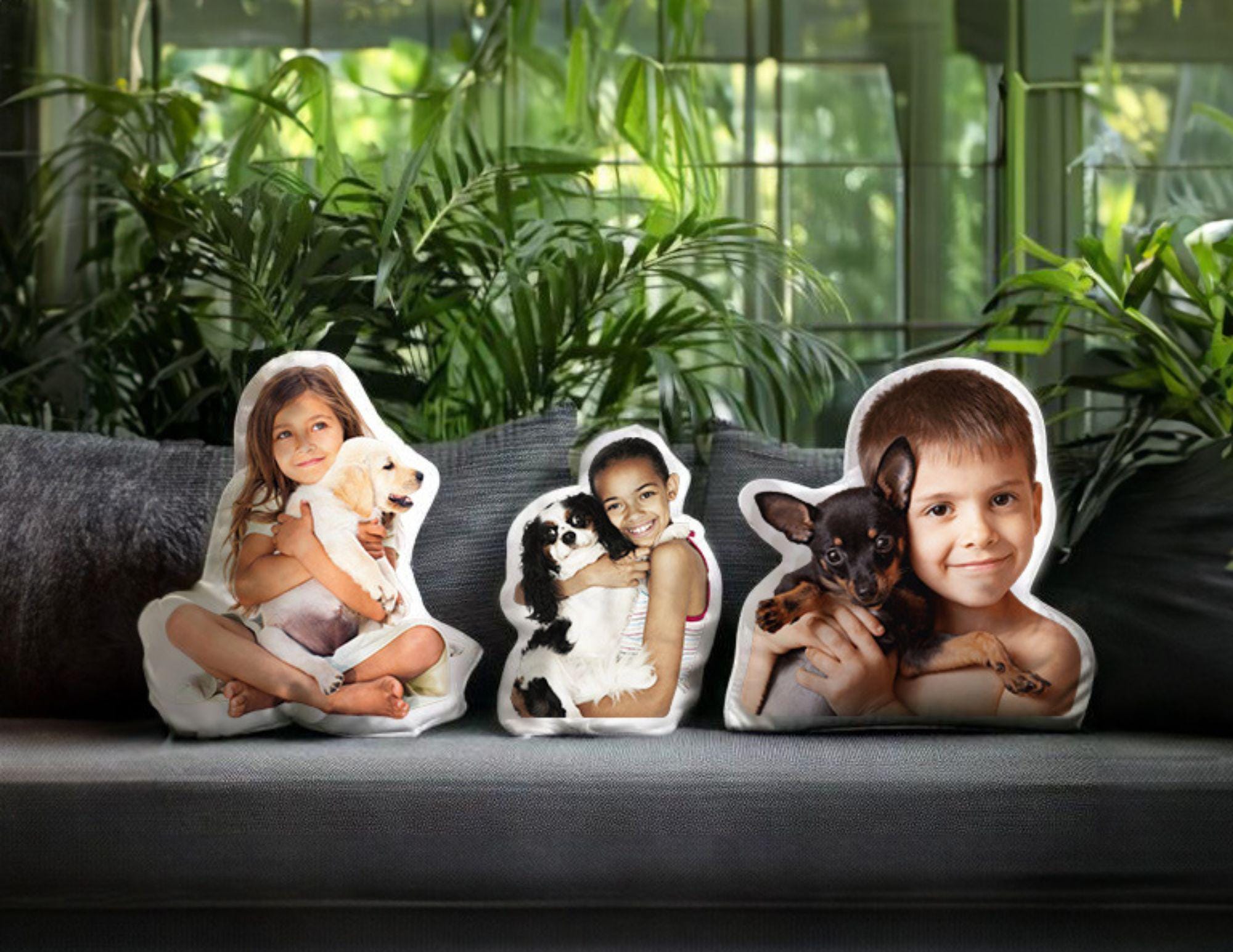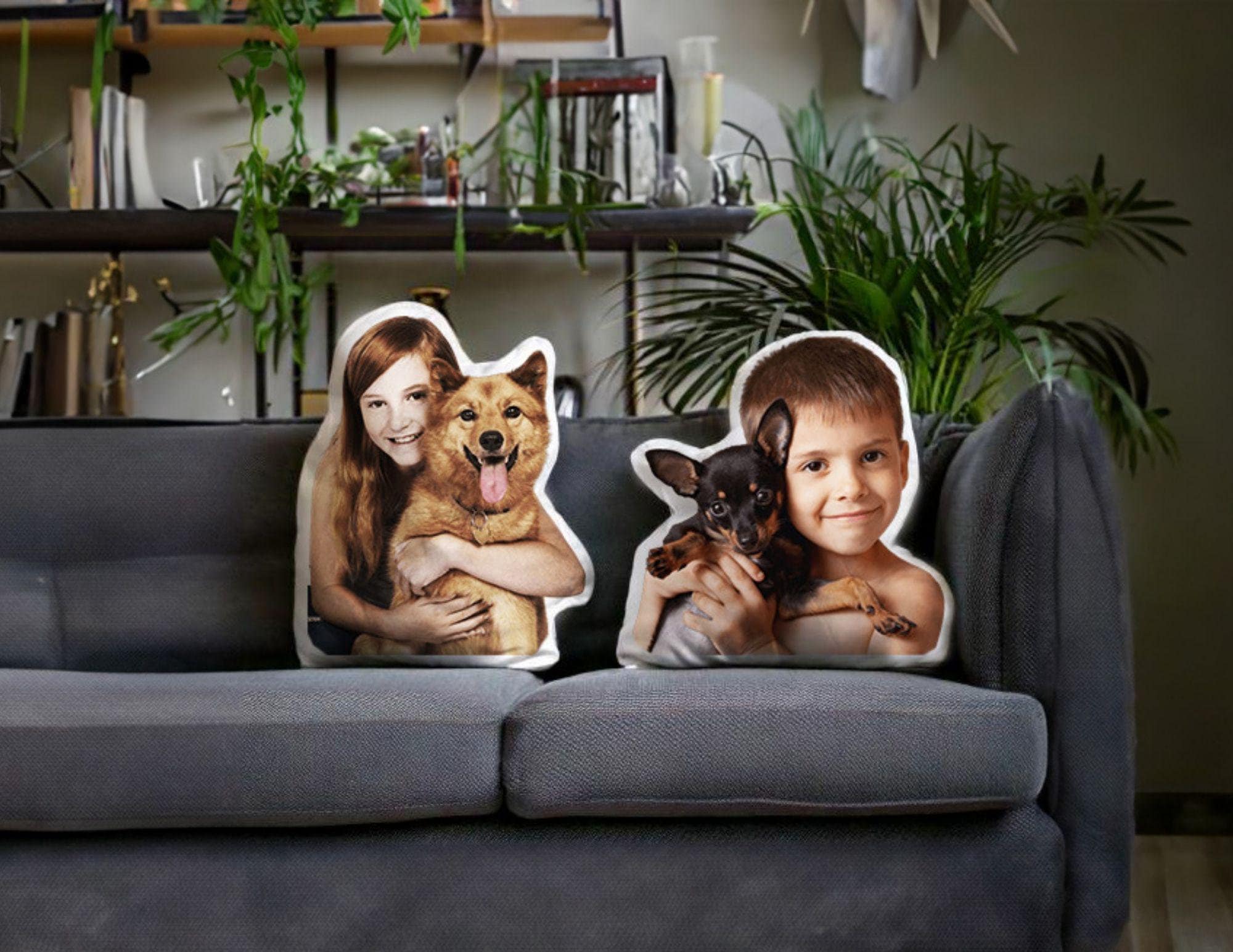 Create a lasting keepsake with these custom-shaped pillows from your favorite photo! Whether it's you and your dog, cat, or other beloved pet, these personalized throw pillows make thoughtful gifts for pet lovers and cherished pet memorial pieces.