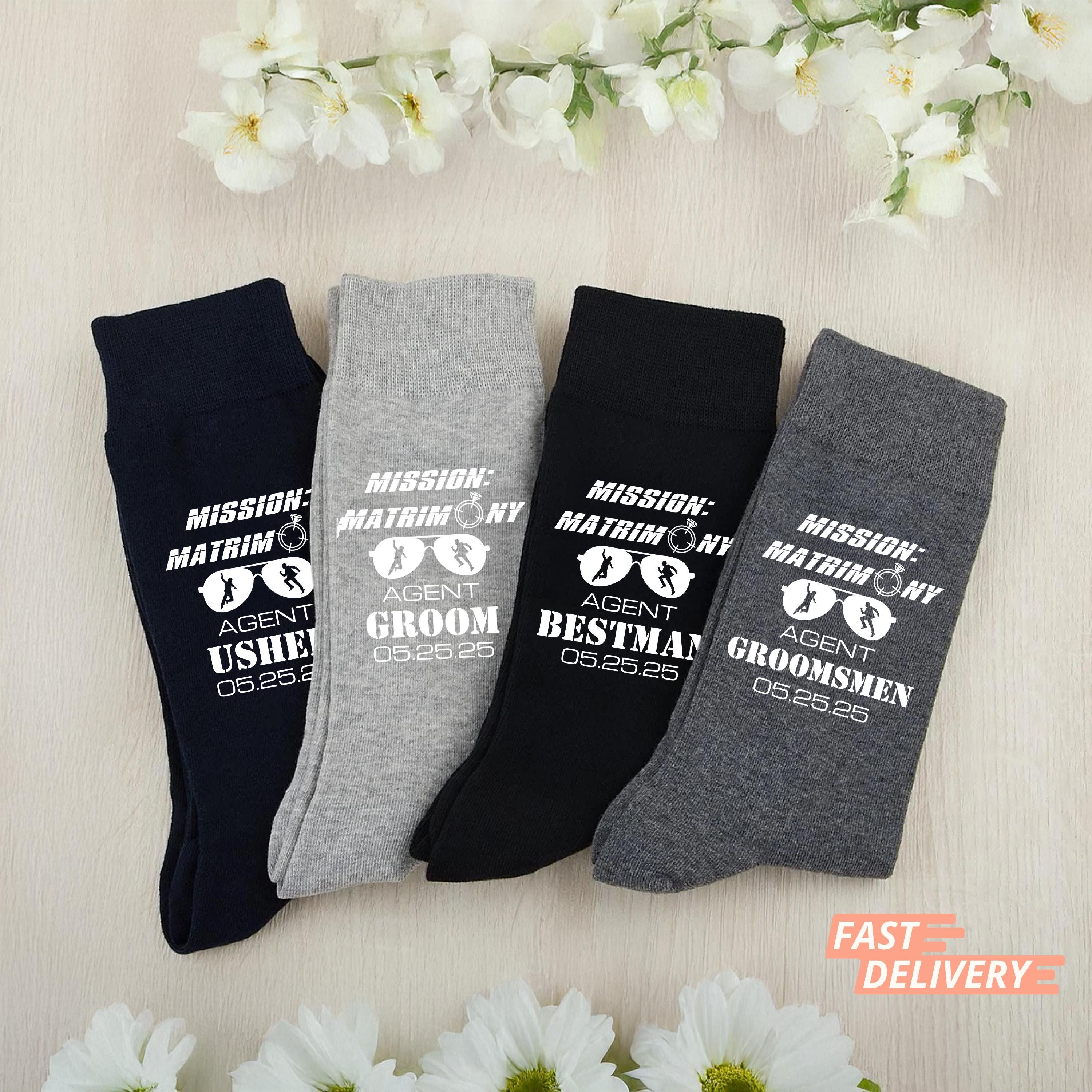 Mission Matrimony Socks Personalized Groomsmen Socks Custom Groomsman