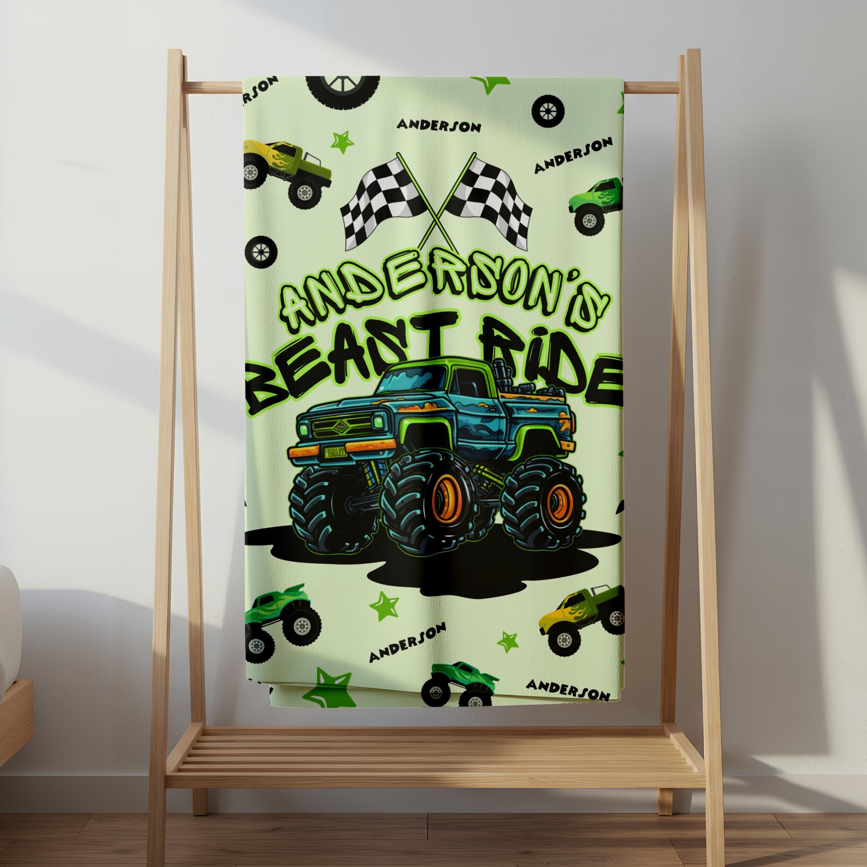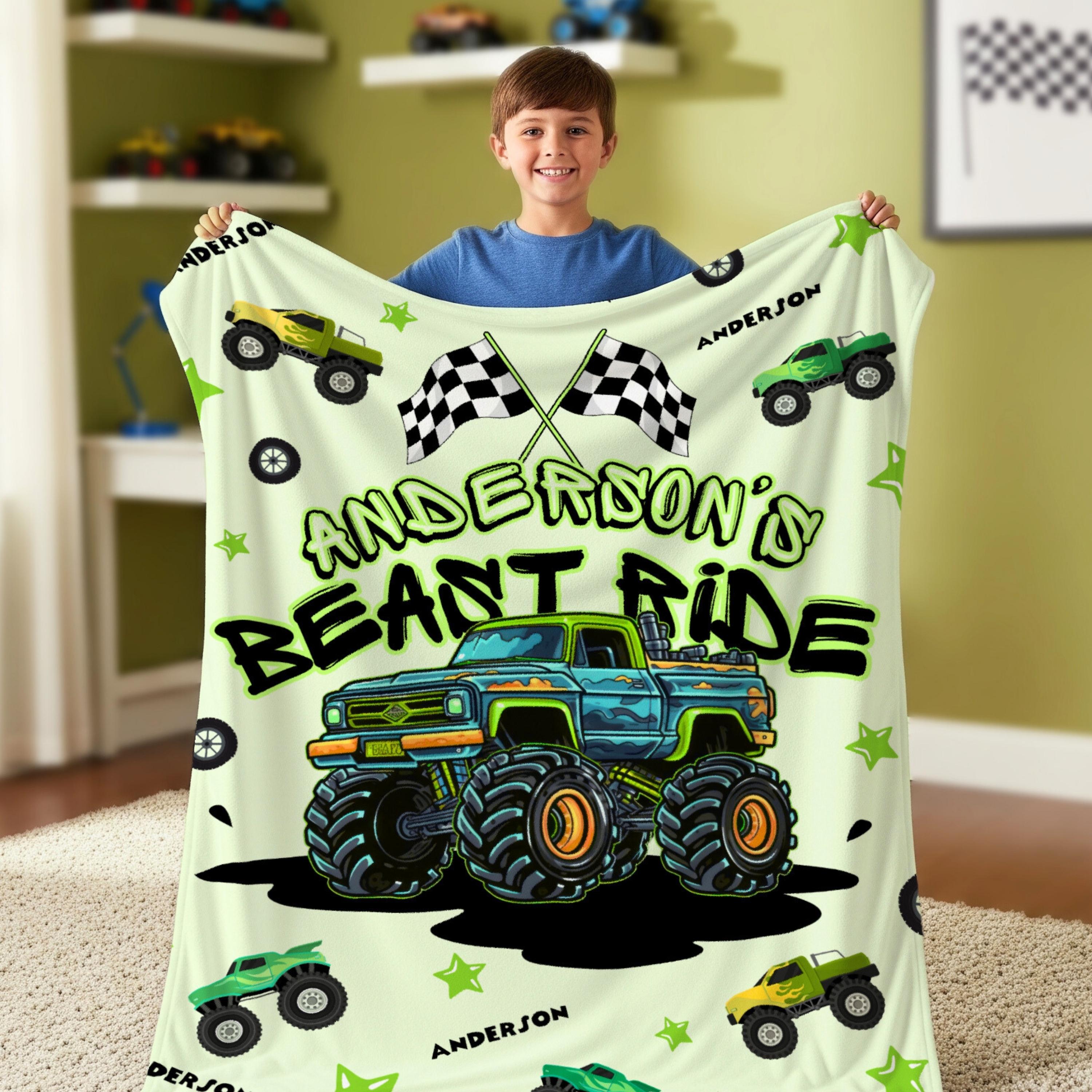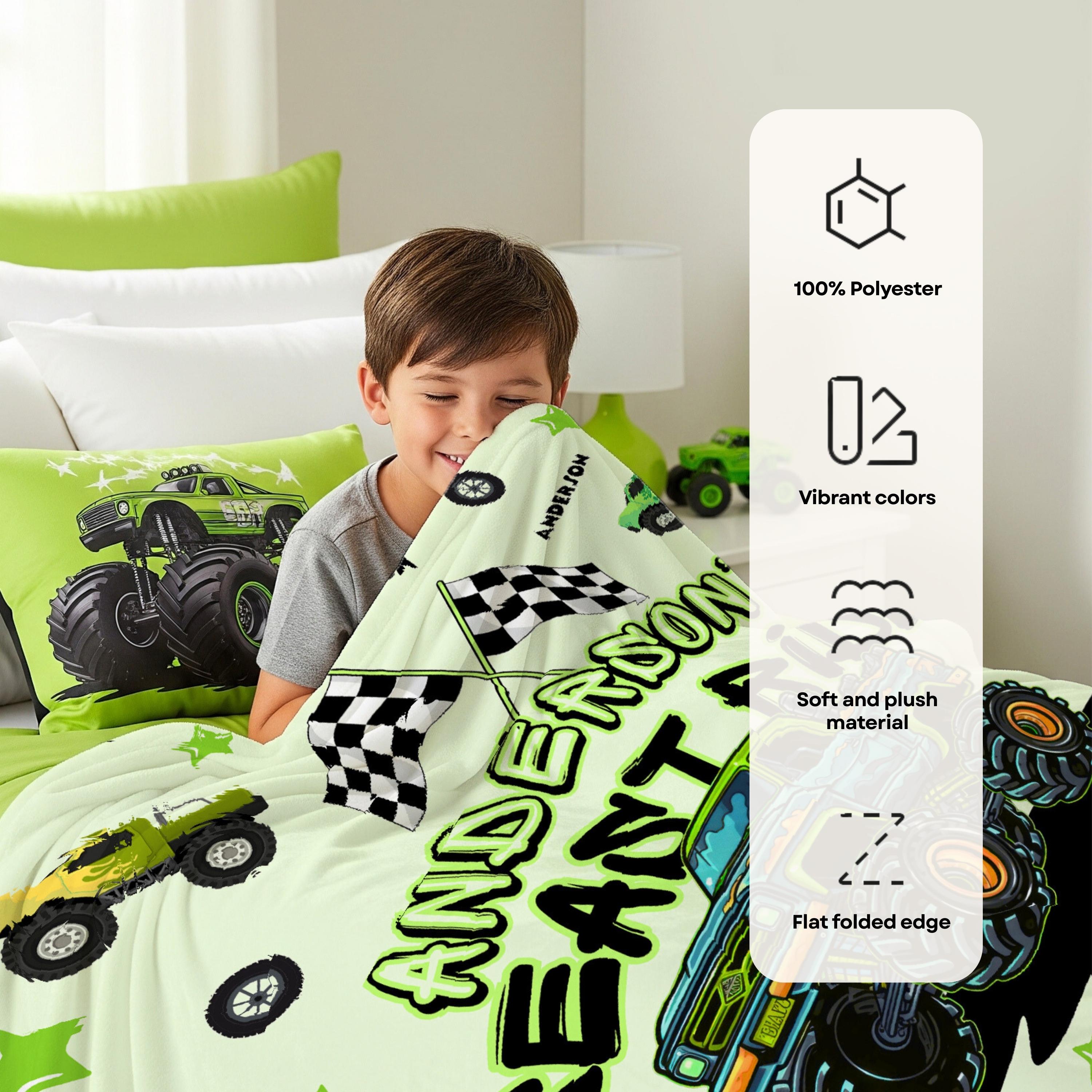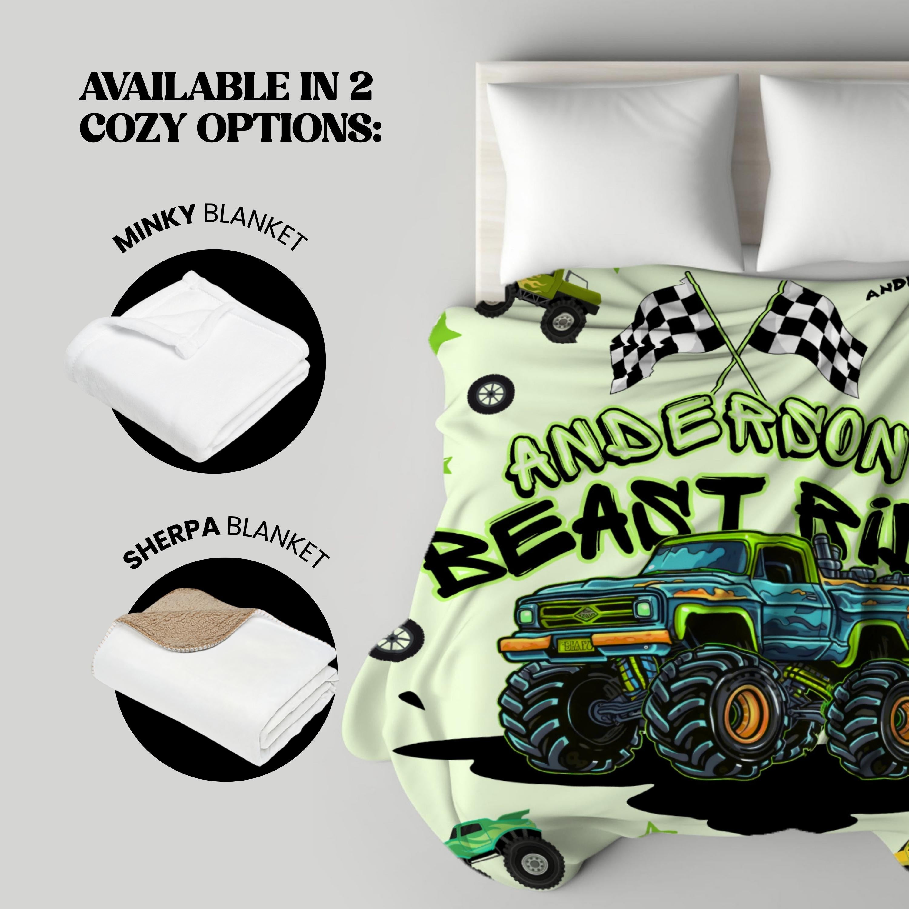 Monster Truck Blanket Custom Gift for Kids Sherpa