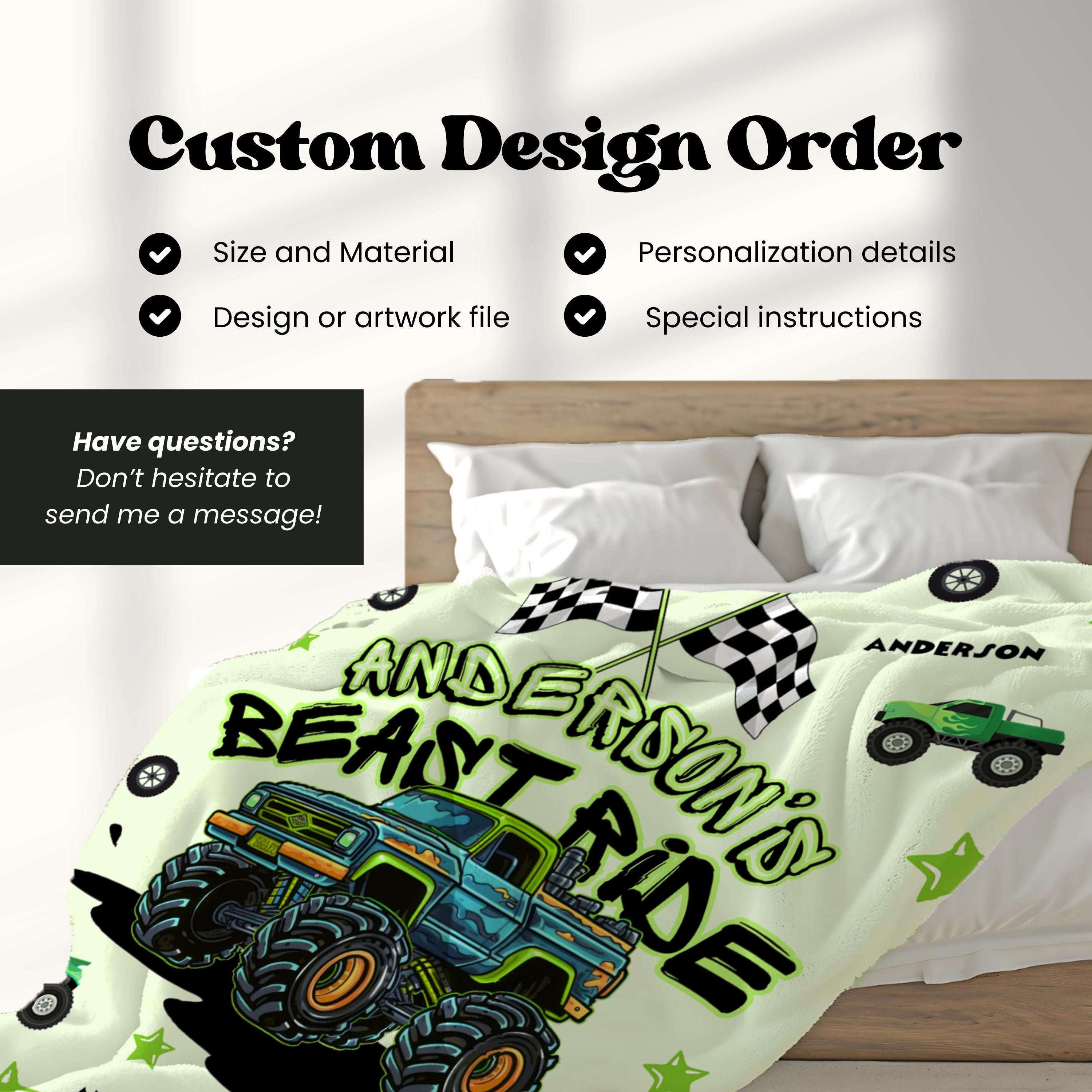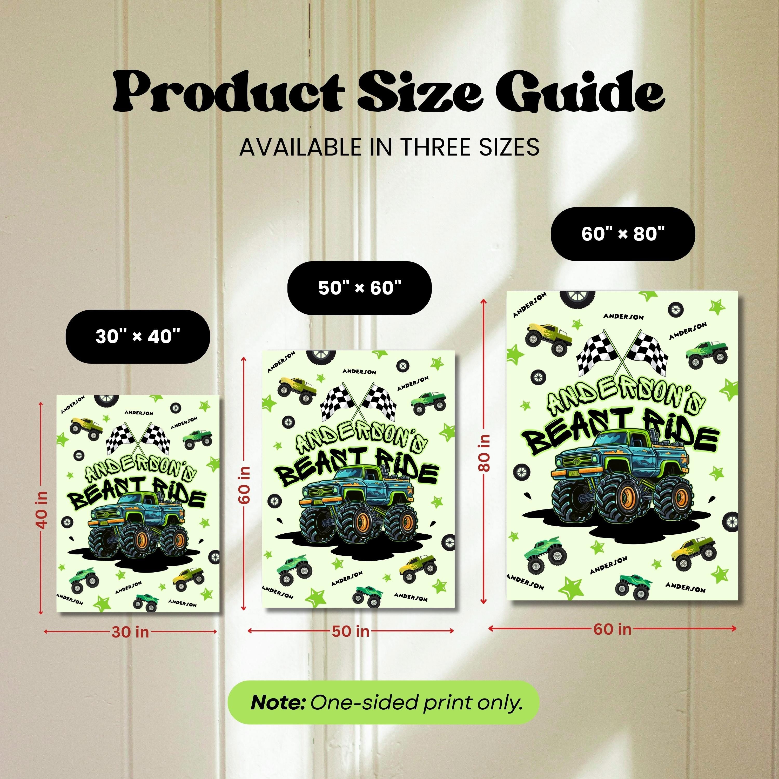 Make bedtime extra fun with this monster truck blanket, the perfect cozy gift for toddlers and kids who love big wheels and beast rides! Soft and snuggly, its available in sherpa or mink styles and can be personalized with your childs name for a one-of-a-kind keepsake. Material: Choose between two luxe finishes: ✨ Minky → Smooth, ultra-soft, and breathable ✨ Sherpa → Plush fleece front + fluffy sherpa back for double the comfort 🌟 Why You’ll Love Them ✅ Two Cozy Options → Minky (buttery-soft) or Sherpa (double-sided plush) ✅ Warm but Lightweight → Perfect for couch cuddles, naps, or Netflix marathons ✅ Made for Gifting → Thoughtful for birthdays, holidays, housewarmings, or “just because” ✅ Easy Care → Machine wash, tumble dry—stays soft after every wash ✅ Chic + Functional → Works as a cozy throw and a stylish décor accent 📏 Size Options 50" × 60" 60" × 80"
