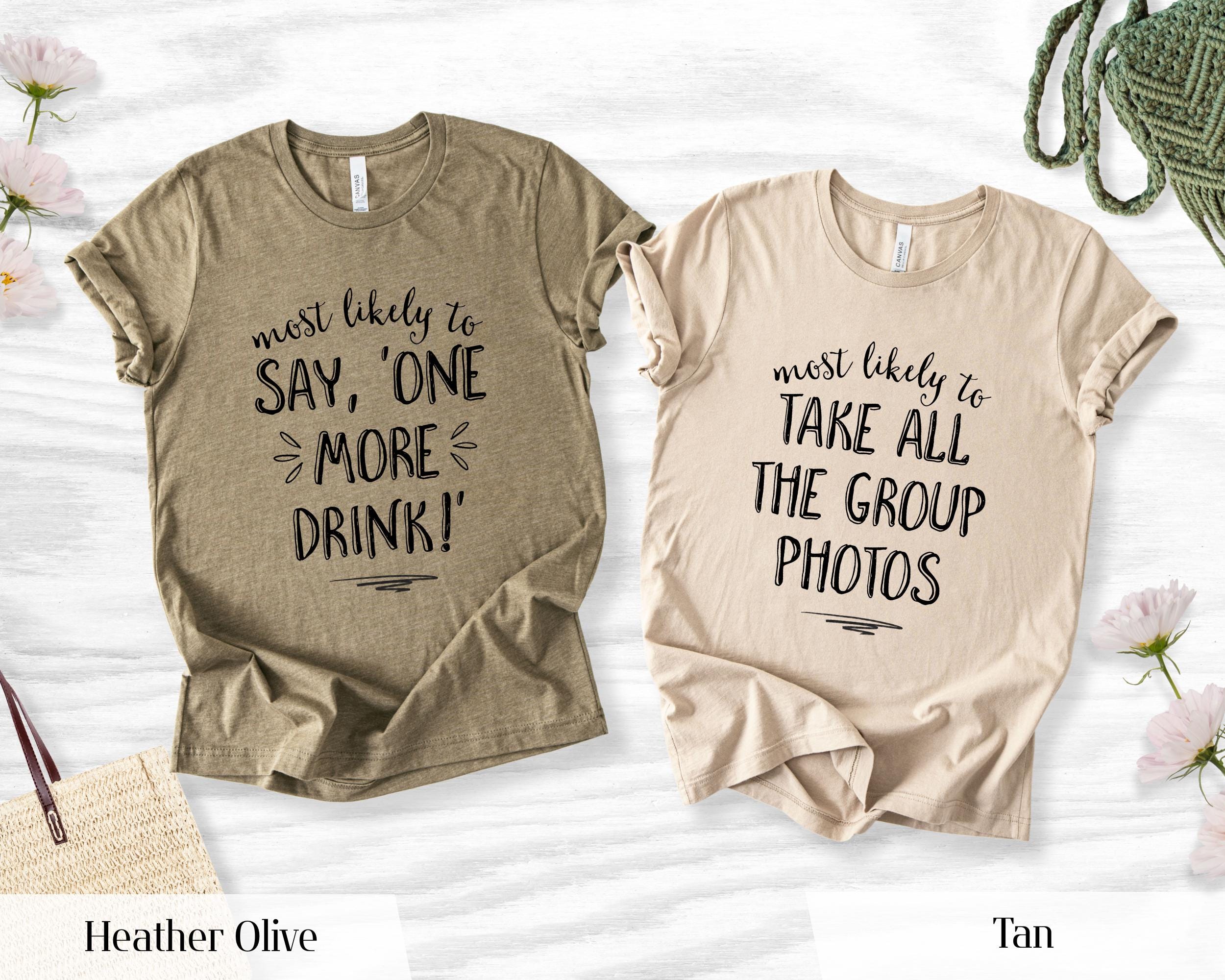 Bring the laughs to your bride tribe with these hilarious Most Likely To bachelorette shirts! Each shirt can be customized with different phrases to match your crews personalitiesperfect for parties, bar crawls, or that unforgettable weekend getaway.