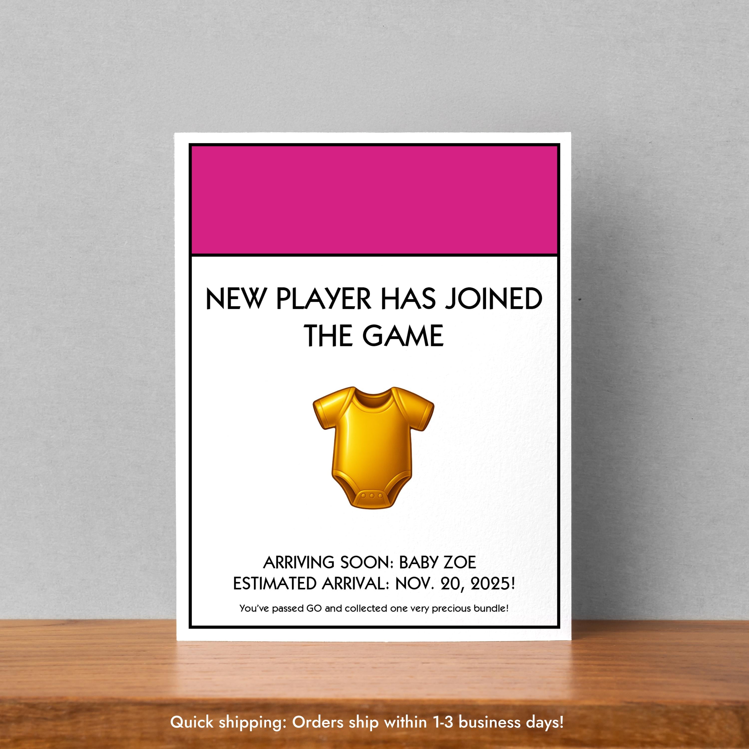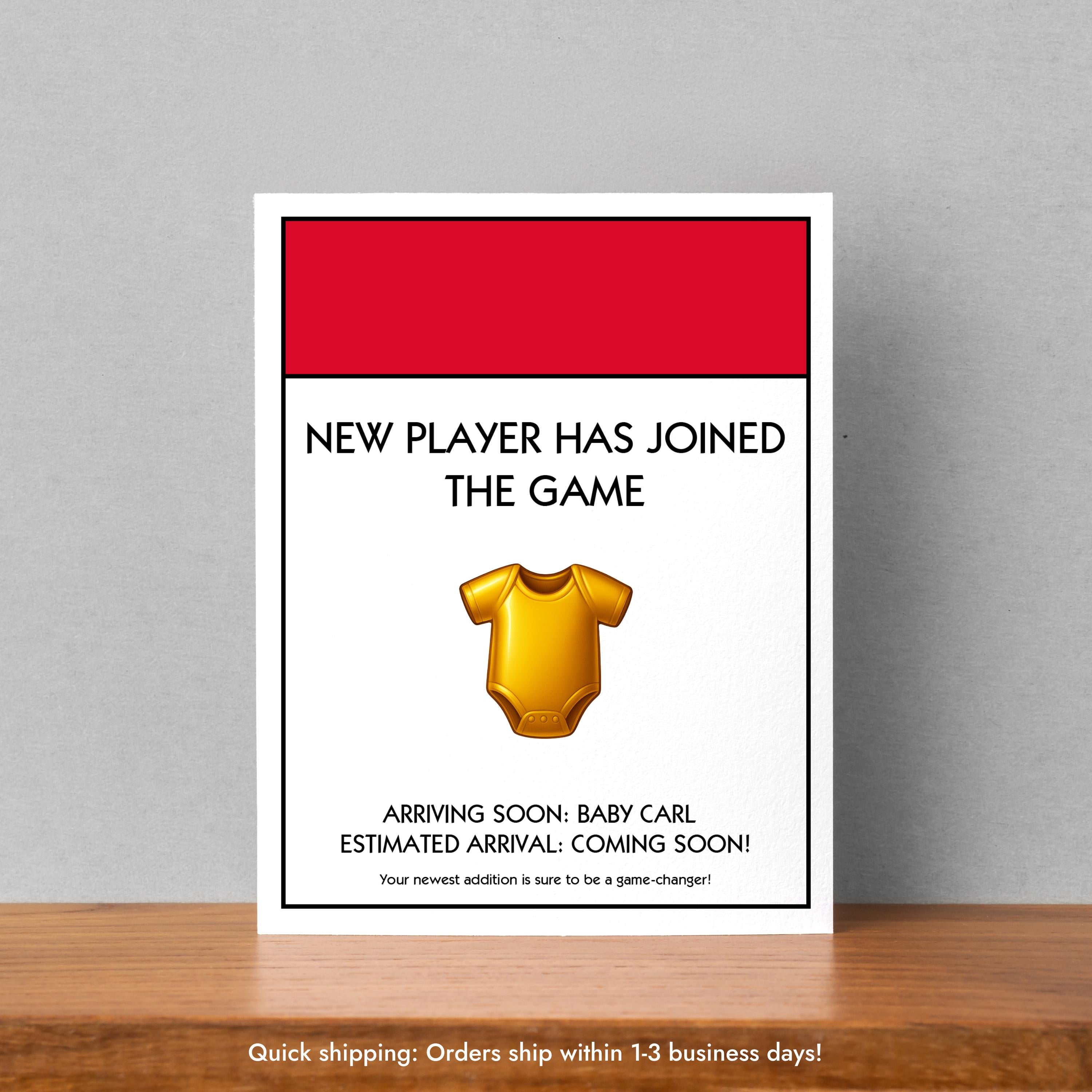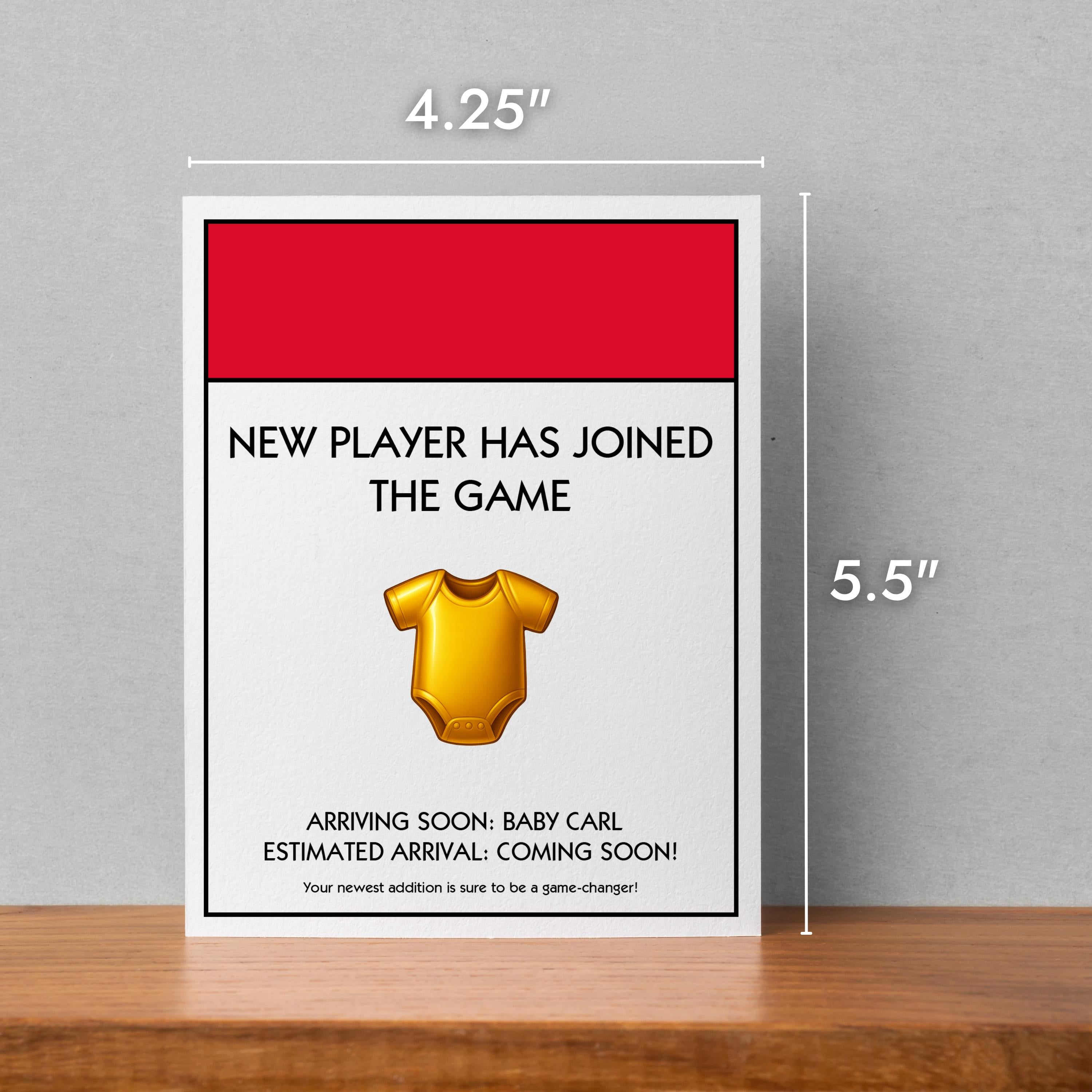 Celebrate the arrival of a new little player with a Monopoly-themed greeting card that's sure to bring a smile! This funny and thoughtful card is a great choice for new parents, baby showers, or to welcome a newborn baby boy or girl.
