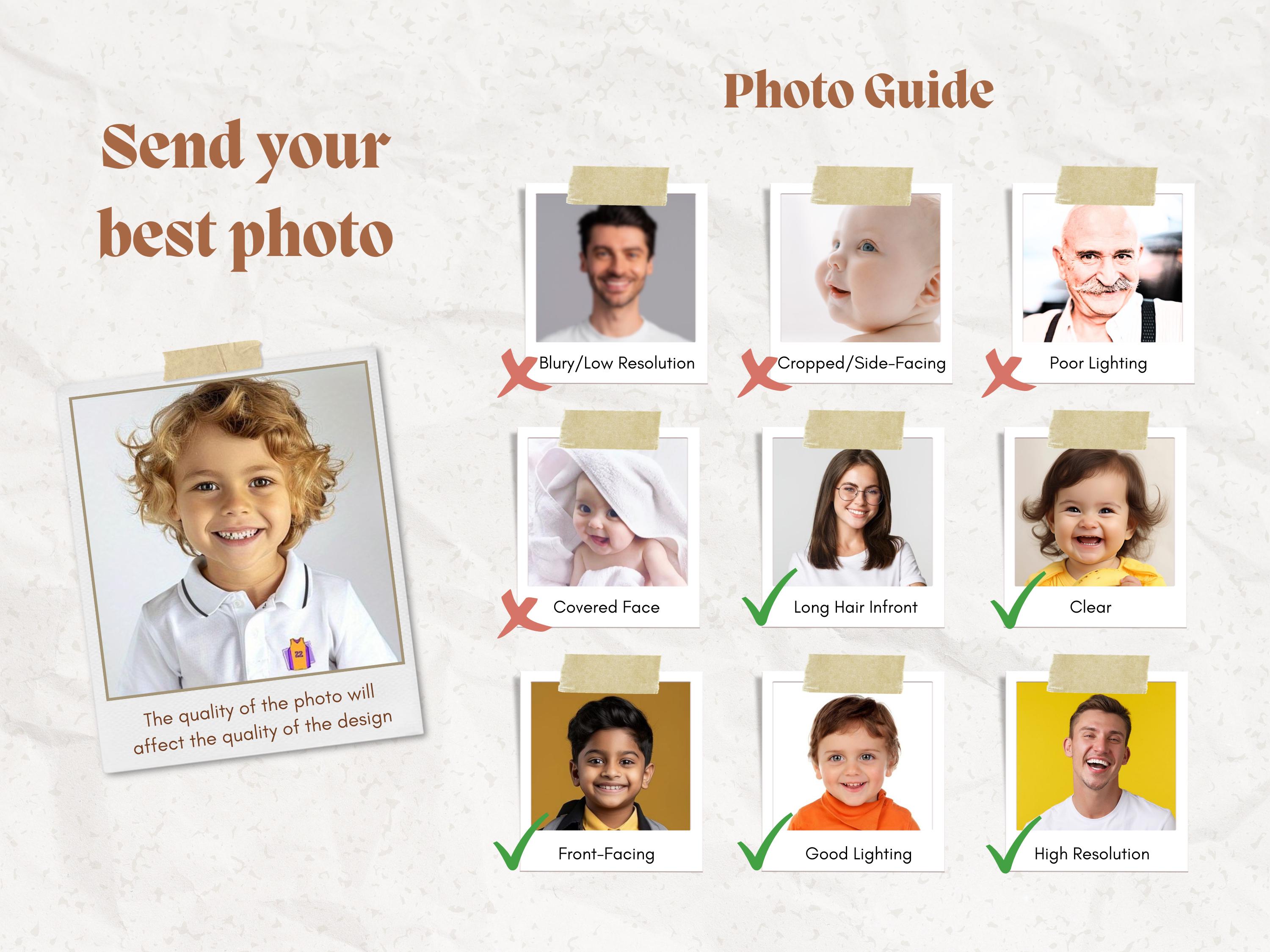 ⚠️ Photo quality directly impacts the final design. For best results, use clear, straight-facing, well-lit images.