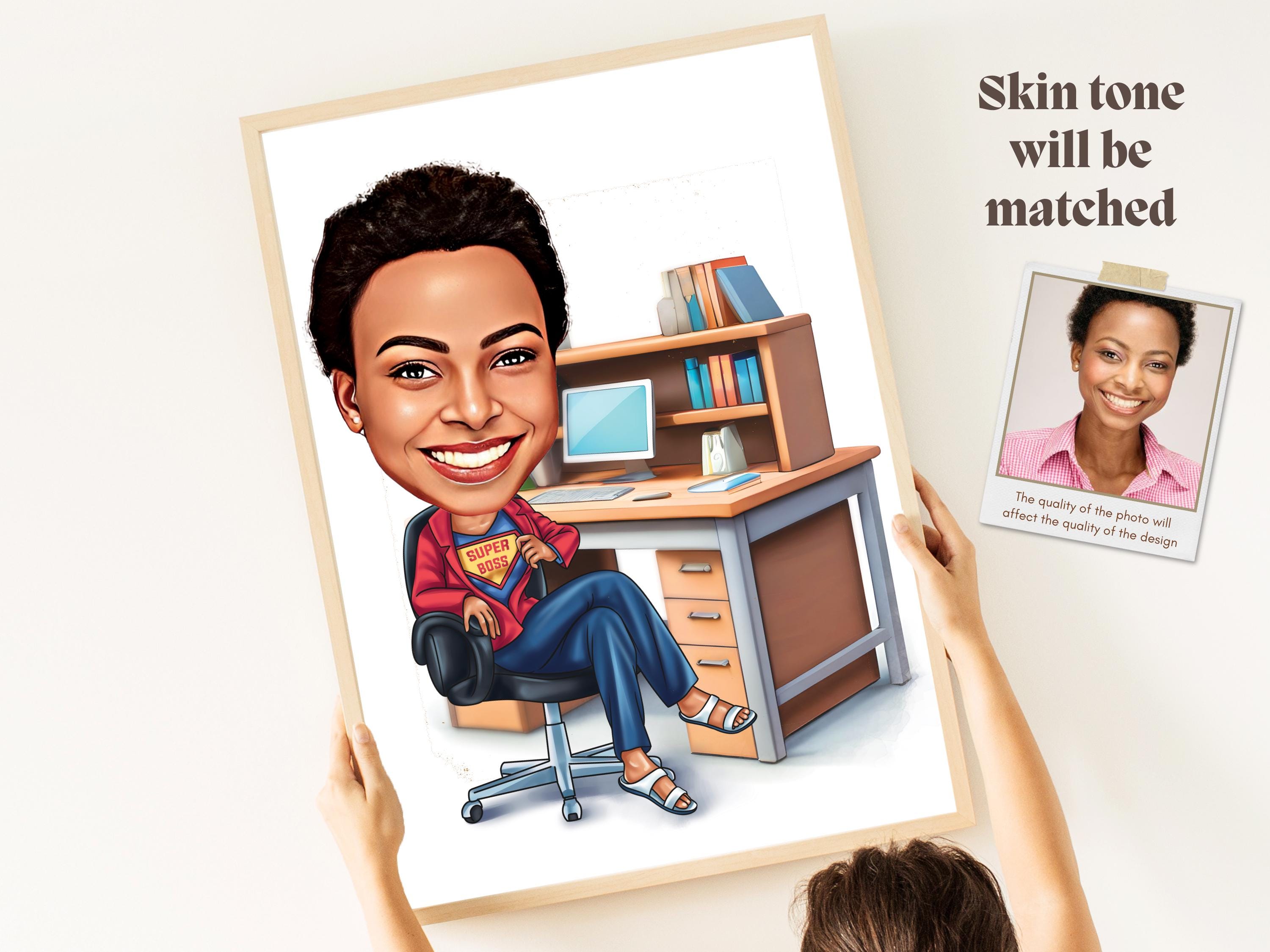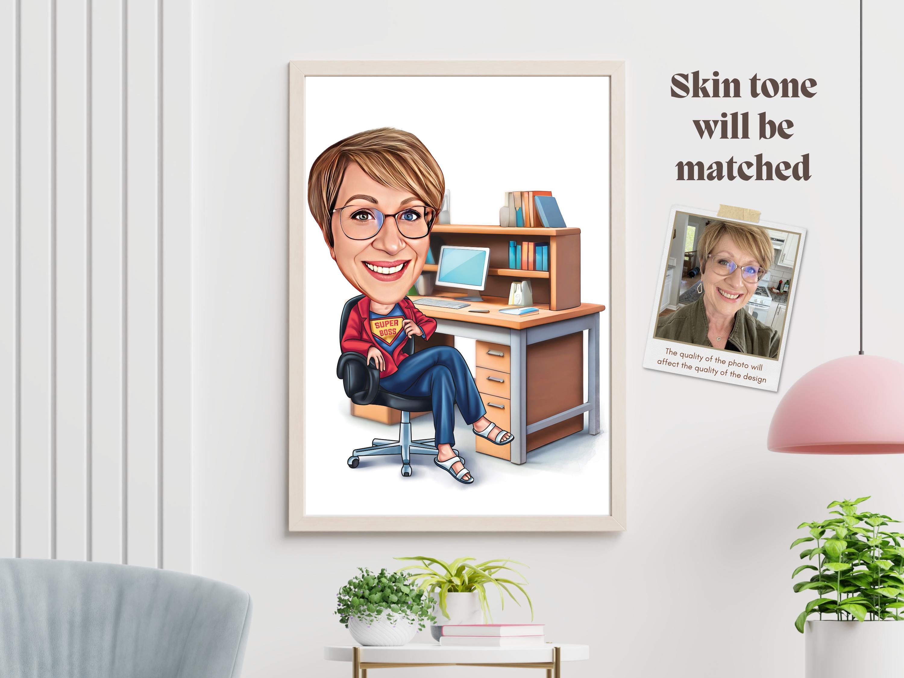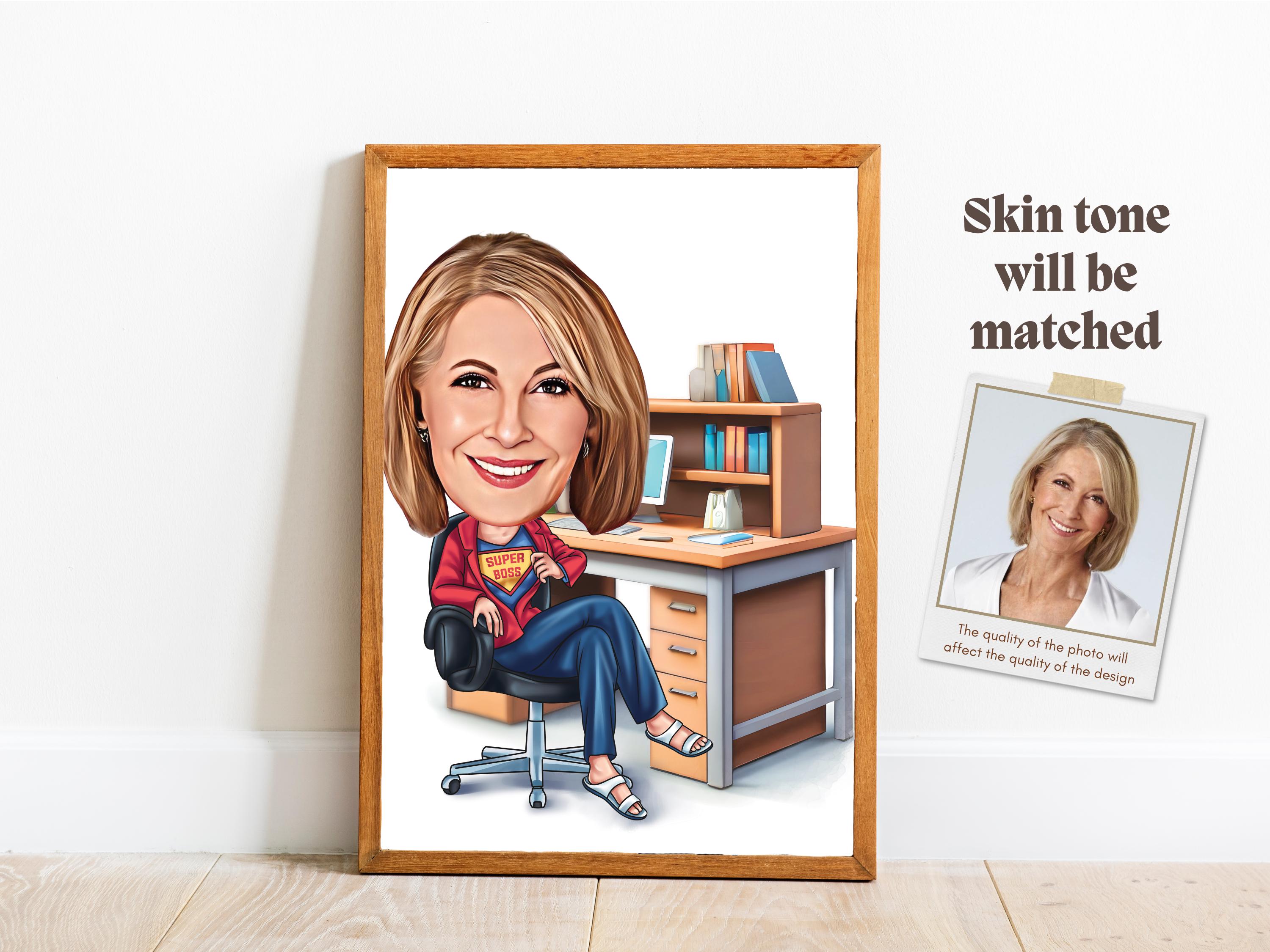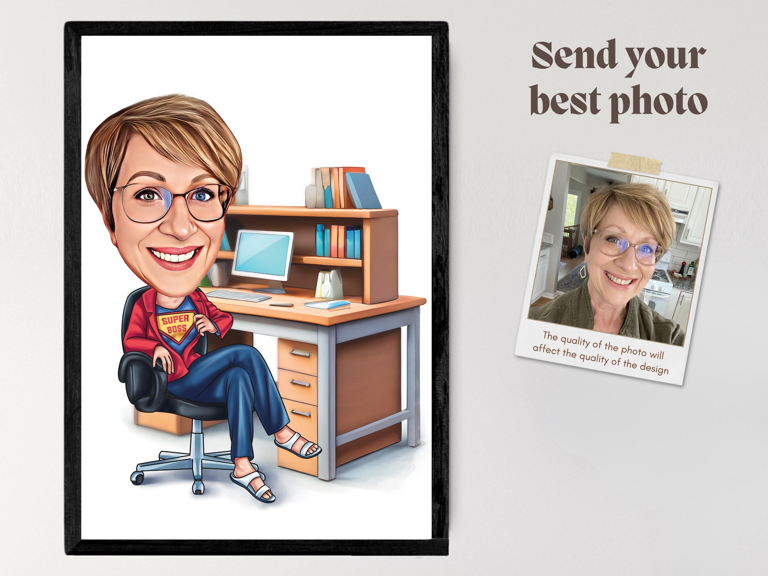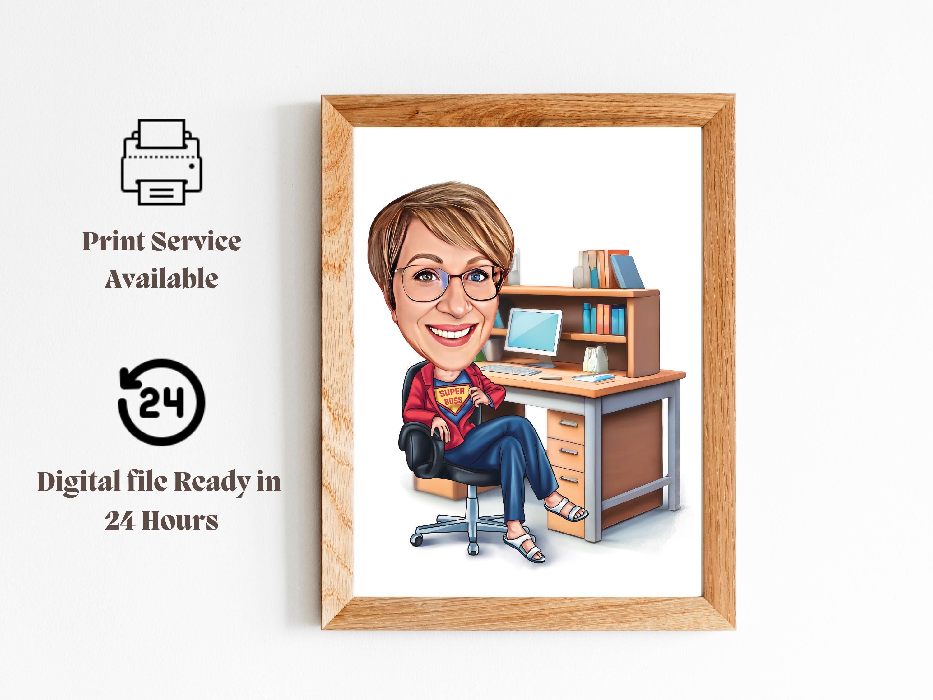 Personalized Female Super Boss Cartoon Portrait Custom Female Caricature