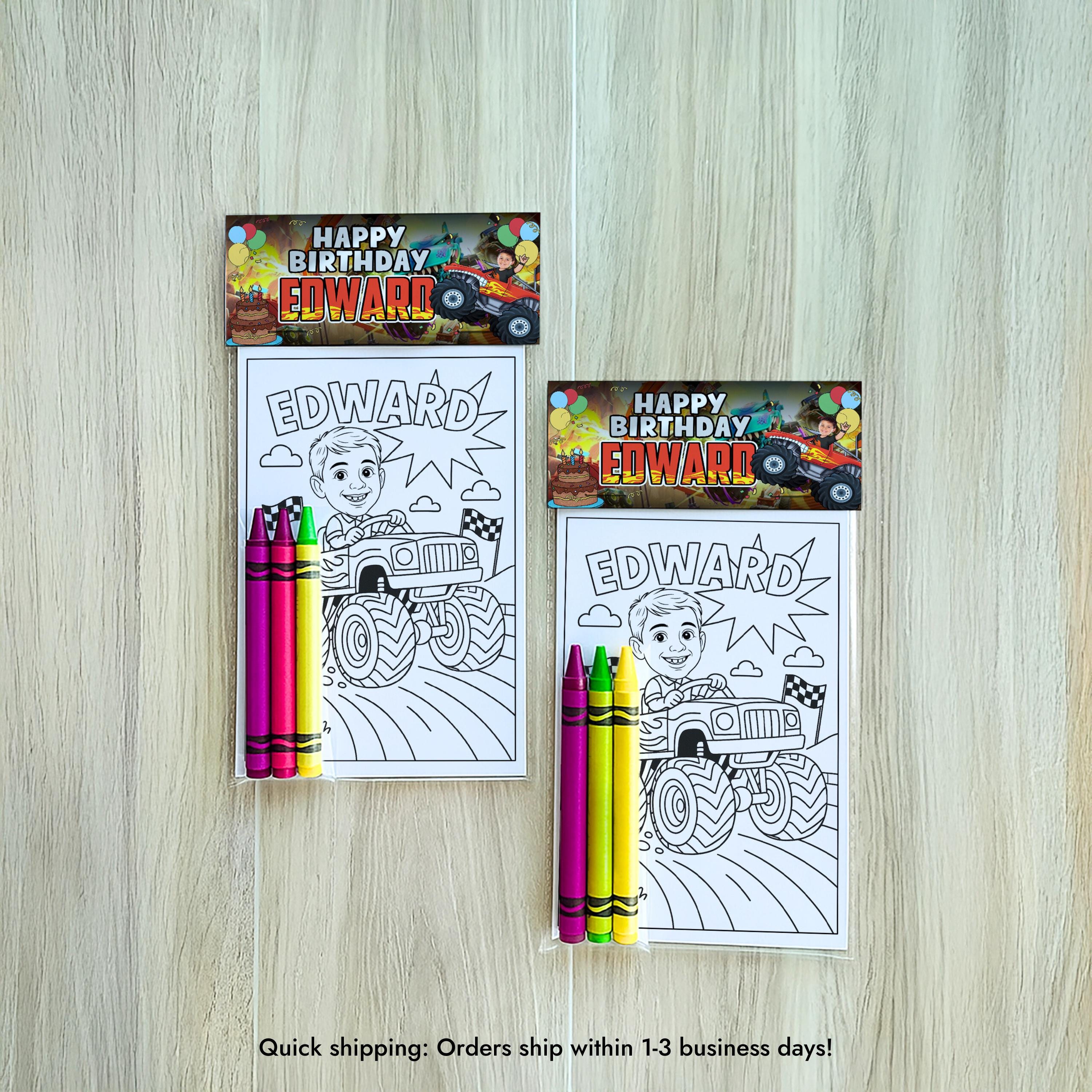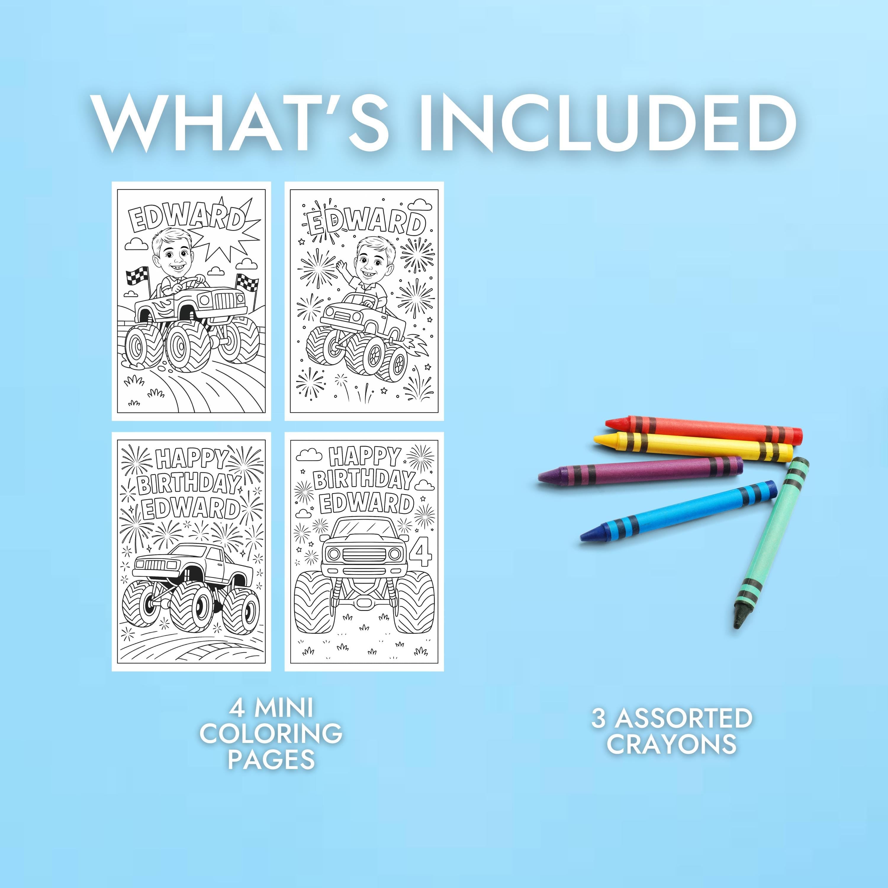 Rev up the fun with these Personalized Monster Truck Birthday Coloring Pages! Perfect for racing-themed parties, these custom sheets feature your childs name and bold monster truck designs kids will love.
