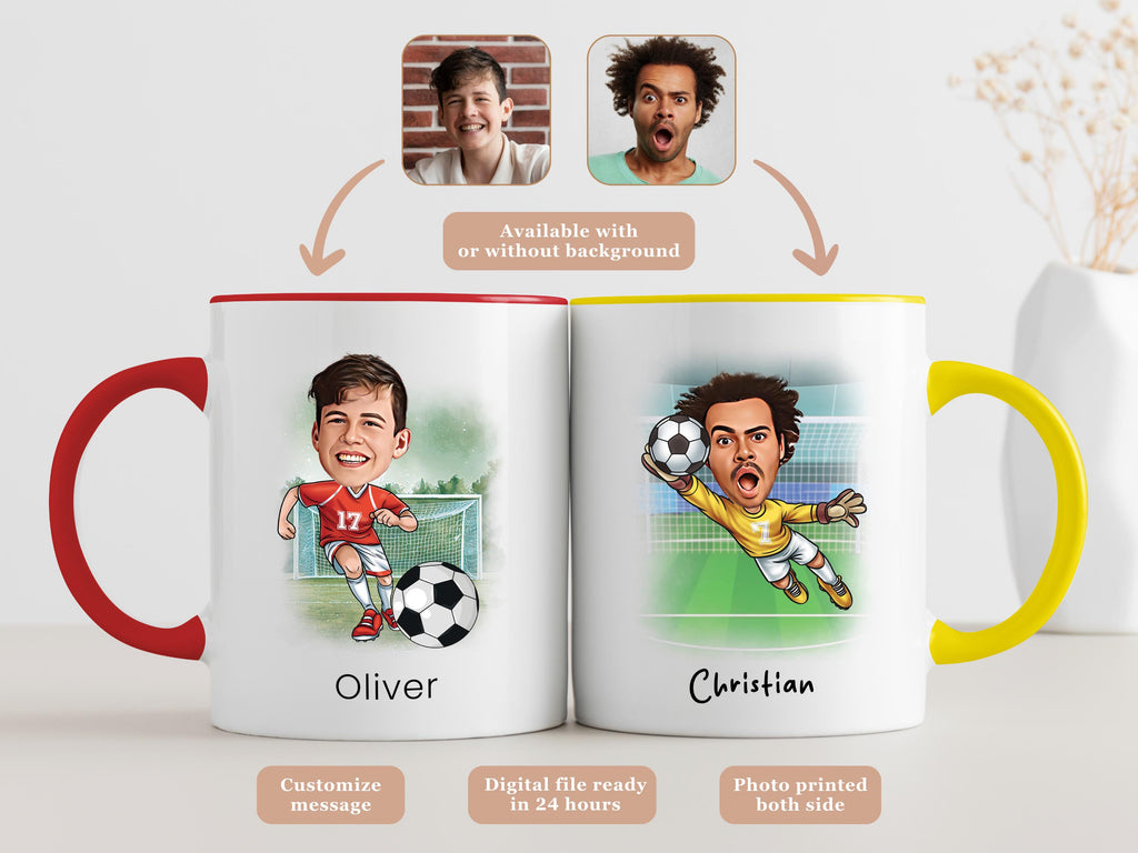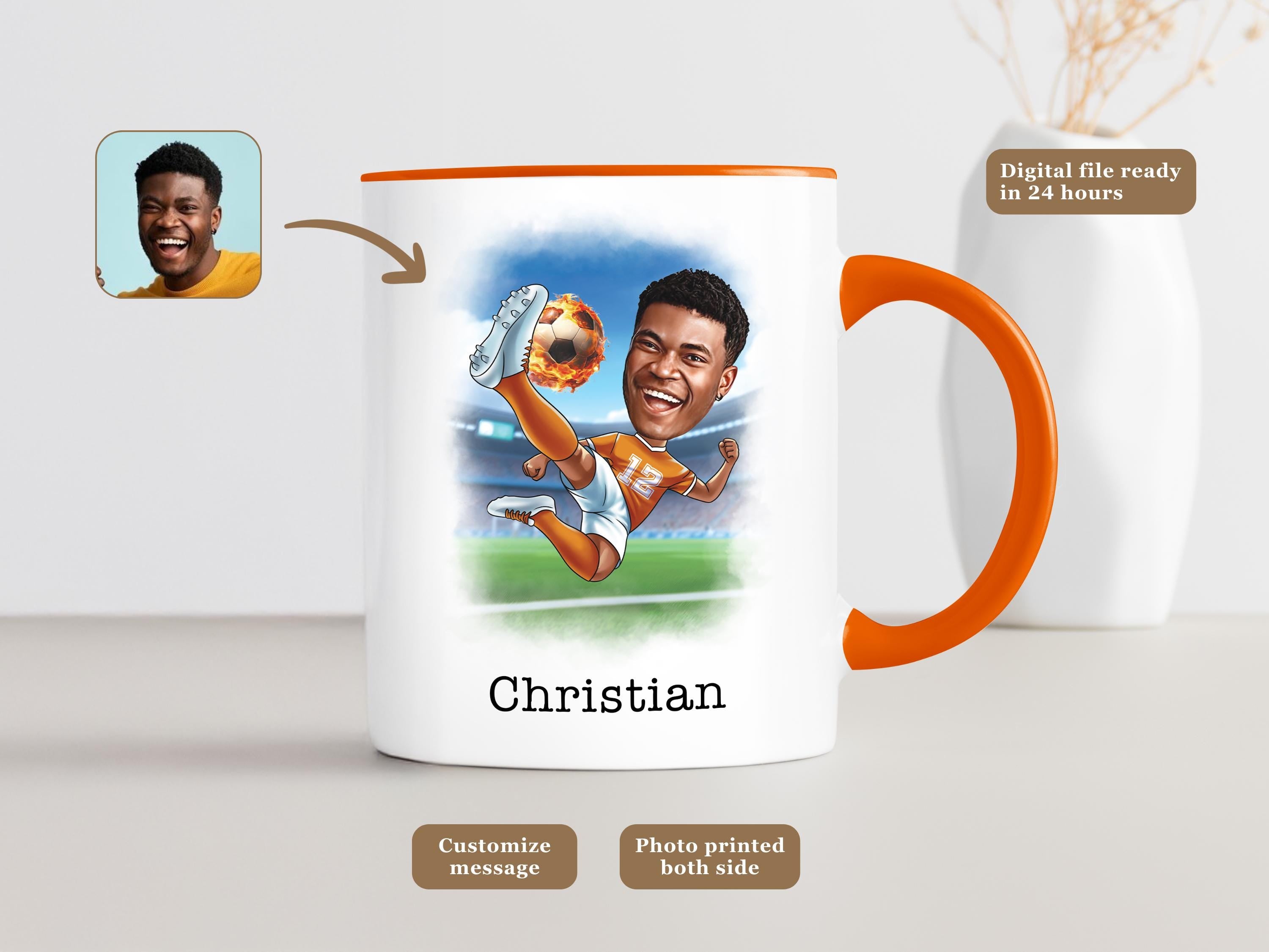 Kick off the perfect gift for the soccer player or athlete in your life with this Personalized Soccer Player Mug! Featuring a fun cartoon caricature based on your photo, its a unique way to celebrate their passion for the game and fuel their energy for the next match!.