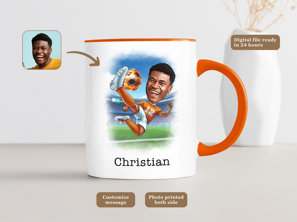 Personalized Soccer Player Mug Cartoon Mug Soccer Caricature