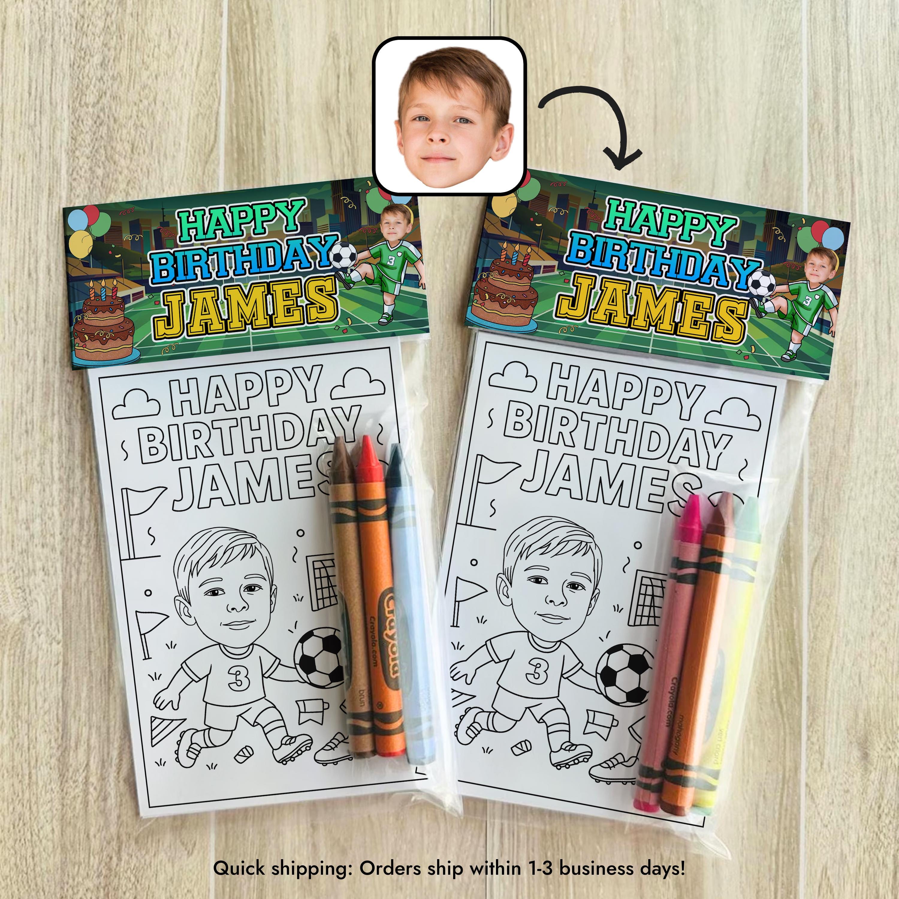 Kick off the fun with our Personalized Soccer-Themed Birthday Coloring Pages! These custom coloring packs make the perfect soccer party favorseach set includes personalized pages that feature your childs name, plus optional crayon packs to keep little guests entertained. Material: ✅ Size: 4.25" x 5.5" EACH BAG INCLUDES - 4 mini coloring pages (printed on cardstock paper). - 3 Assorted crayons