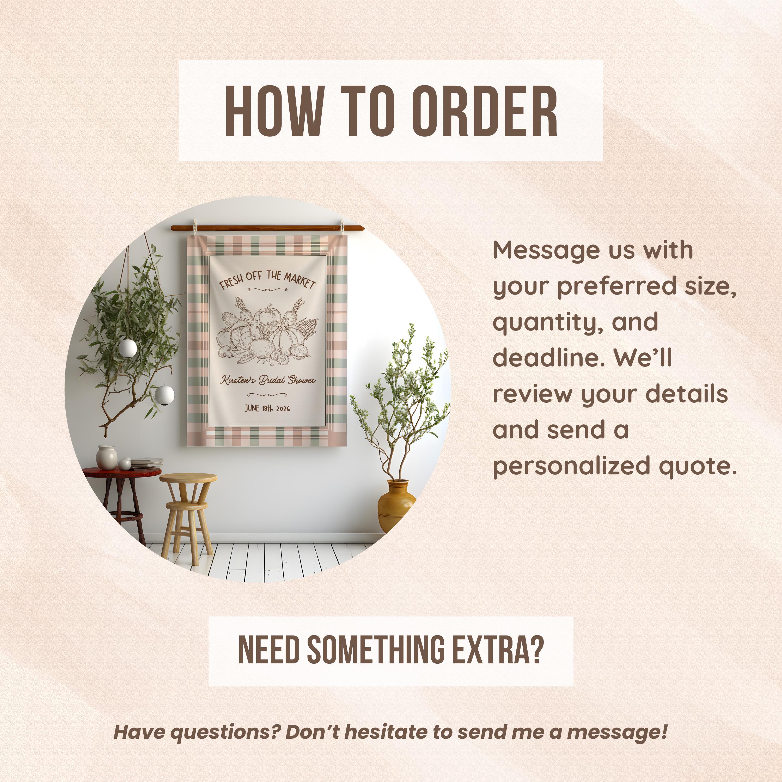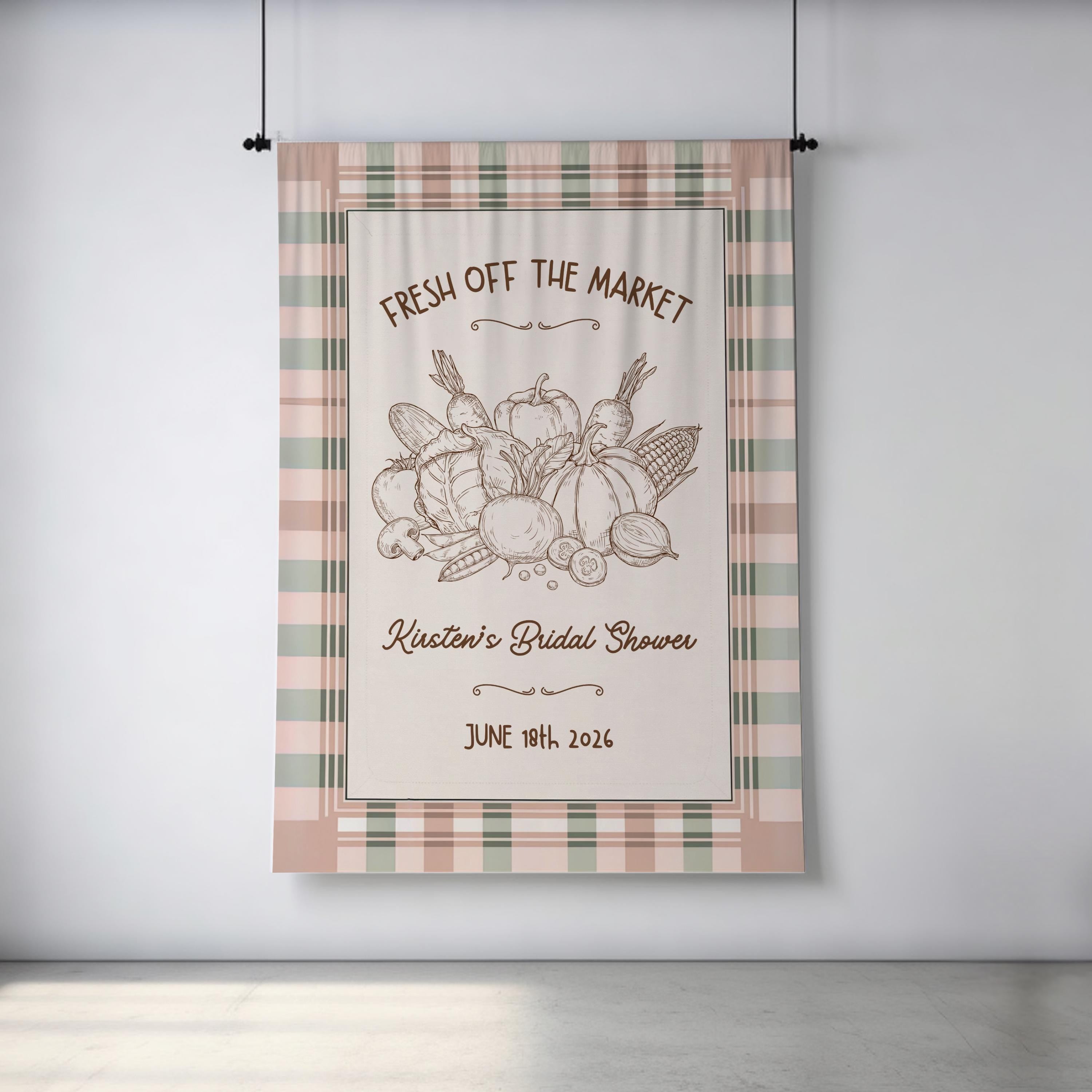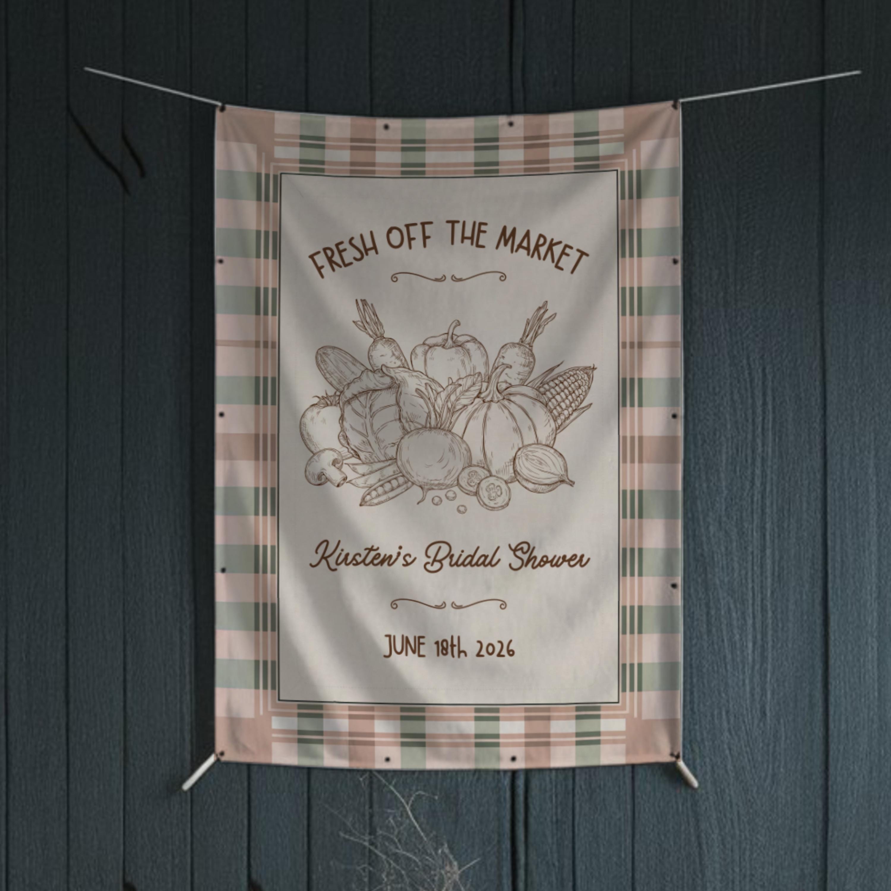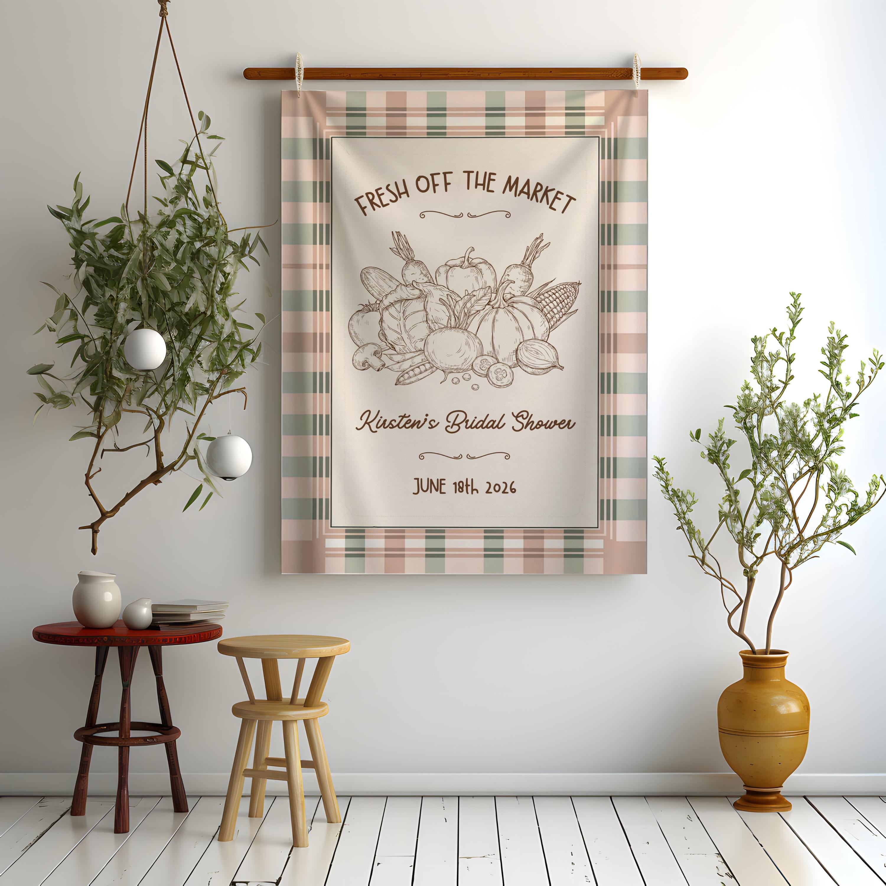 Celebrate the bride-to-be in style with this personalized bridal shower tapestry! Featuring the fun and flirty phrase Fresh Off The Market, this custom banner makes the perfect backdrop for bridal showers, engagement parties, or bachelorette celebrations. Material: ✅ Material: 100% Polyester (lightweight, soft & durable) ✅ Sizes: 26x36", 50x60", 68x80", 88x104" ✅ Indoor use only ✅ Hemmed edges for durability ✅ Easy to hang & reuse for multiple events