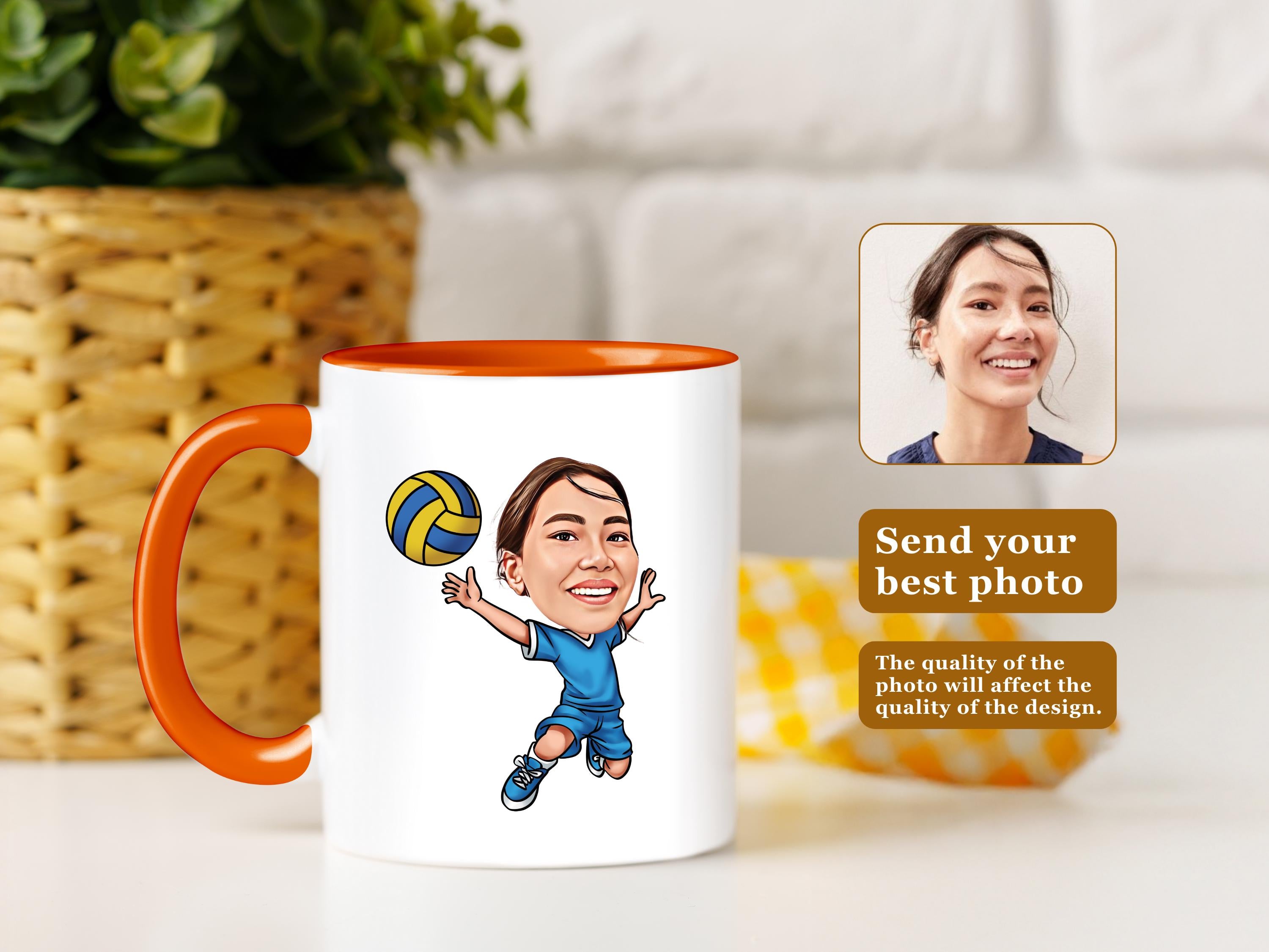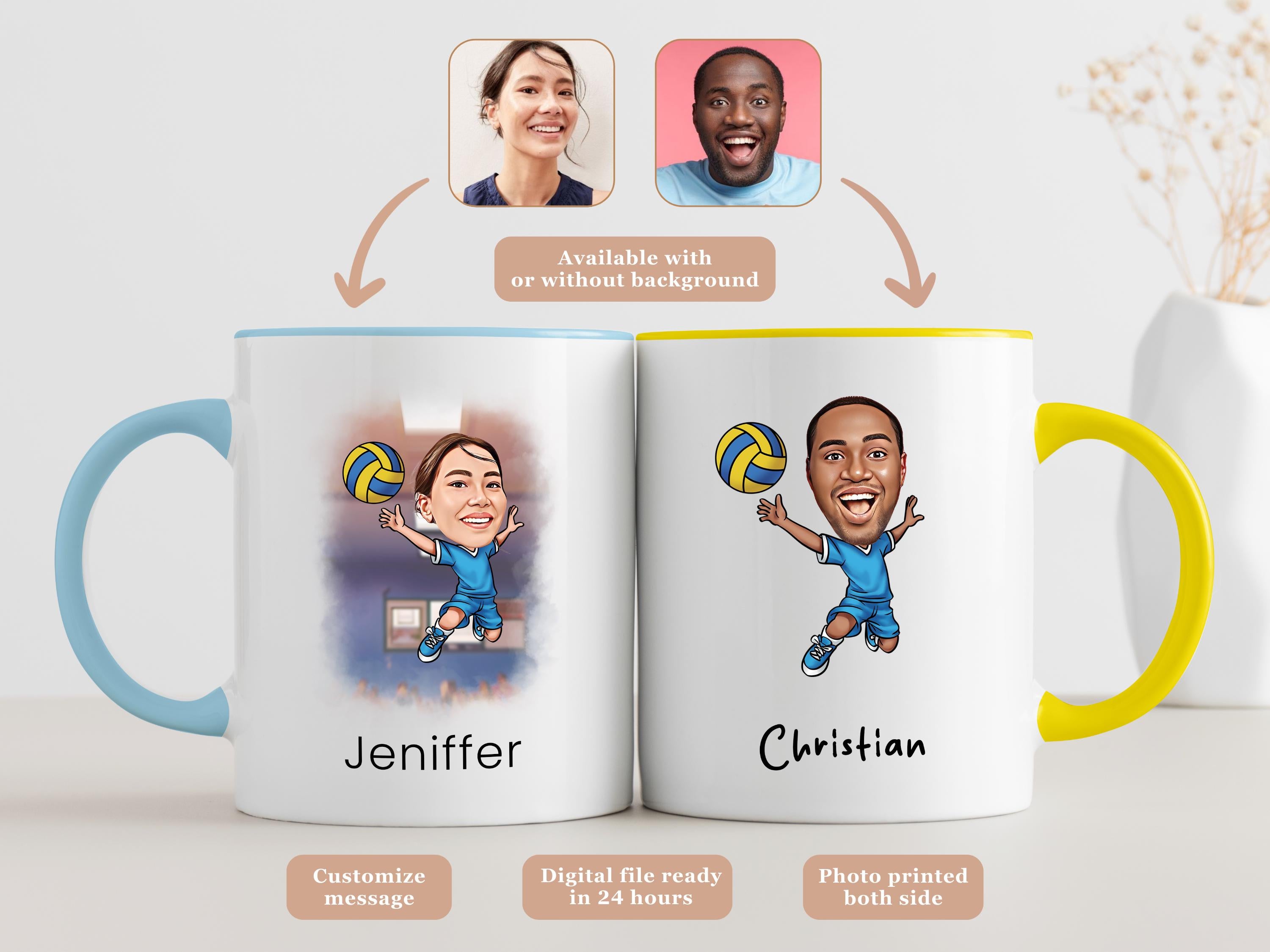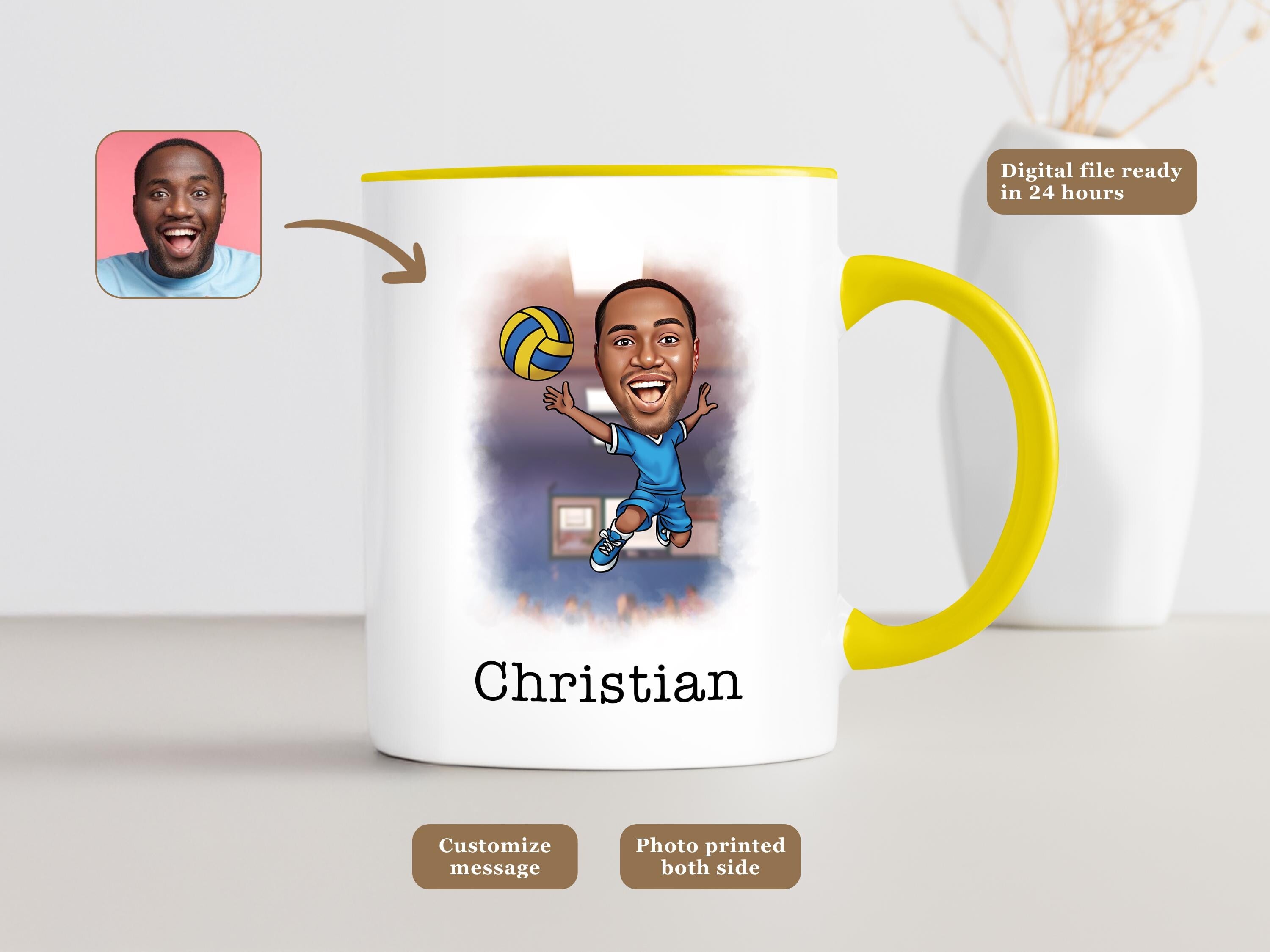 Serve up smiles with this Custom Volleyball Mug, the ultimate gift for volleyball players and fans alike! Whether youre shopping for a dedicated athlete, a coach, or a volleyball lover, this personalized mug features a fun caricature thats sure to brighten every coffee break.