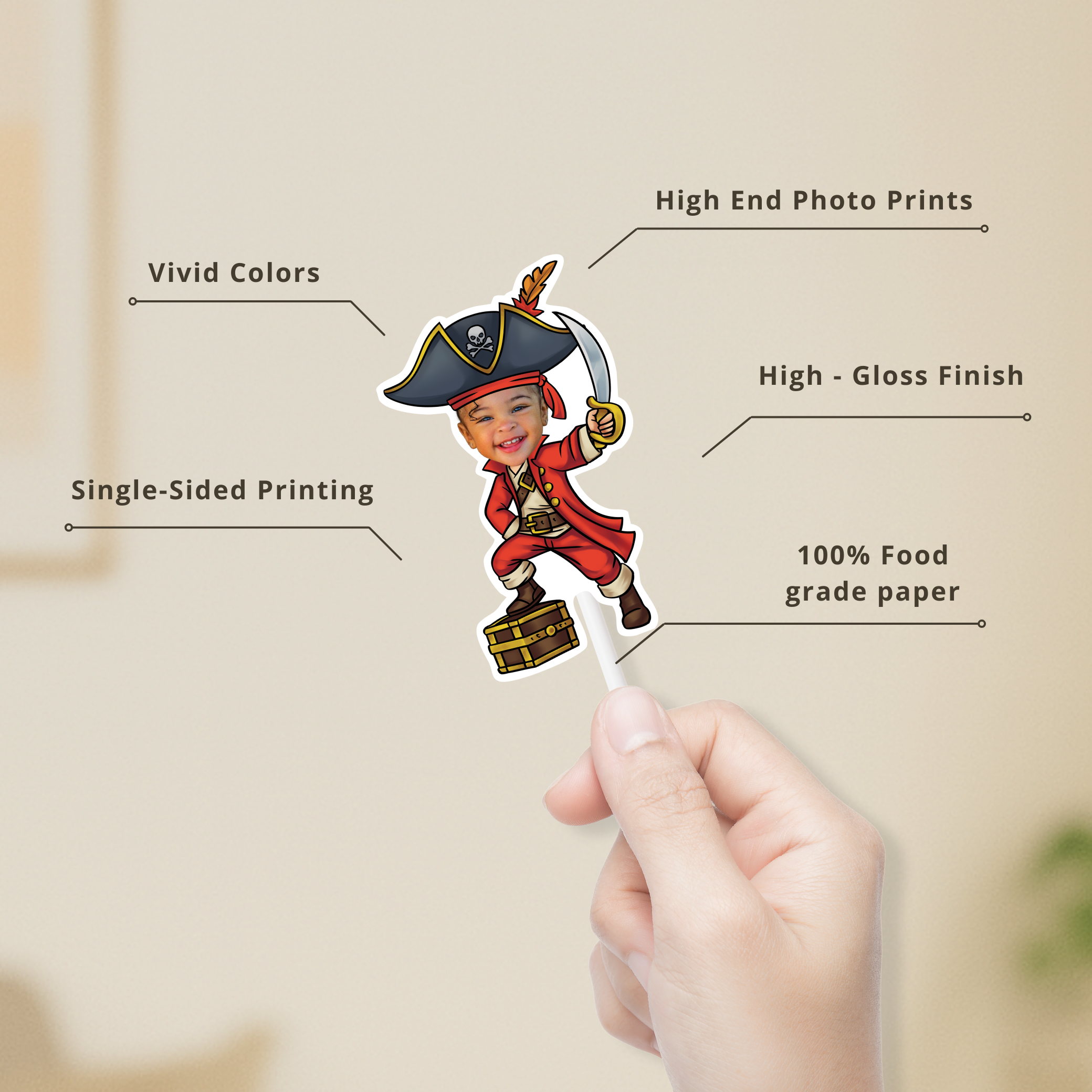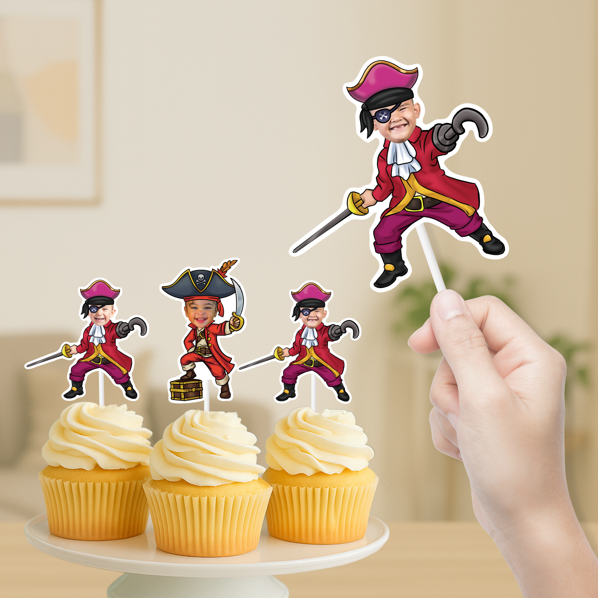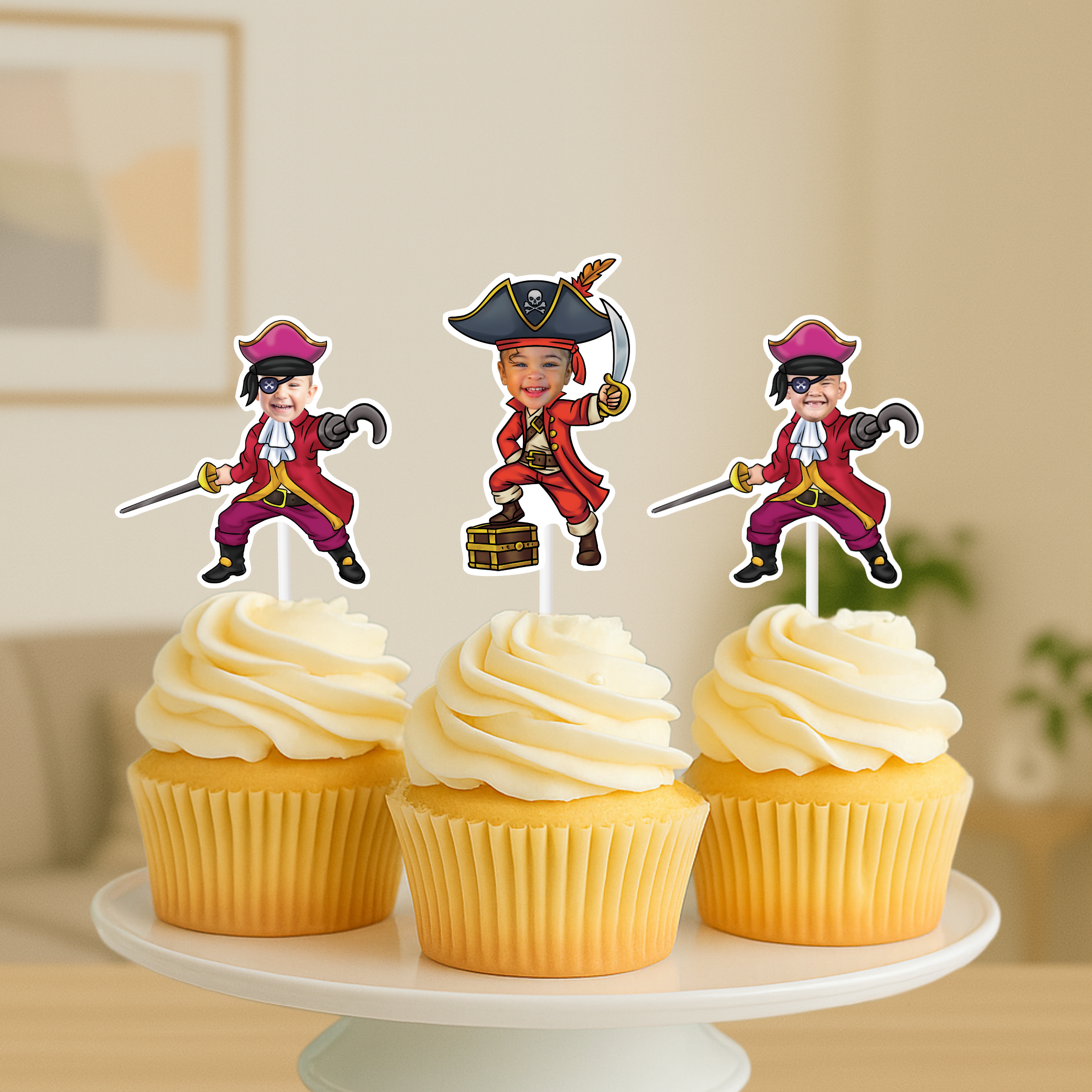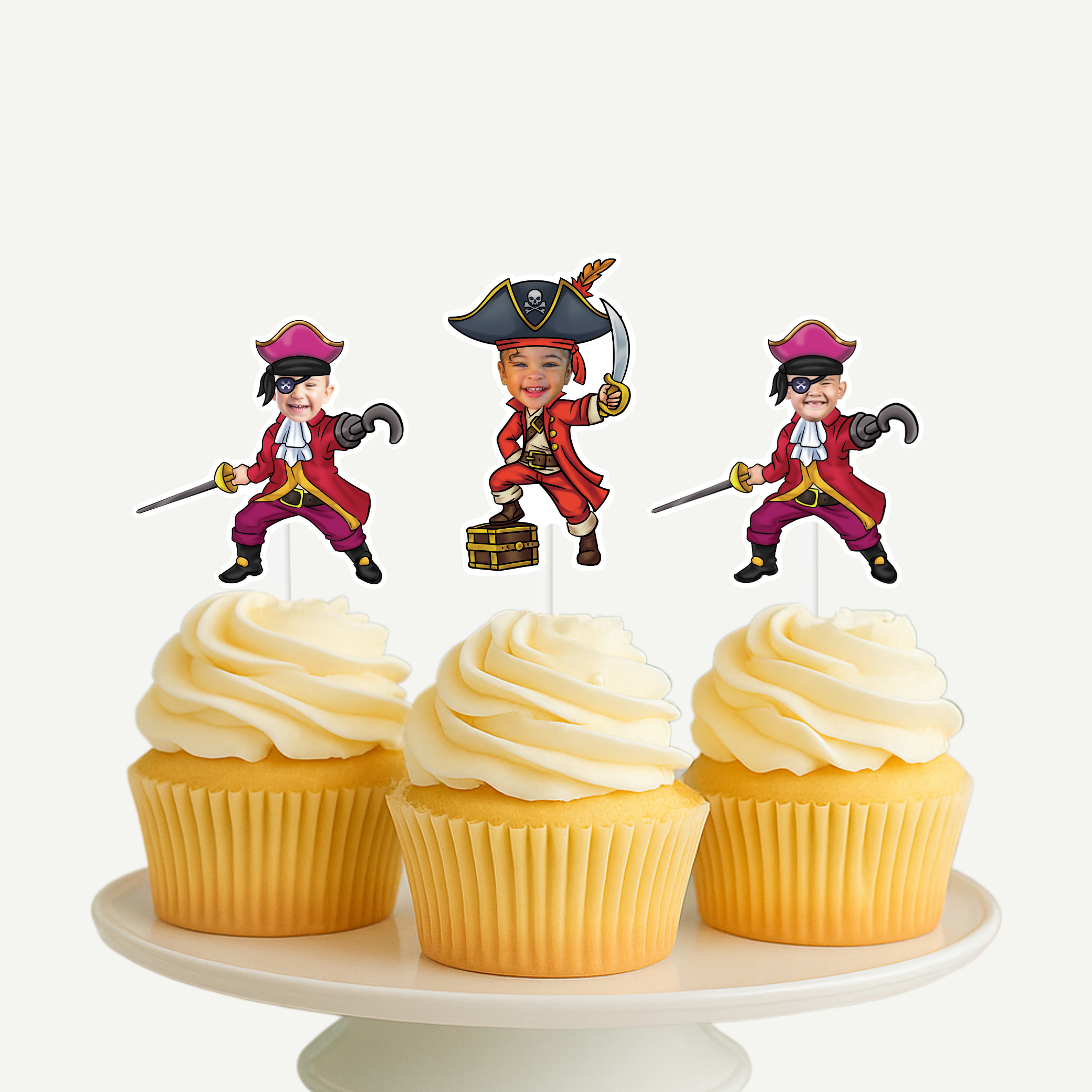 Ahoy, matey! Prepare for a swashbuckling adventure with our personalized Pirate Cupcake Toppers or Stickers! Your little buccaneer will be thrilled to see their face adorning these high-sea treats.