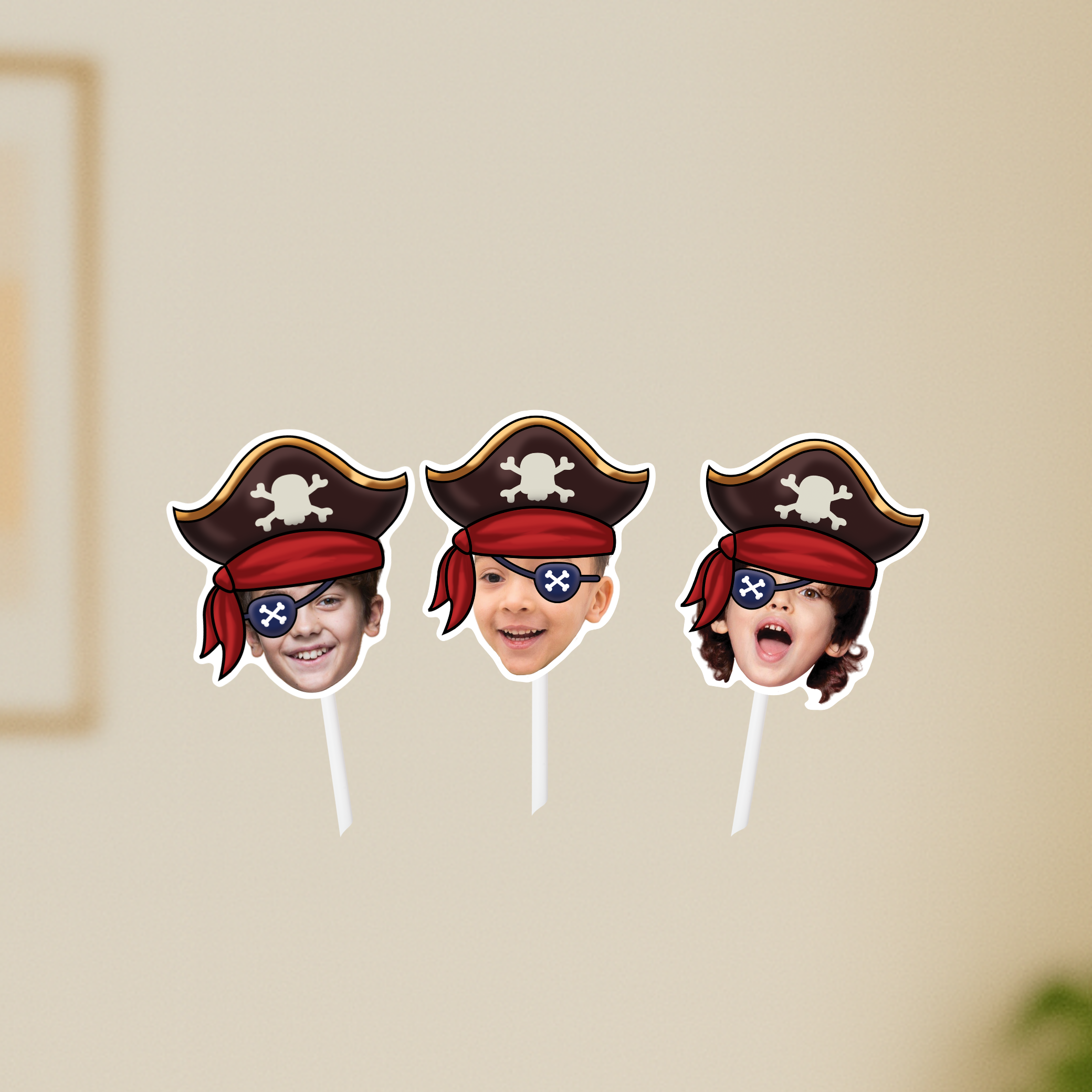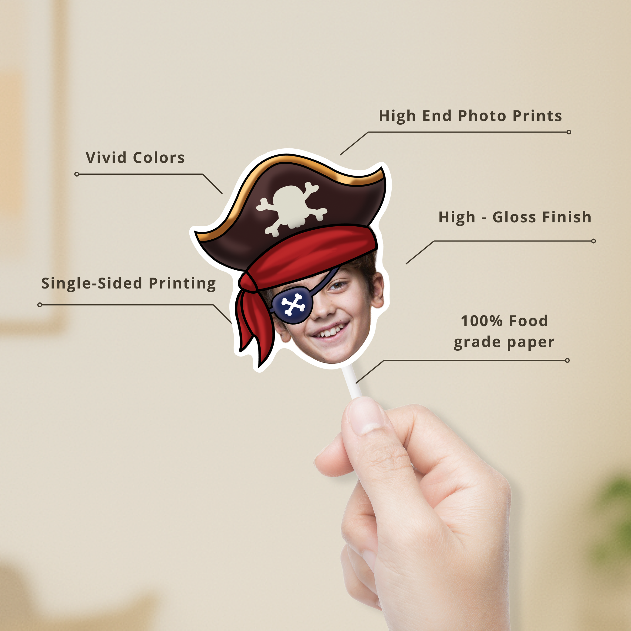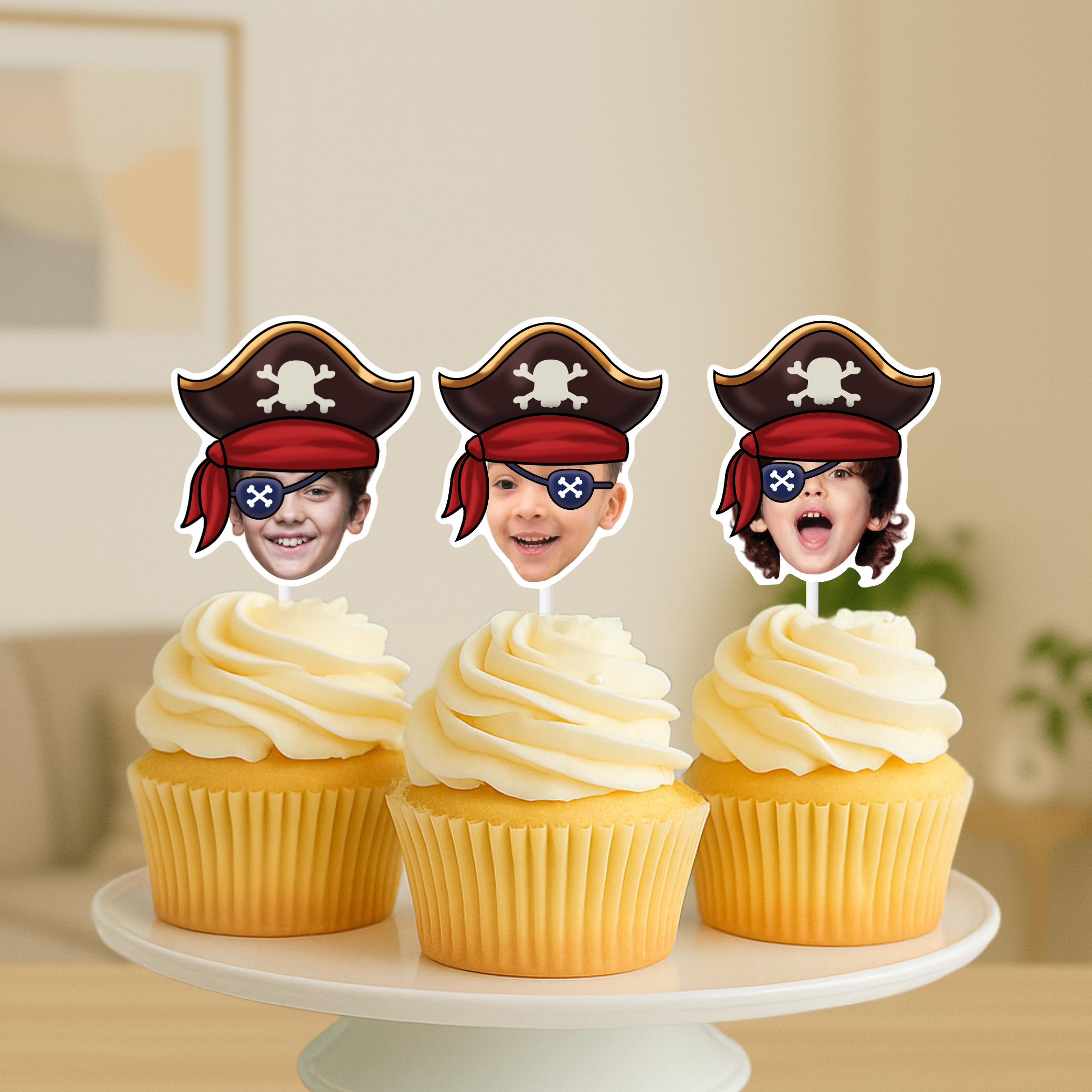 Set sail for adventure with our Pirate Personalized Face Cupcake Toppers! Featuring custom photos of the celebrant with fun pirate-themed designs, these toppers add a unique and playful touch to your cupcakes.