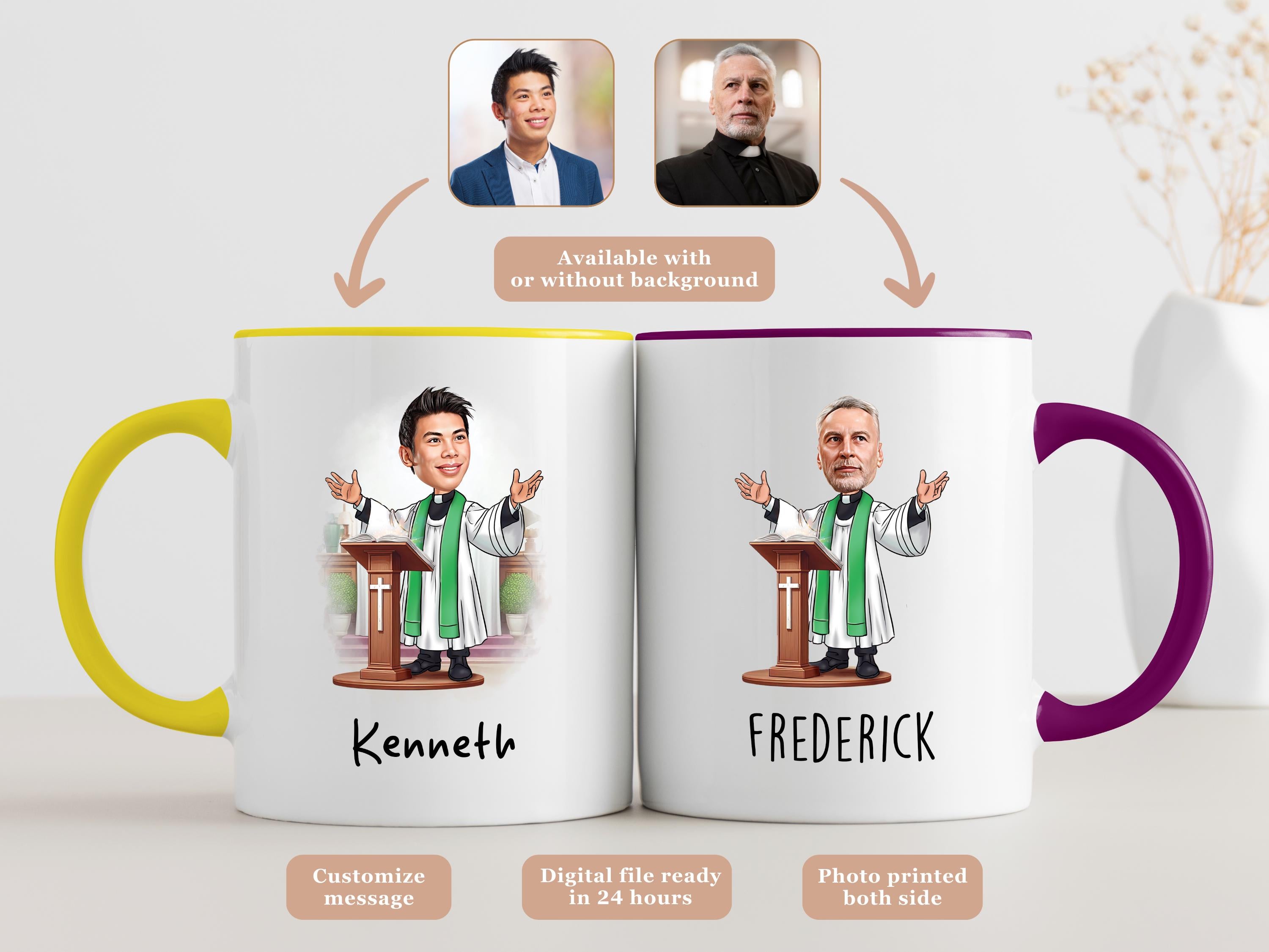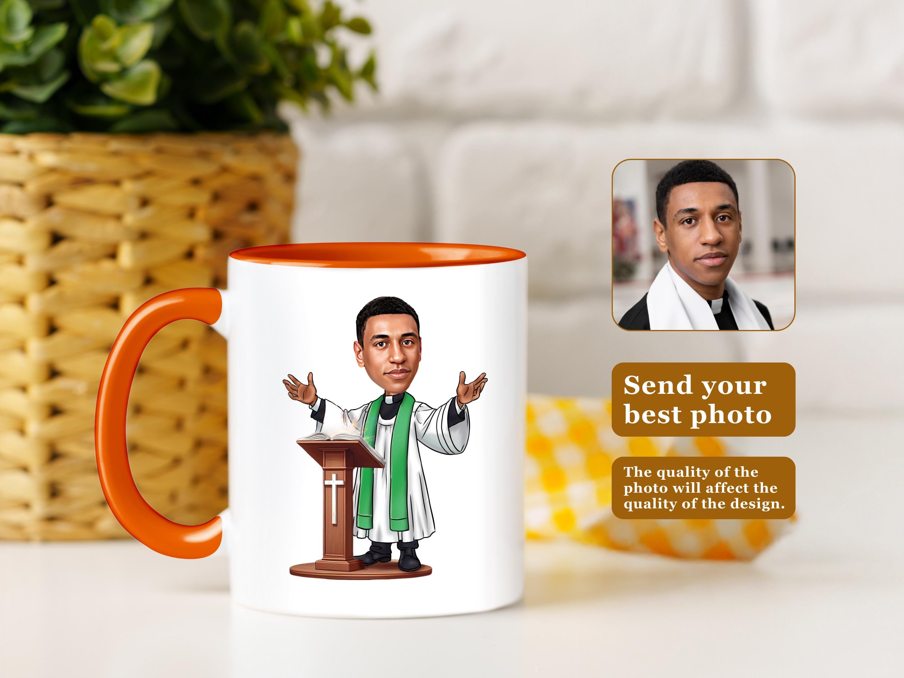 Honor the spiritual guidance and dedication of a priest with a custom caricature mug! This personalized design captures their unique character and commitment to their faith in a fun and meaningful way.